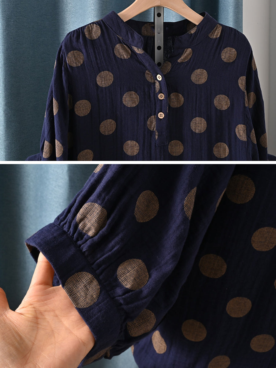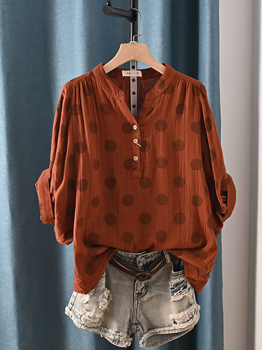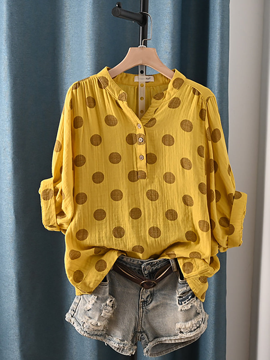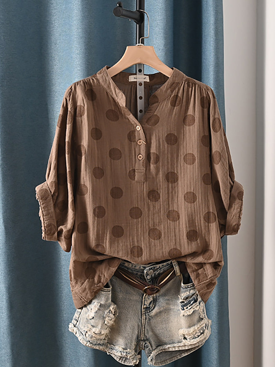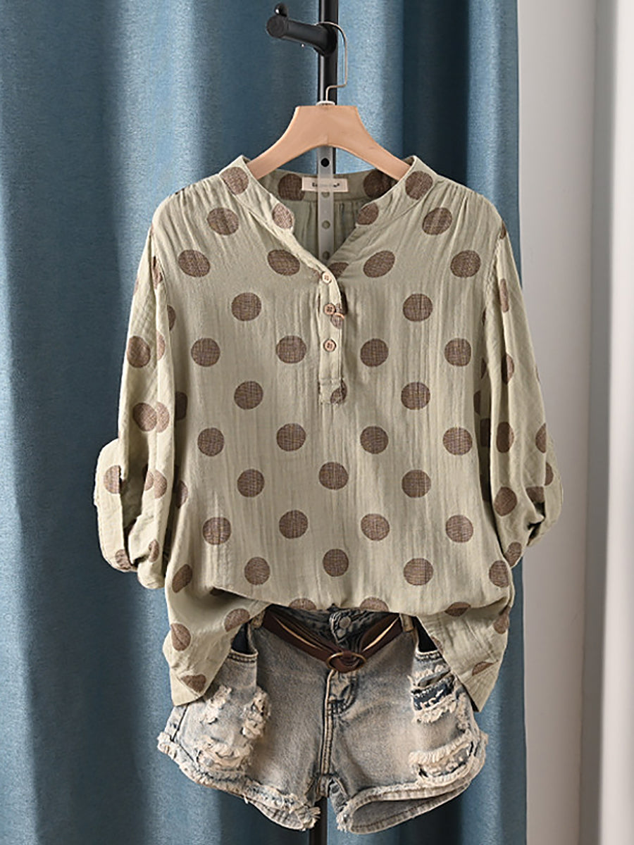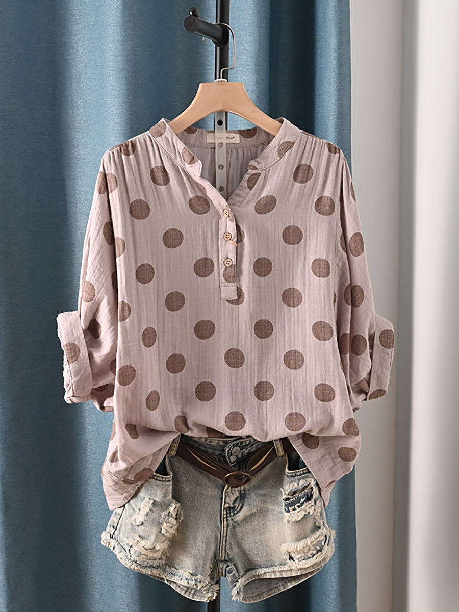 Women Summer Casual Dot 100%Cotton Blouse