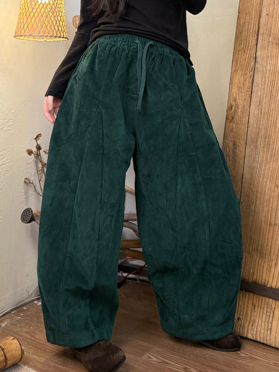 Plus Size Women Casual Winter Corduroy Fleece-lined Harem Pants