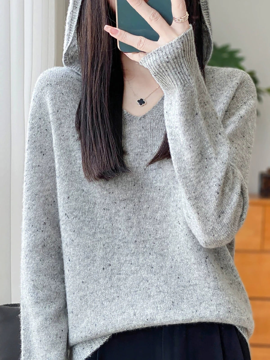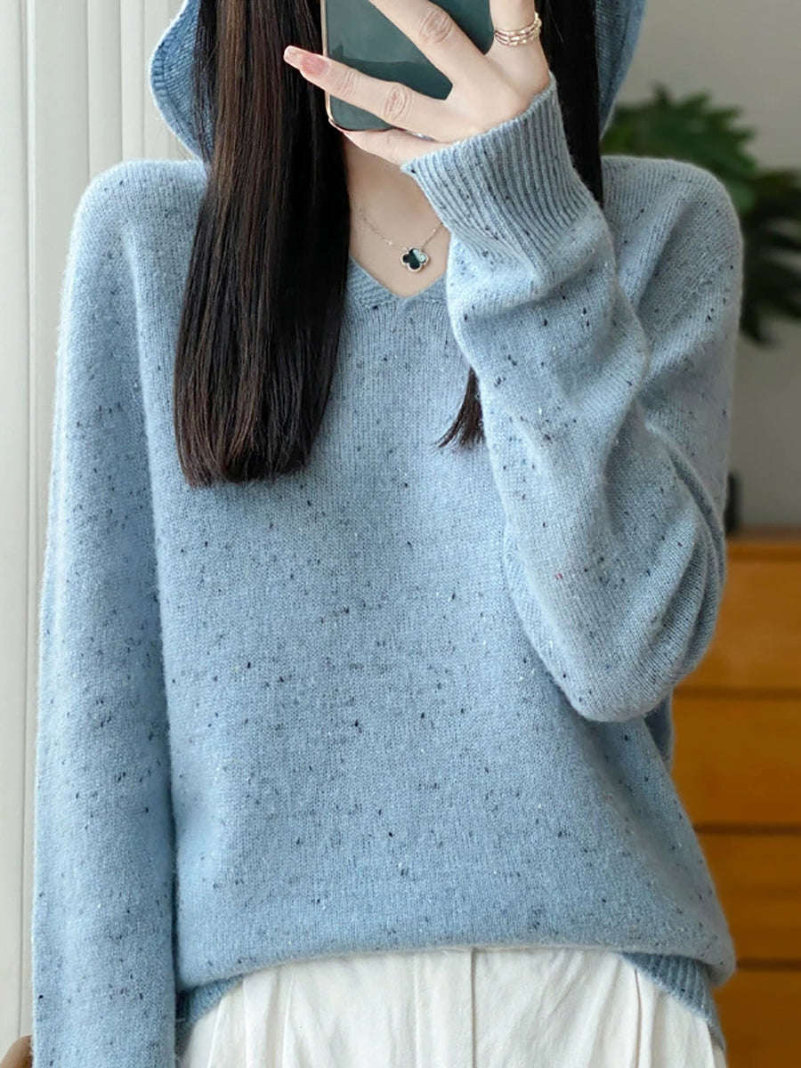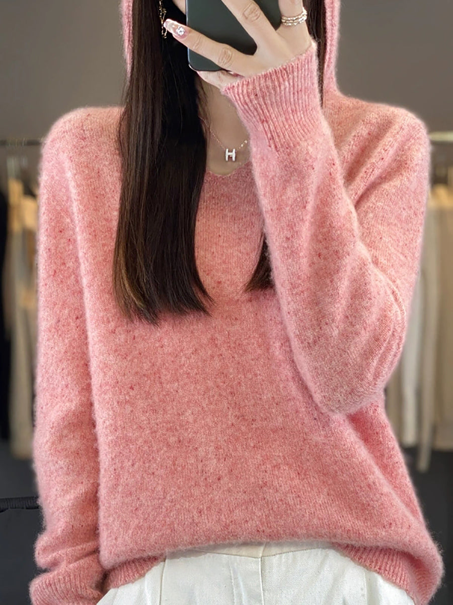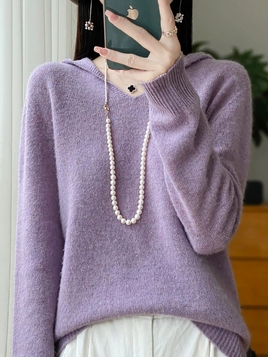 Women Spring Artsy Pure Color Hooded Wool Sweater