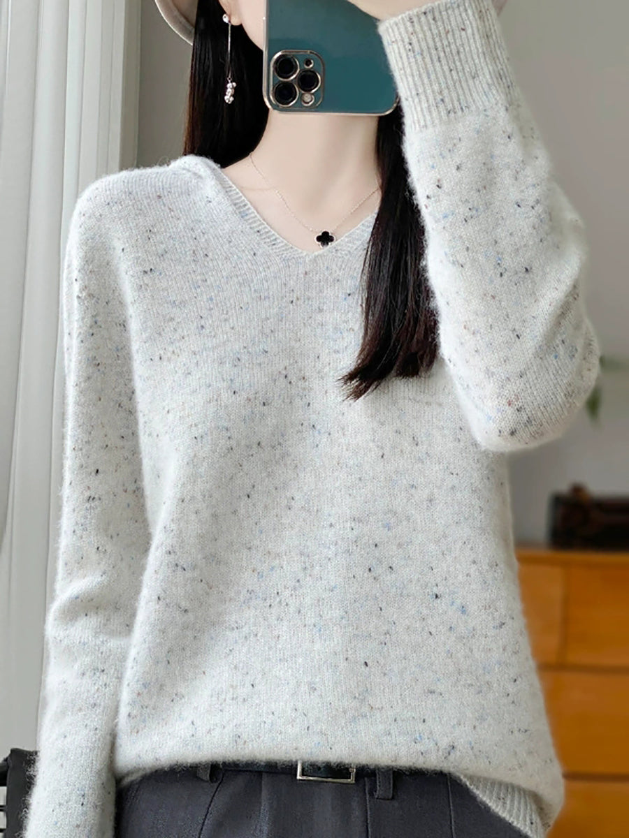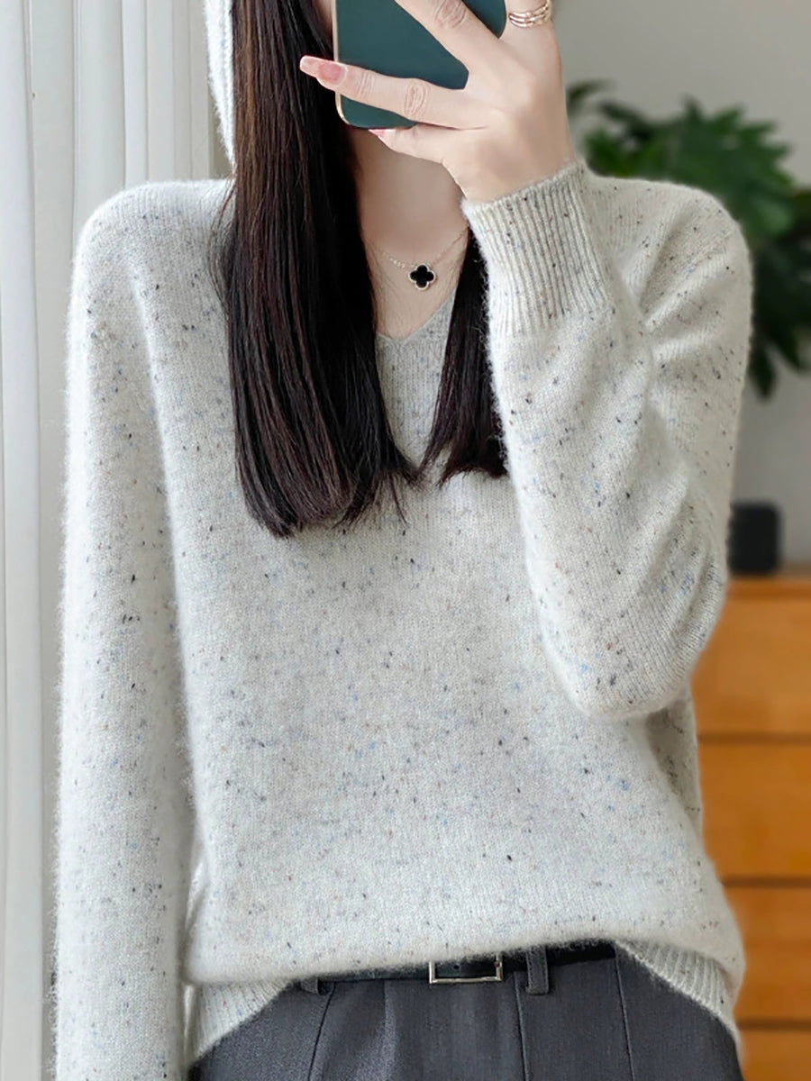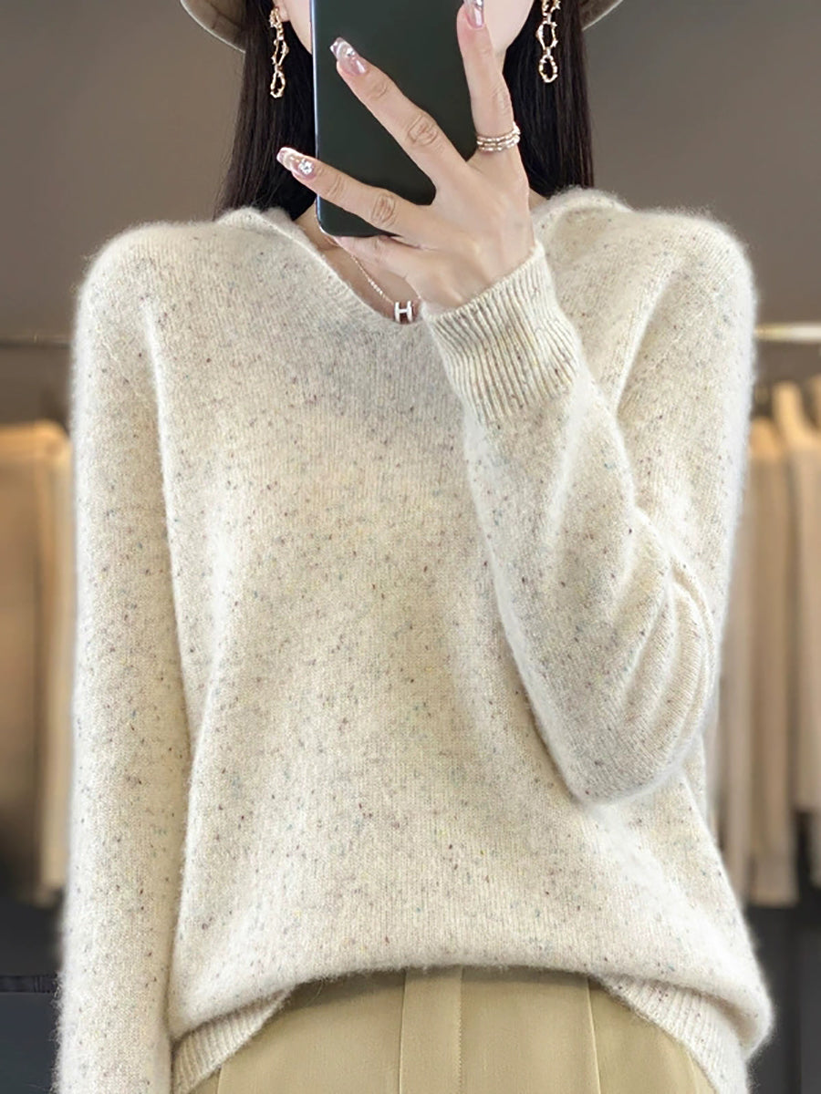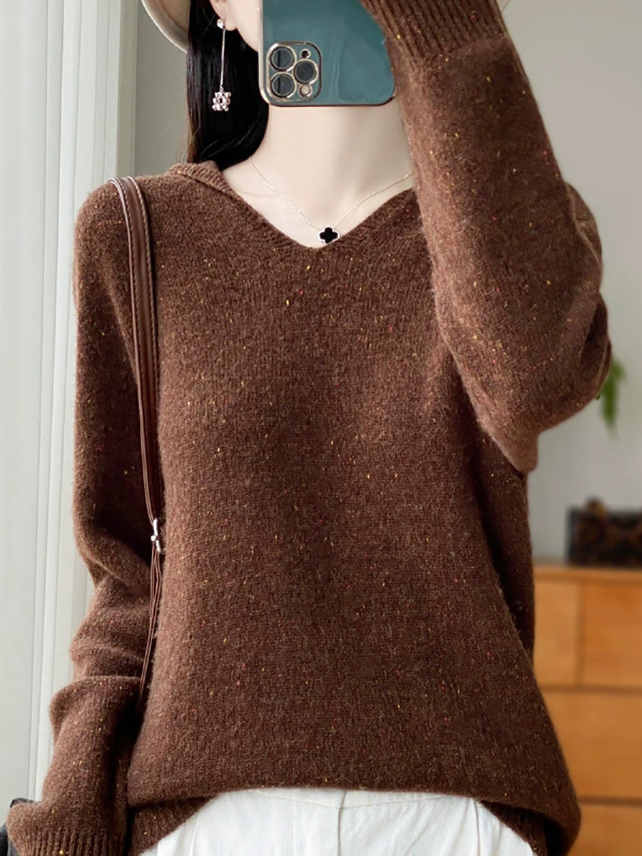 Women Spring Artsy Pure Color Hooded Wool Sweater