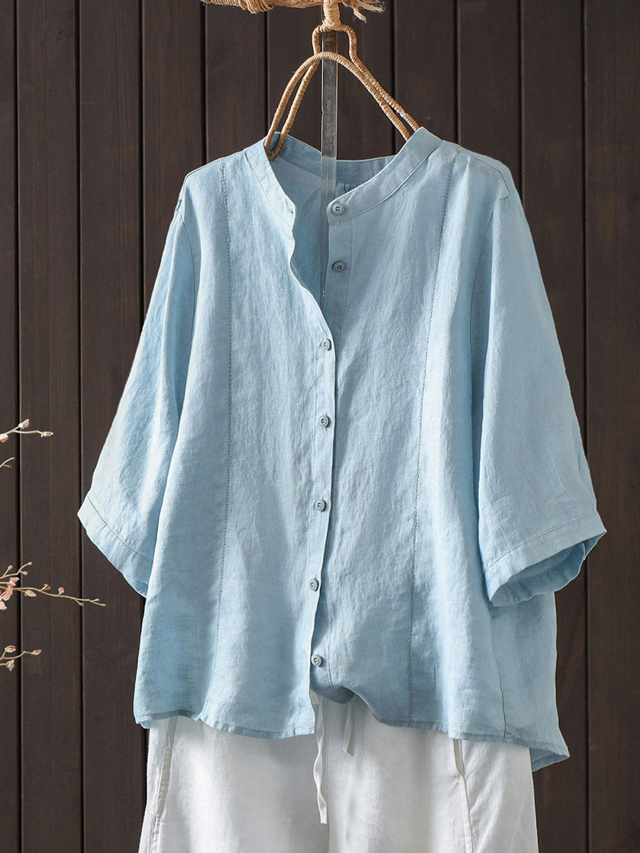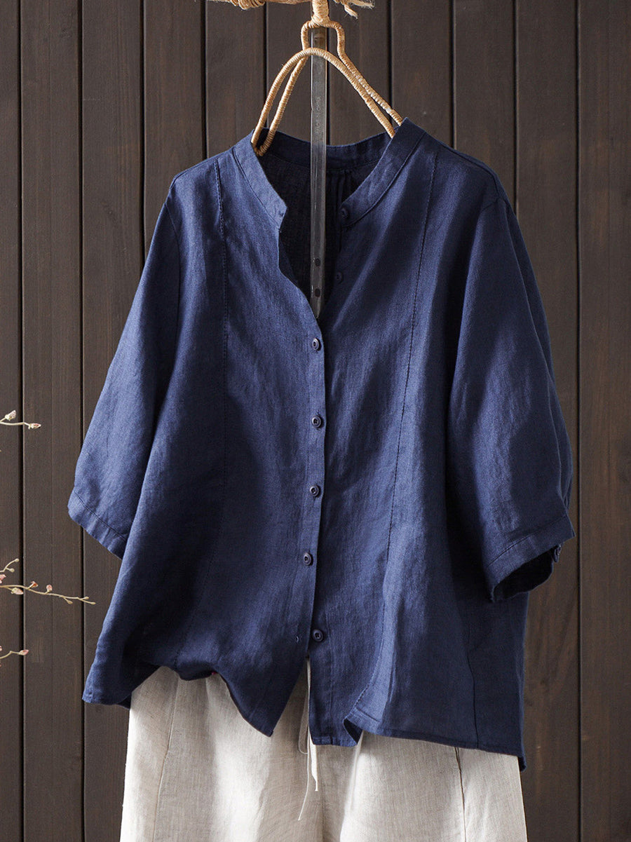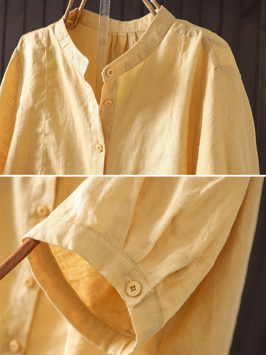 Women Summer Artsy 100%Linen Stand Collar Shirt