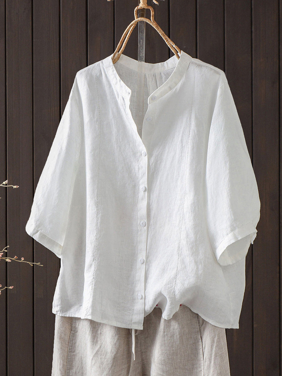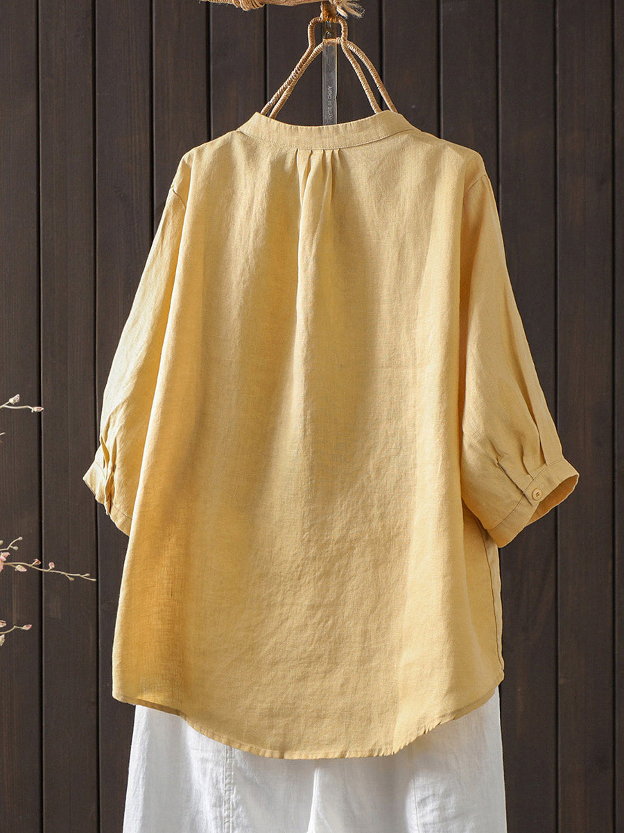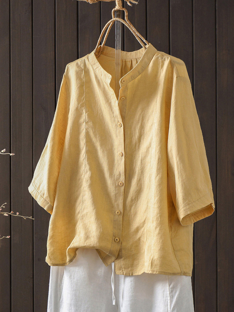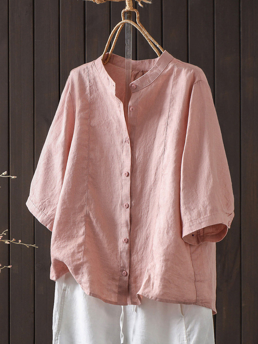 Women Summer Artsy 100%Linen Stand Collar Shirt