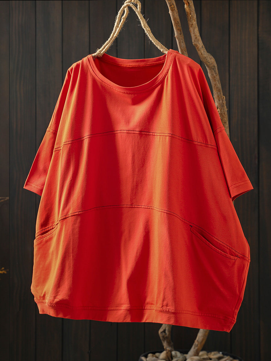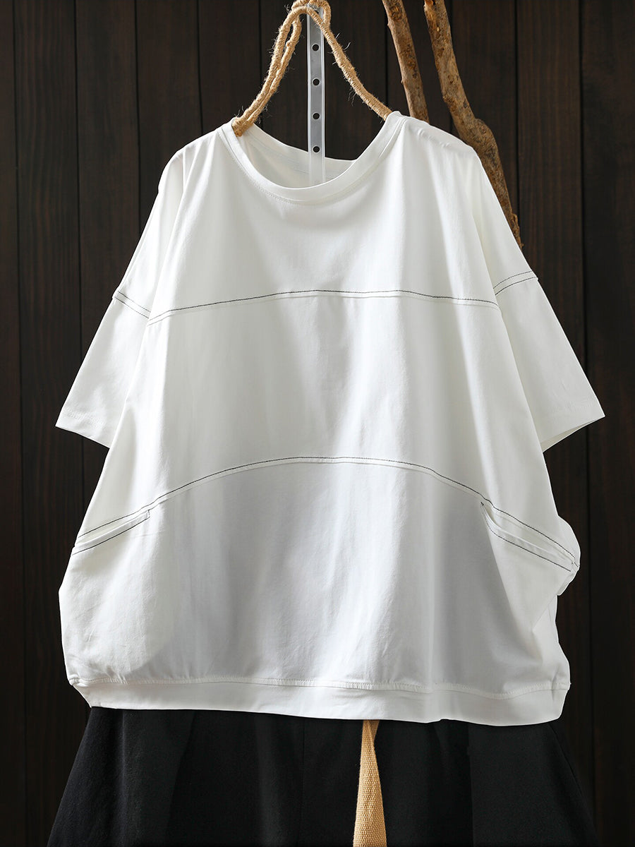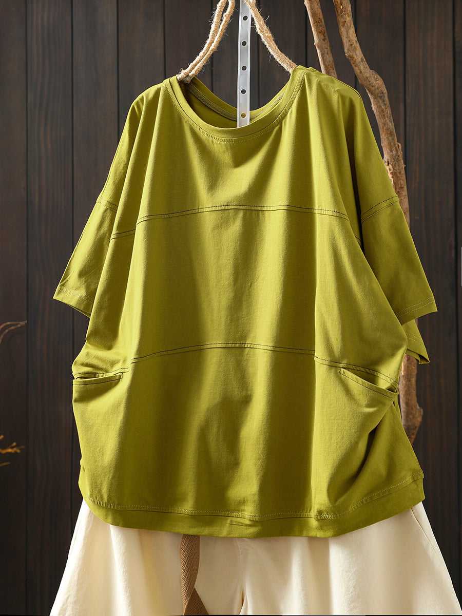 Women Summer Casual Pure Color 100%Cotton T-Shirt