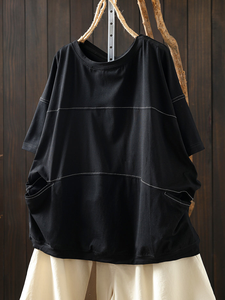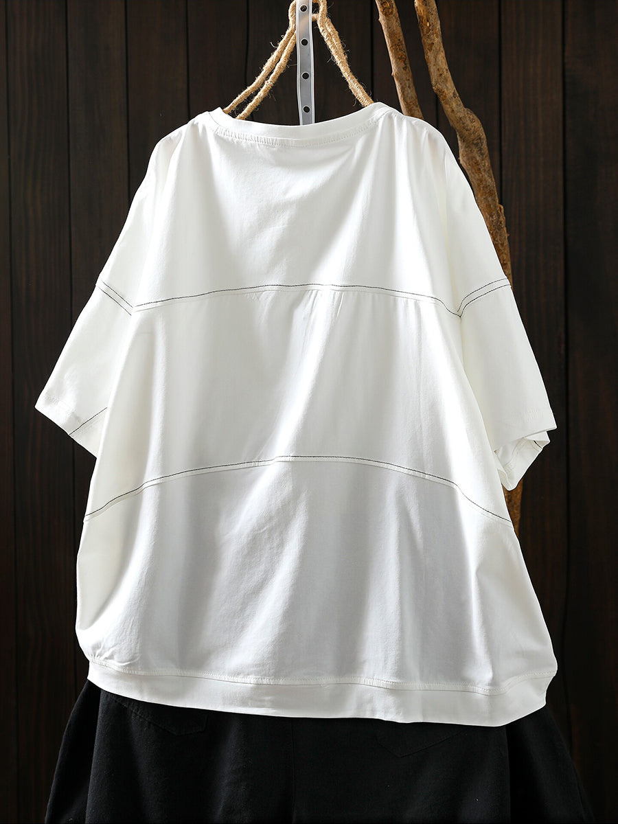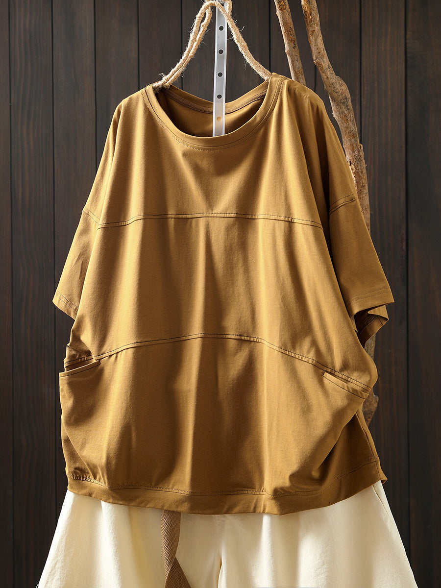Women Summer Casual Pure Color 100%Cotton T-Shirt