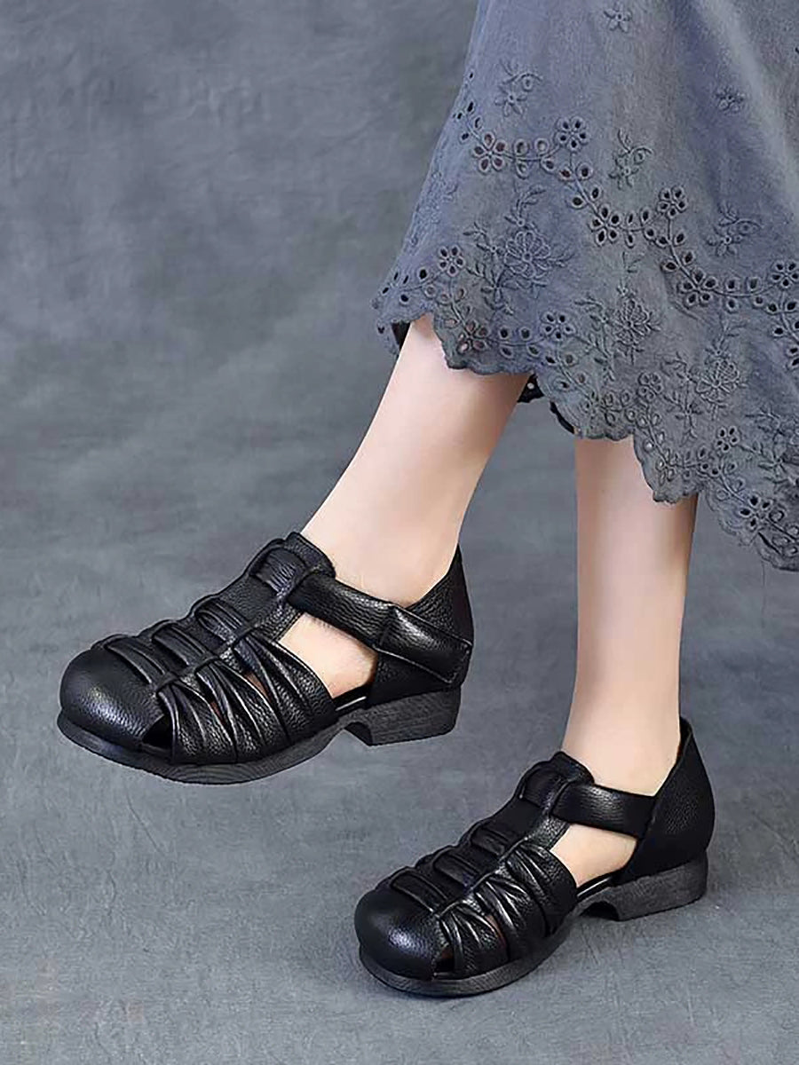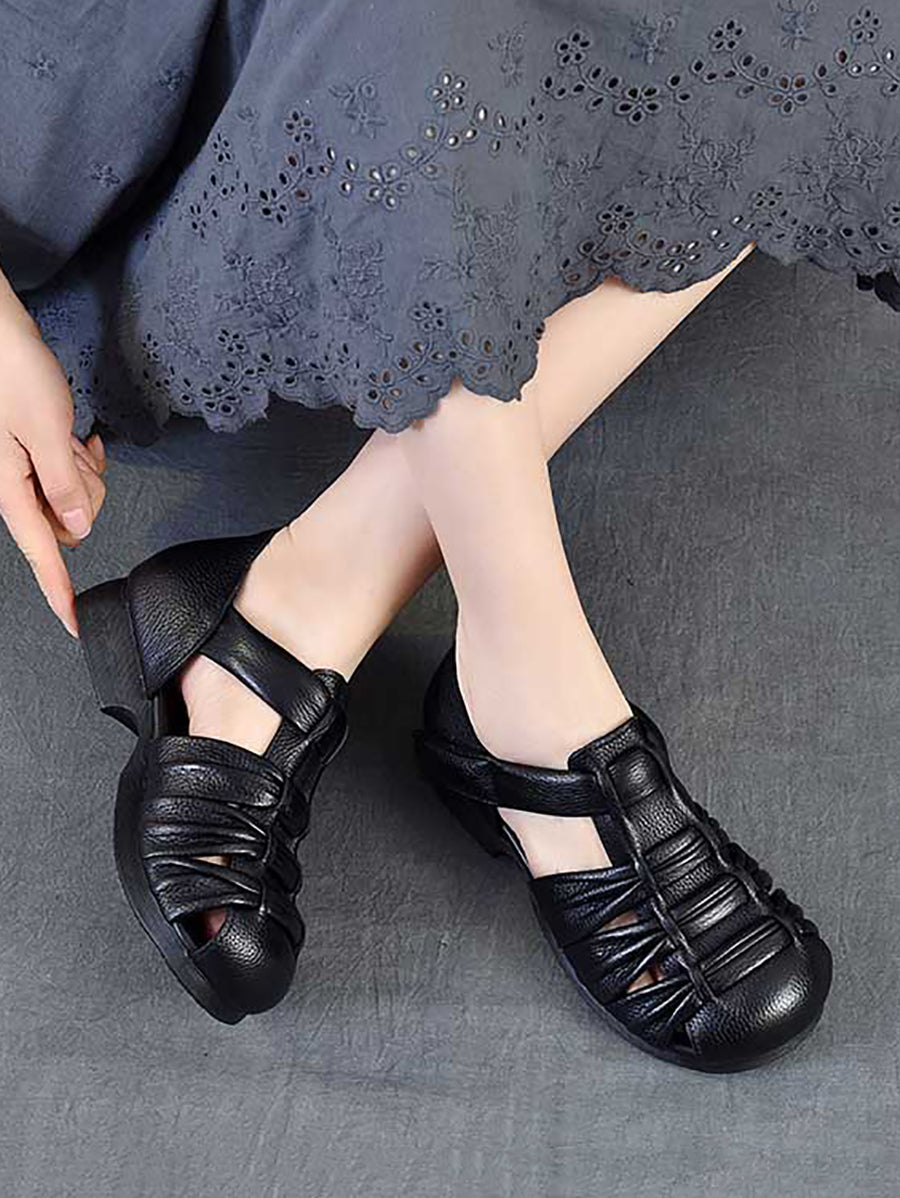 Women Summer Genuine Leather Low Heel Sandals