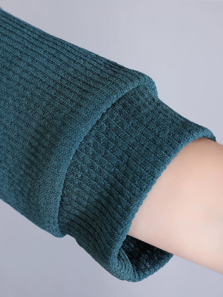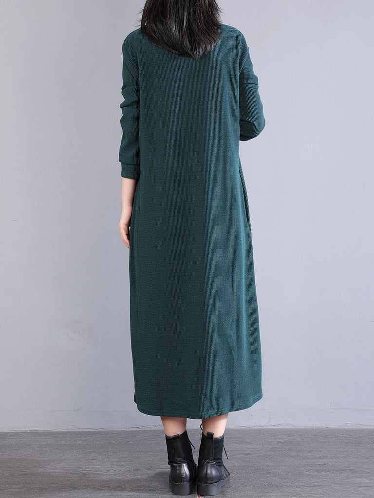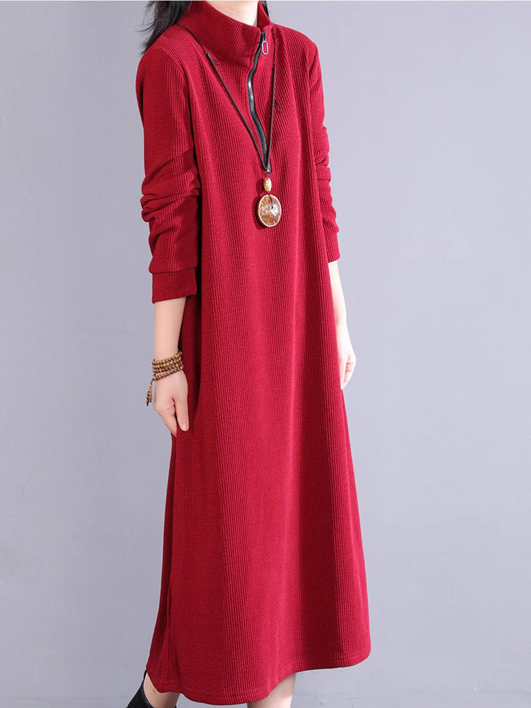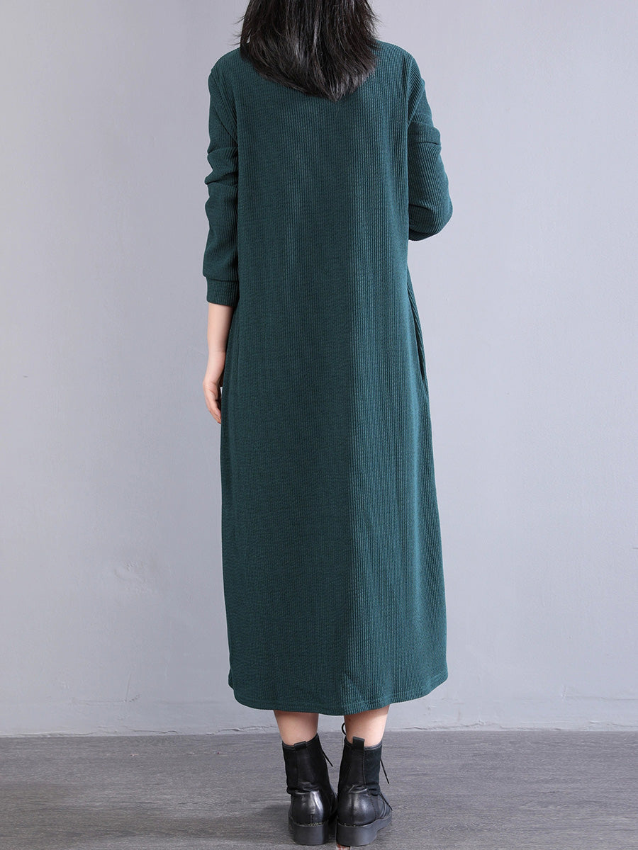 Women Autumn Pure Color Half-Turtleneck 100%Cotton Dress