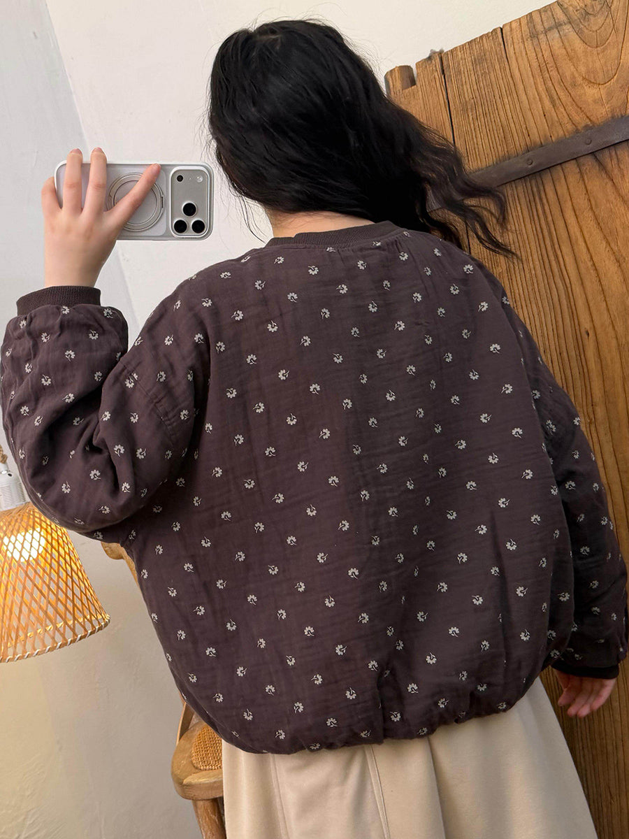 Women Artsy Spring Floral O-Neck Padded Blouse