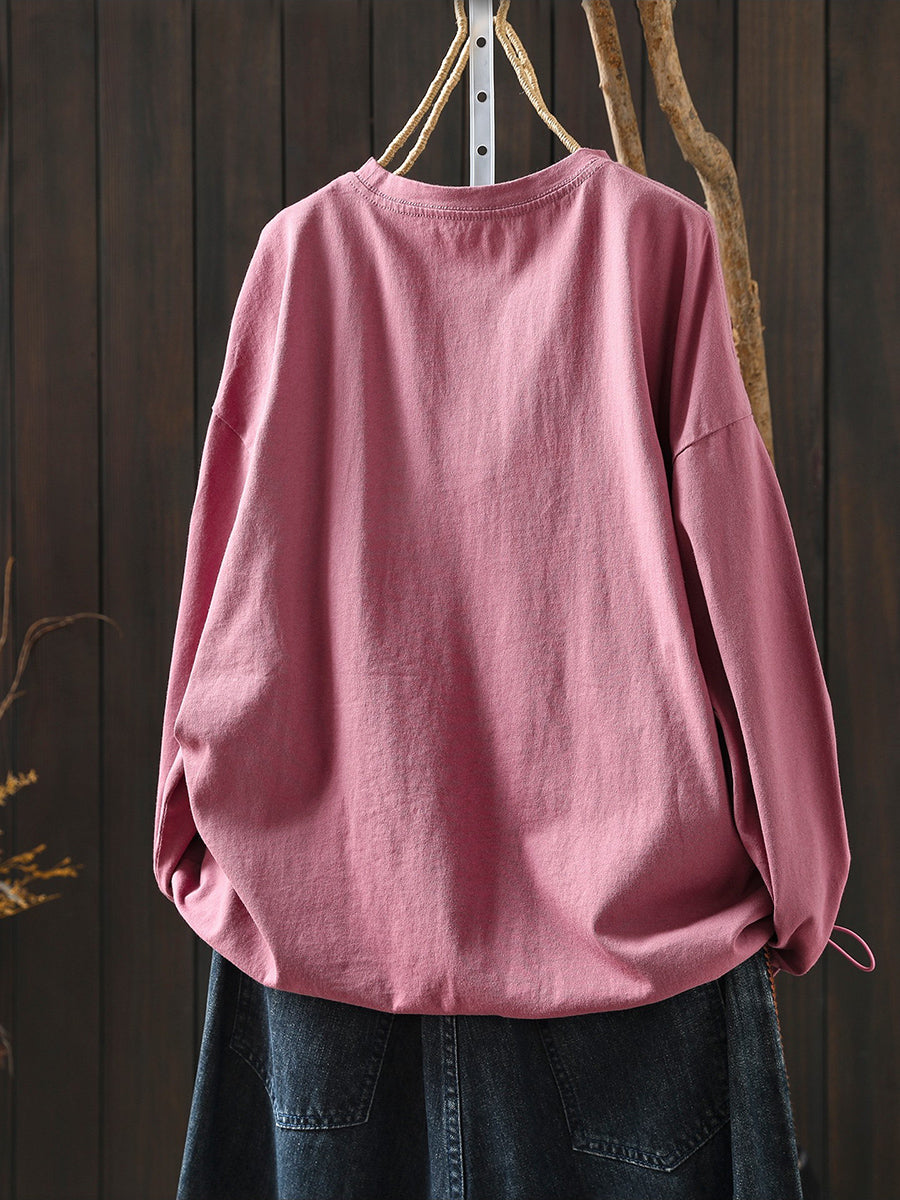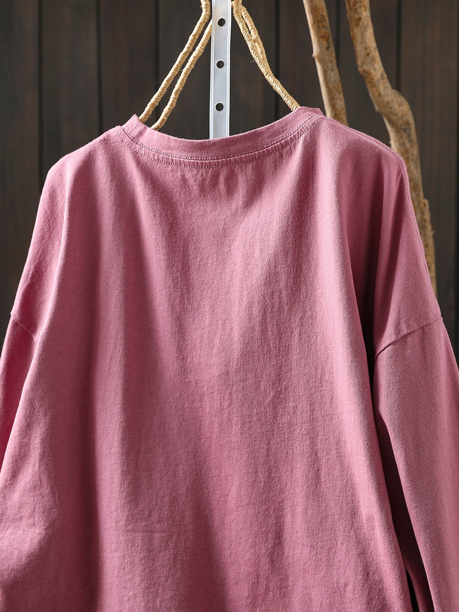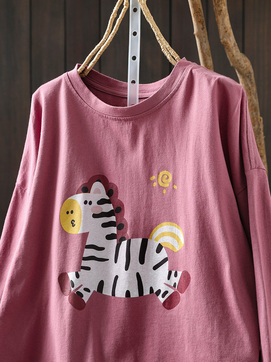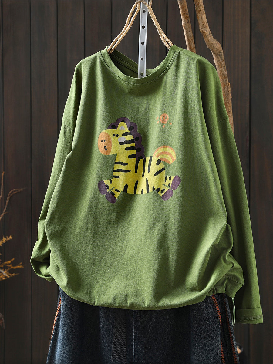 Women Artsy Spring Horse Cotton O-Neck Blouse