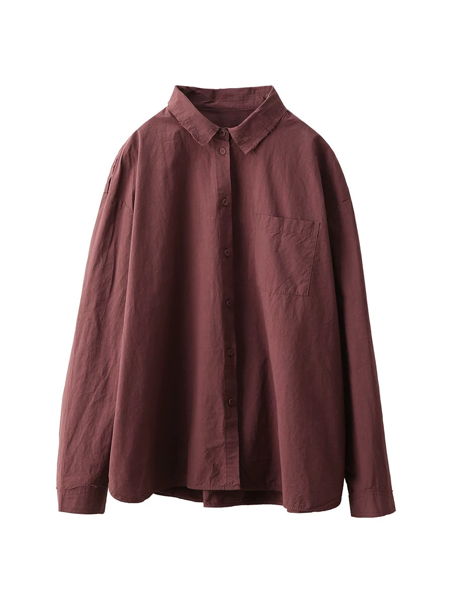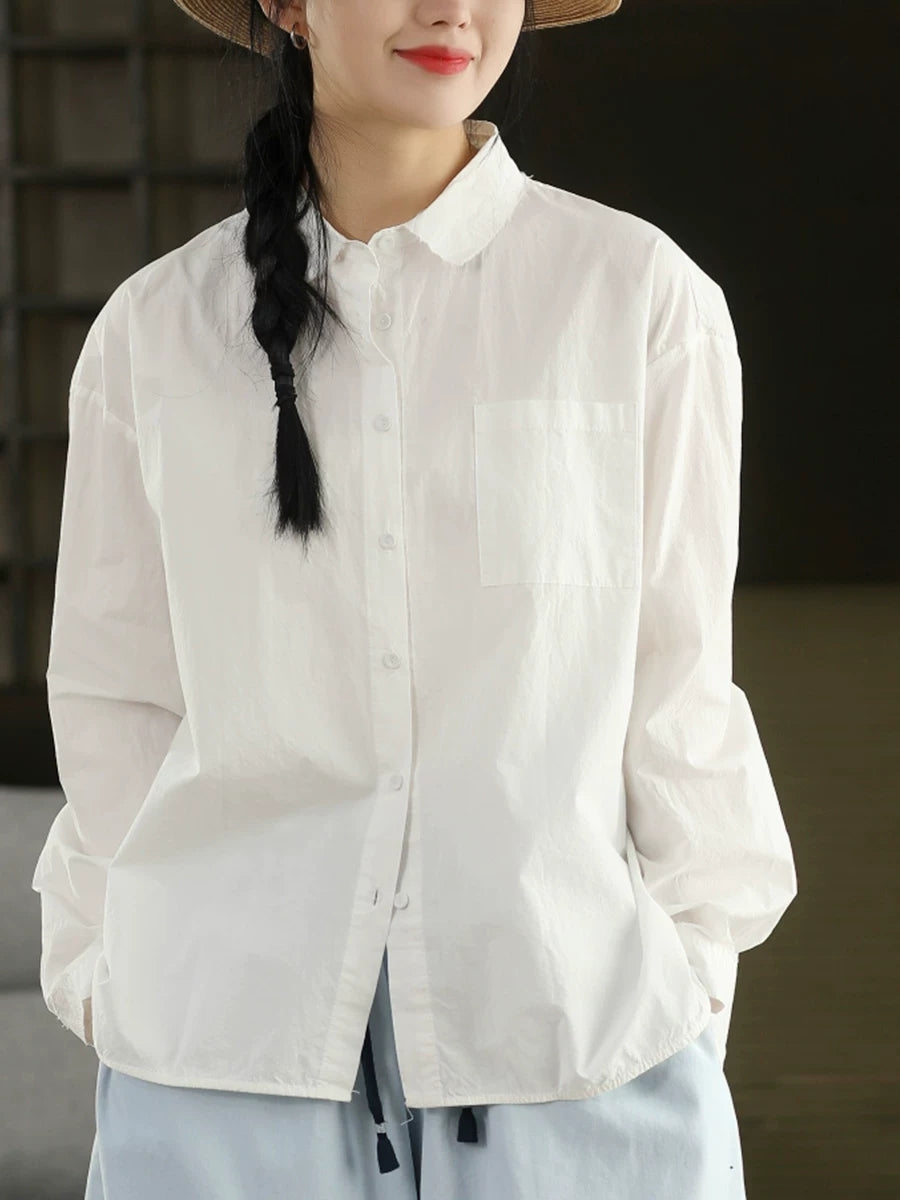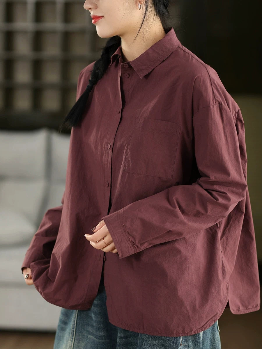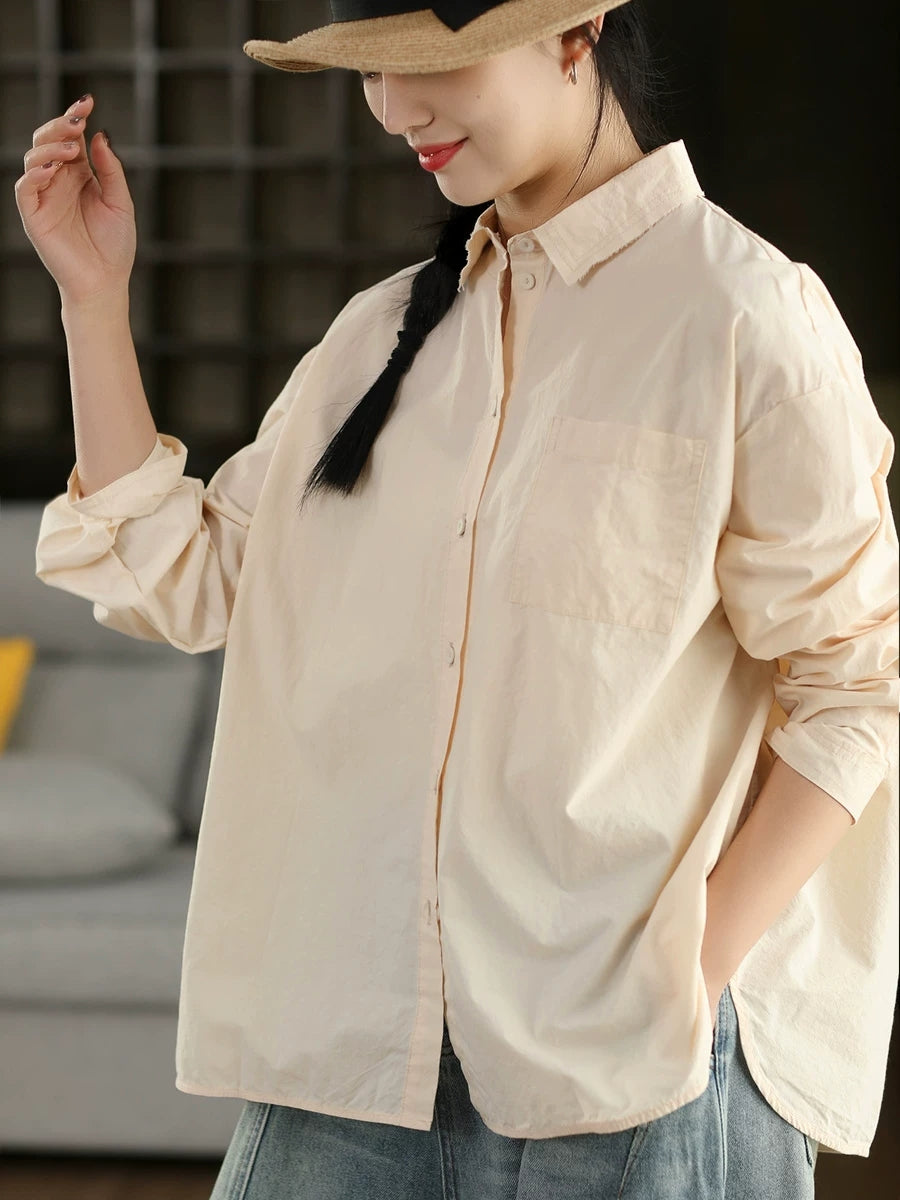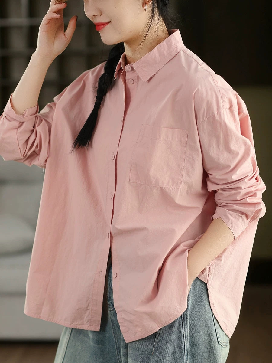 Women Artsy Spring Pure Color 100%Cotton Shirt