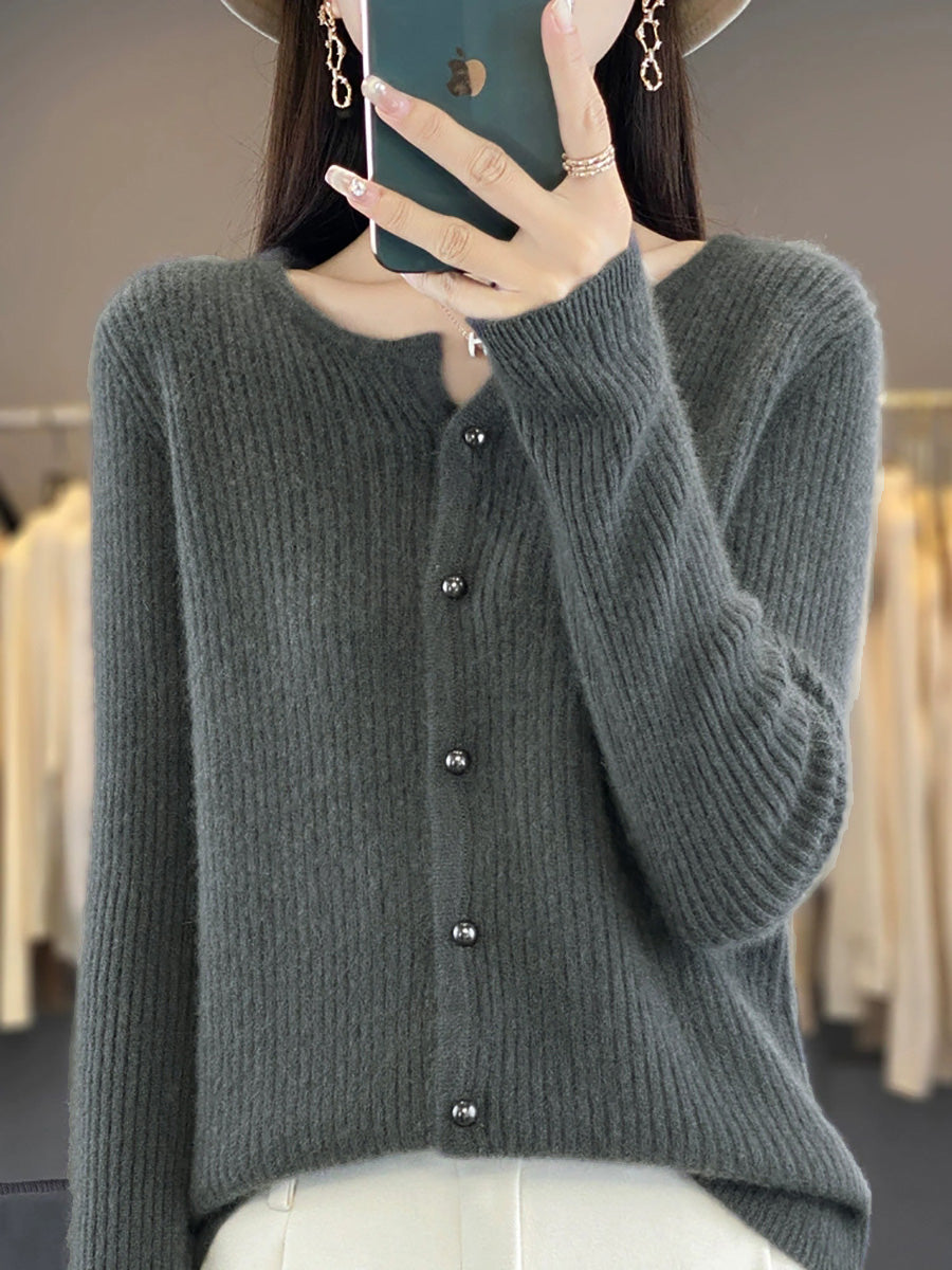 Women Autumn Elegant V-Neck Knitted Wool Sweater