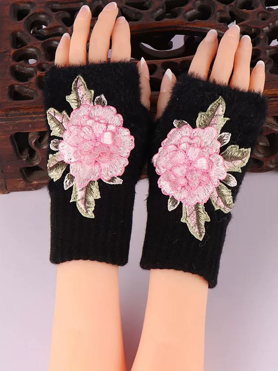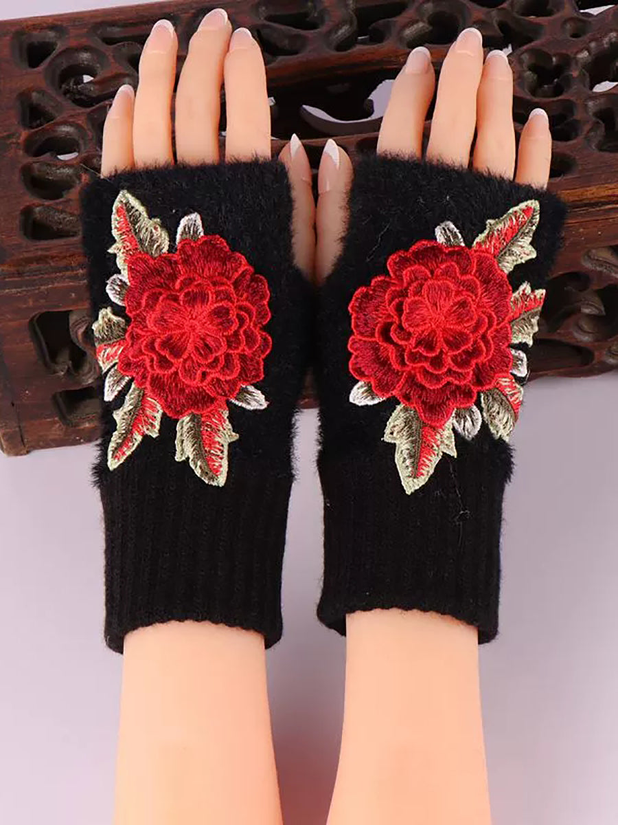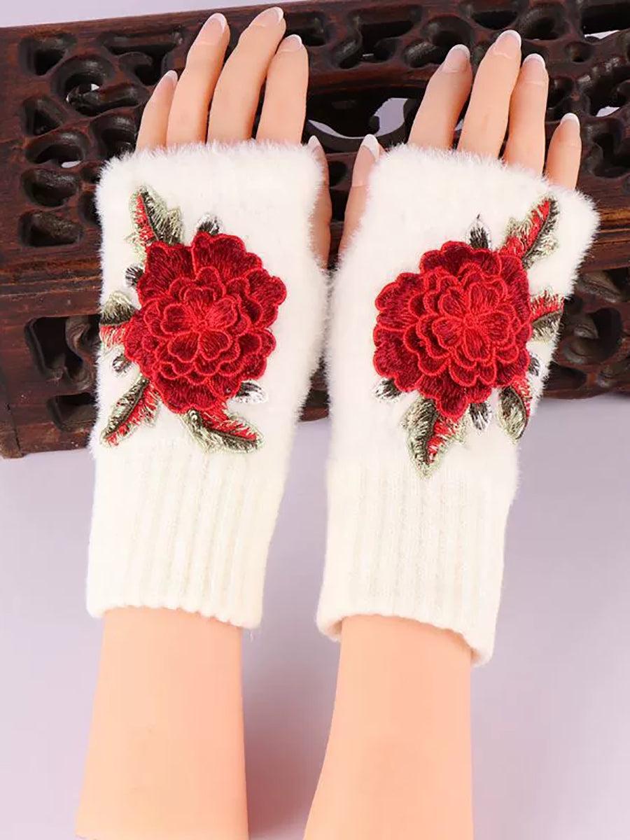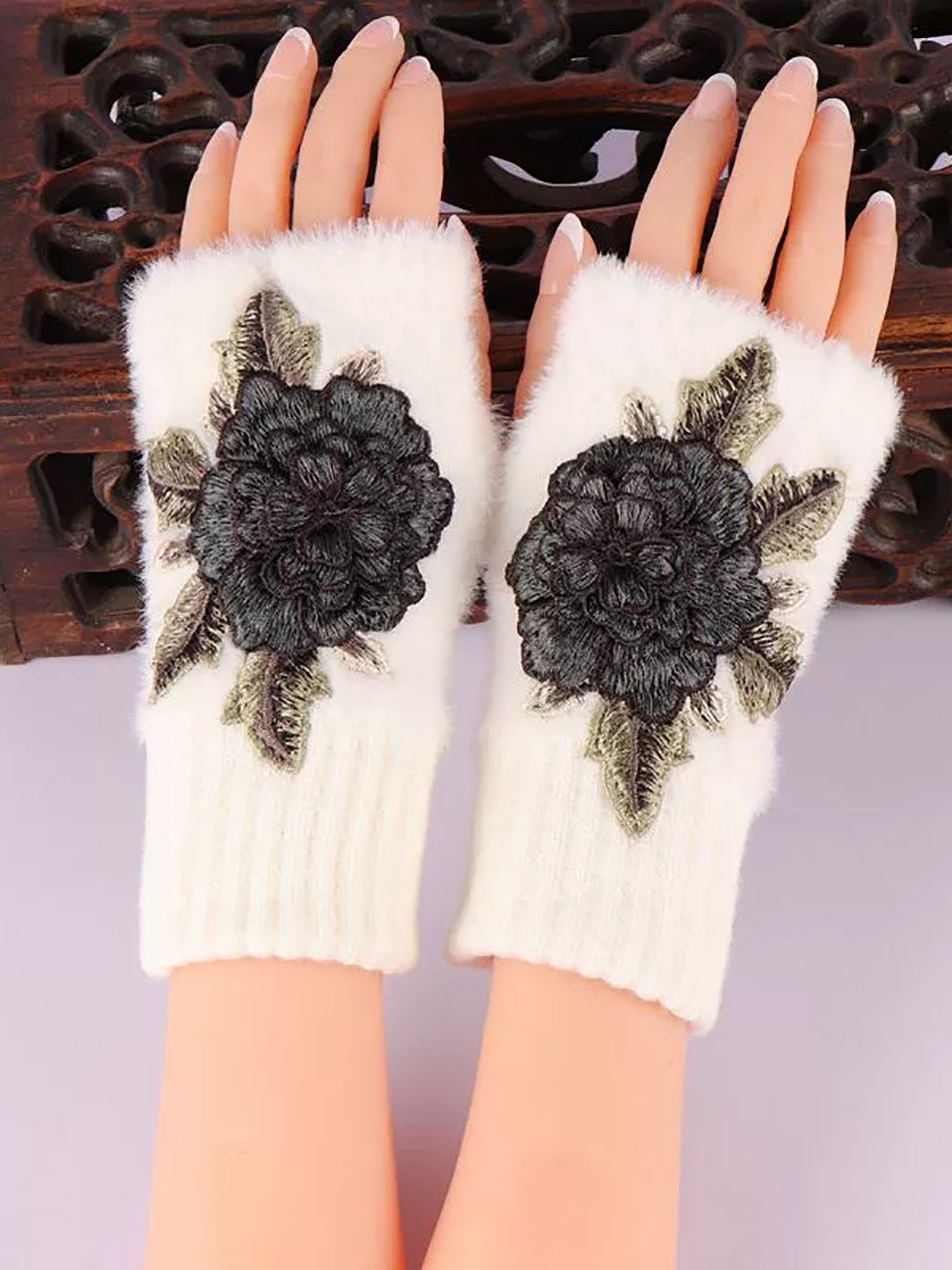 Winter Artsy Flower Embroidery Plush Gloves