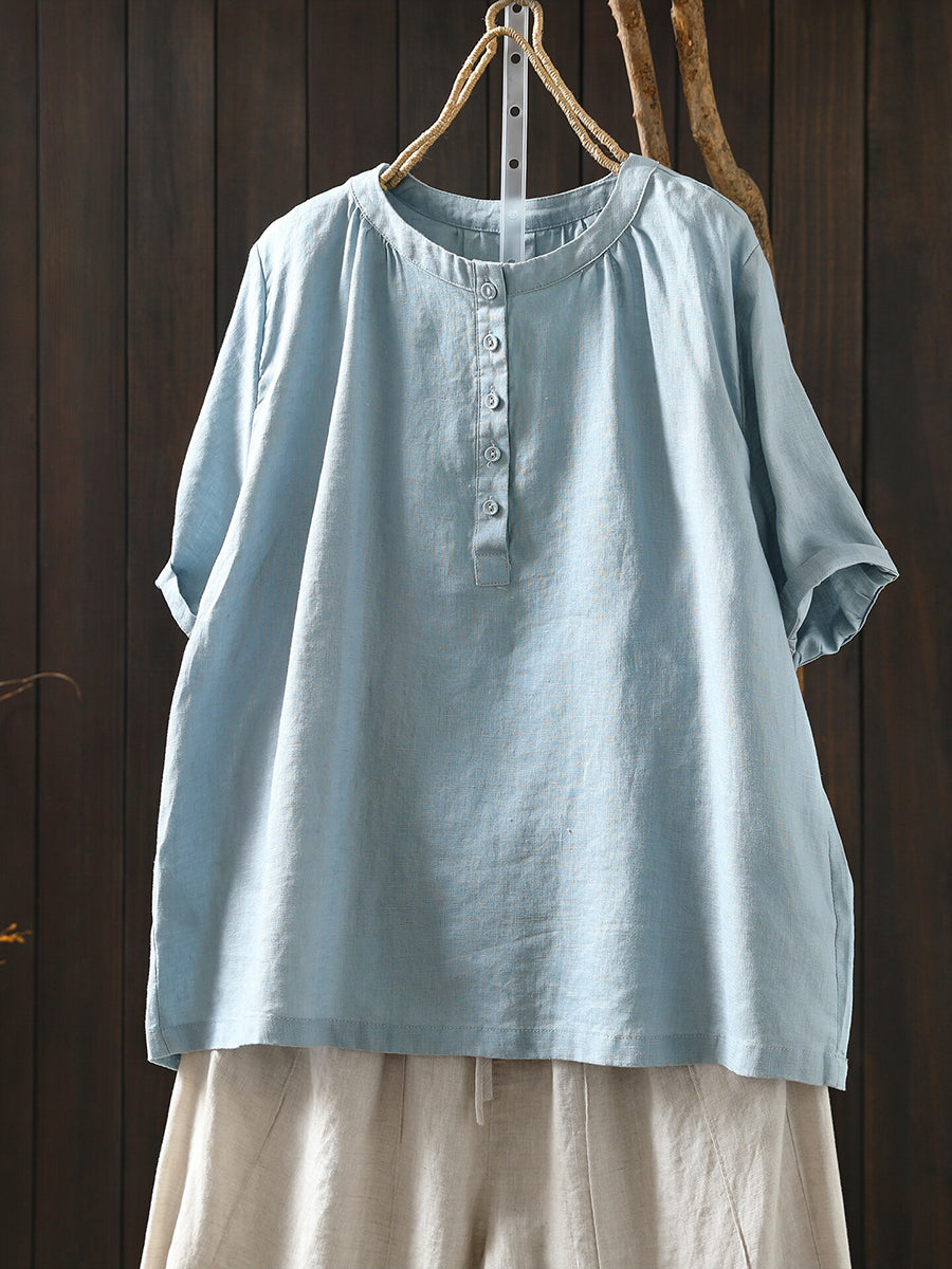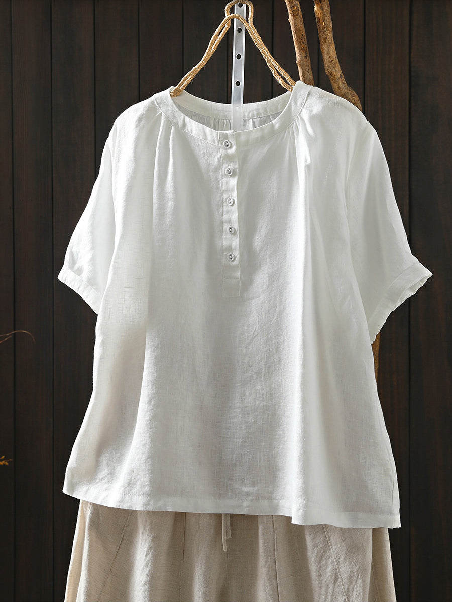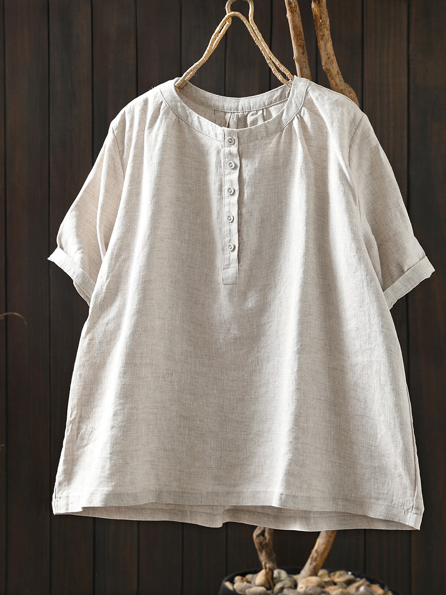 Women Summer Artsy O-Neck 100%Linen T-Shirt