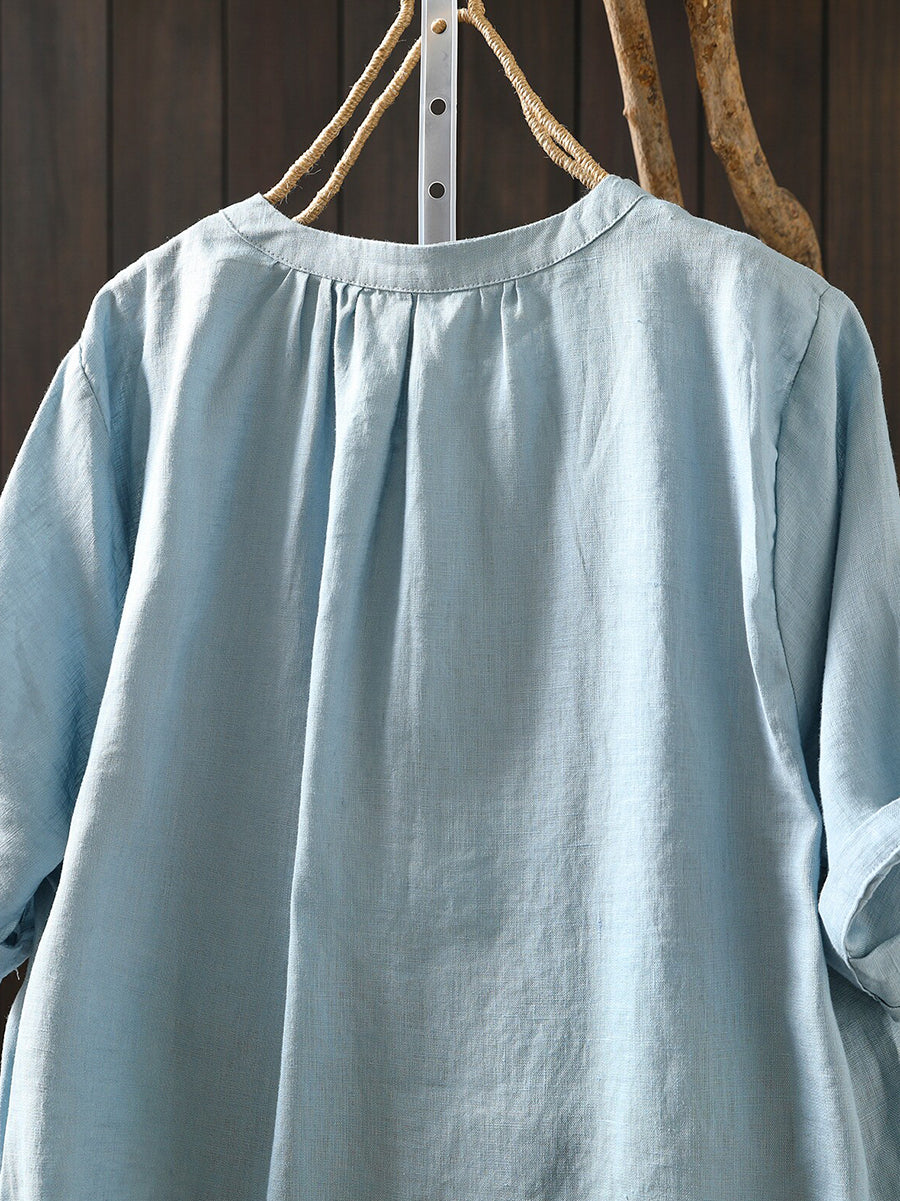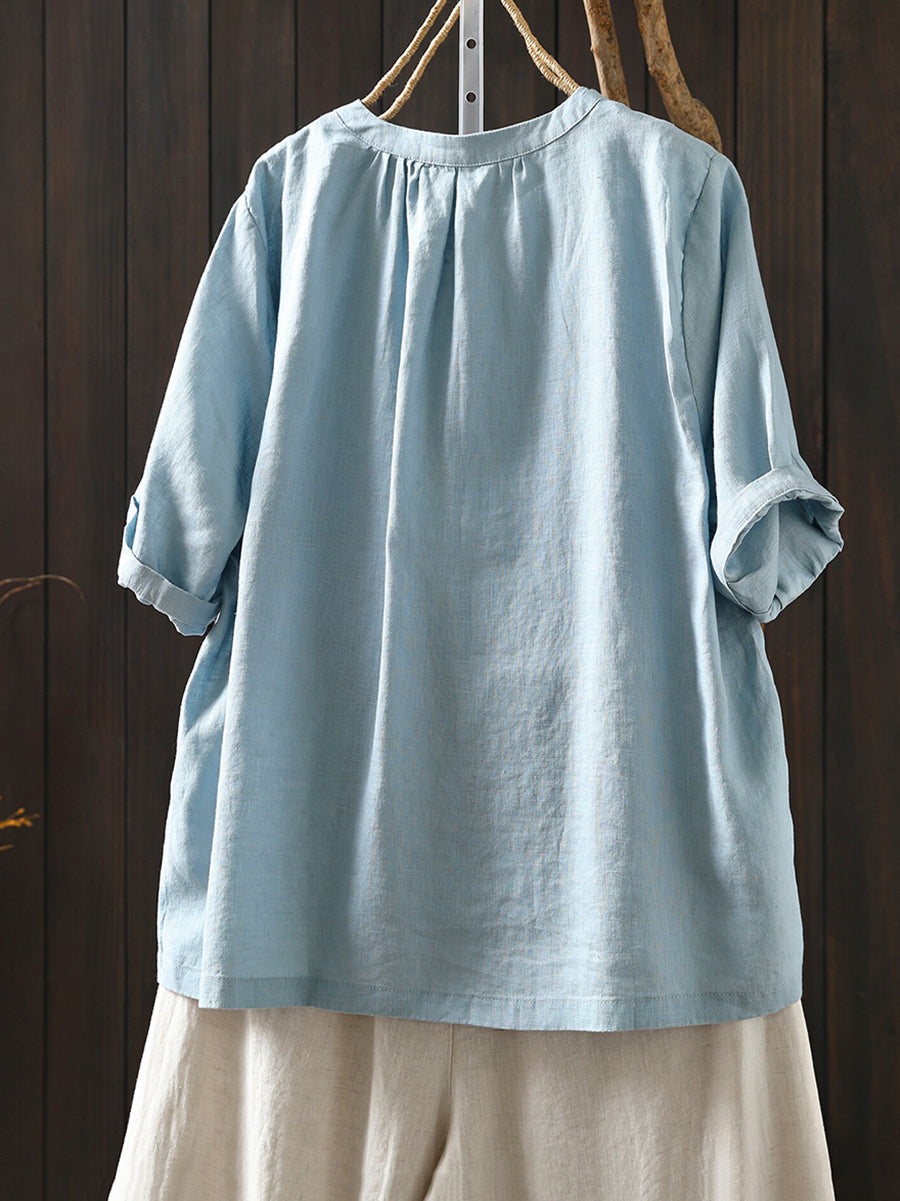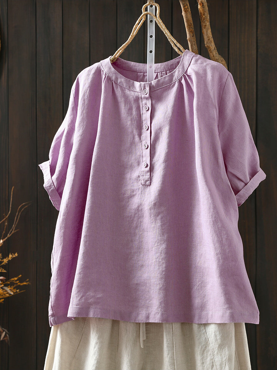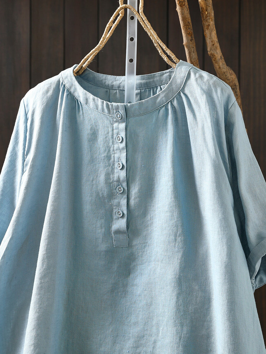 Women Summer Artsy O-Neck 100%Linen T-Shirt