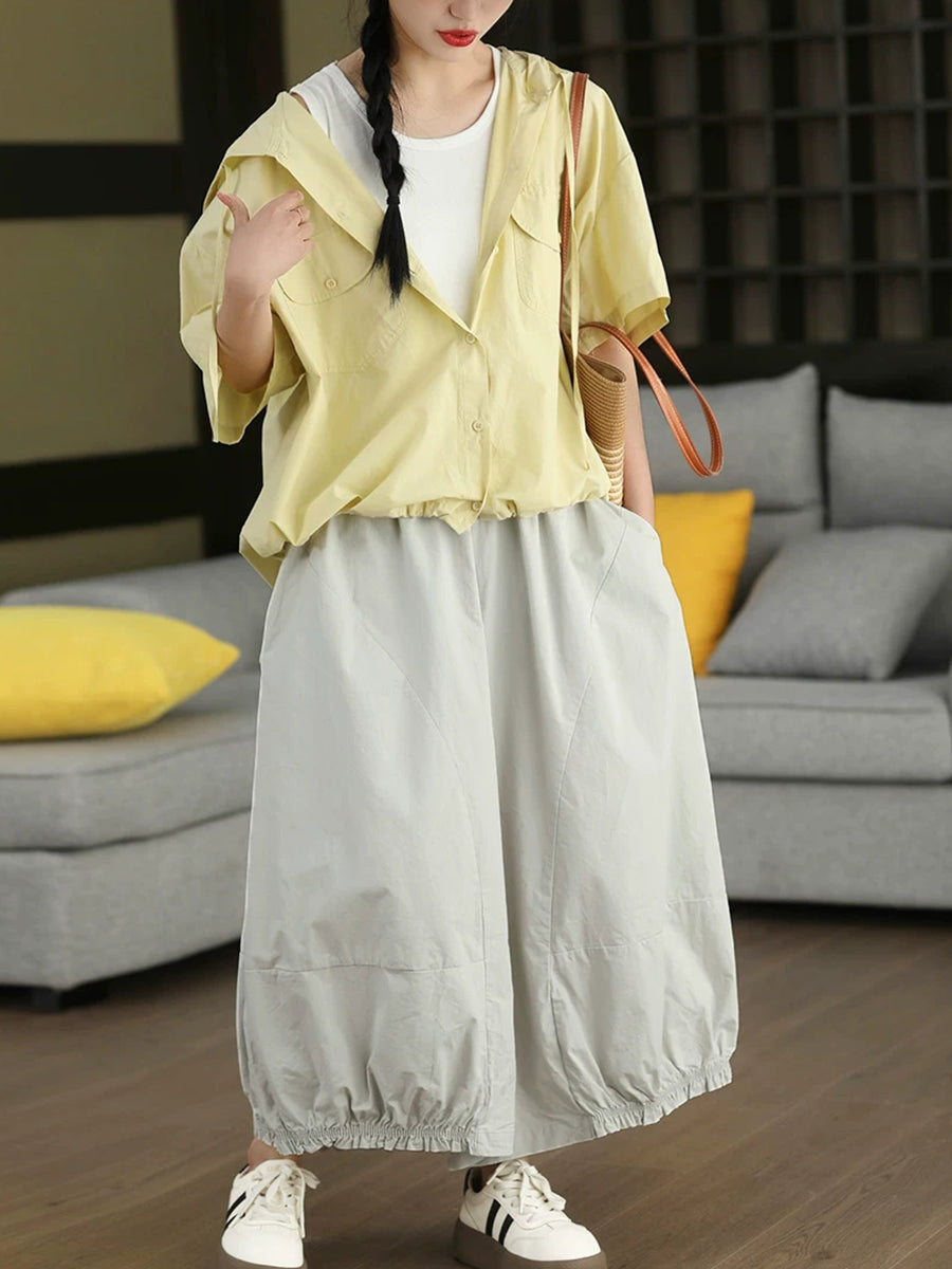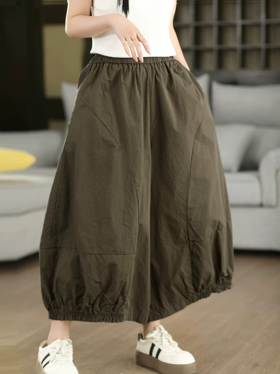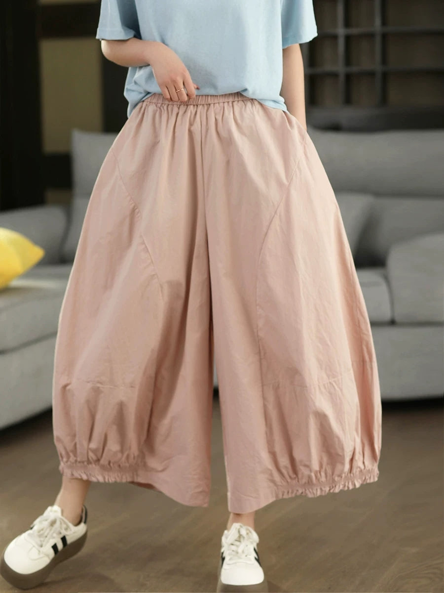Women Summer Artsy Pure Color 100%Cotton Bloomers