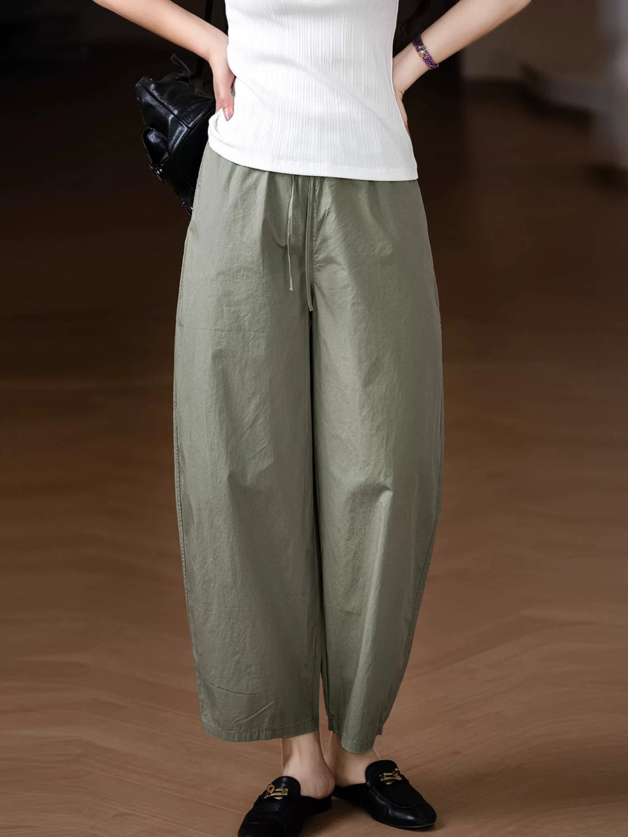 Women Summer Artsy Pure Color 100%Cotton Harem Pants