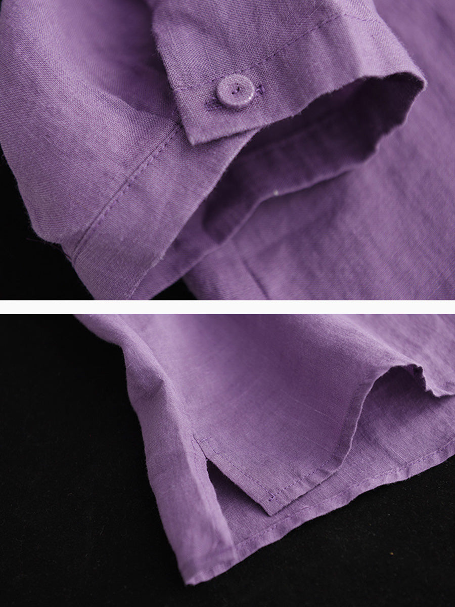 Plus Size Double Breasted Ramie Casual Summer Women Shirt