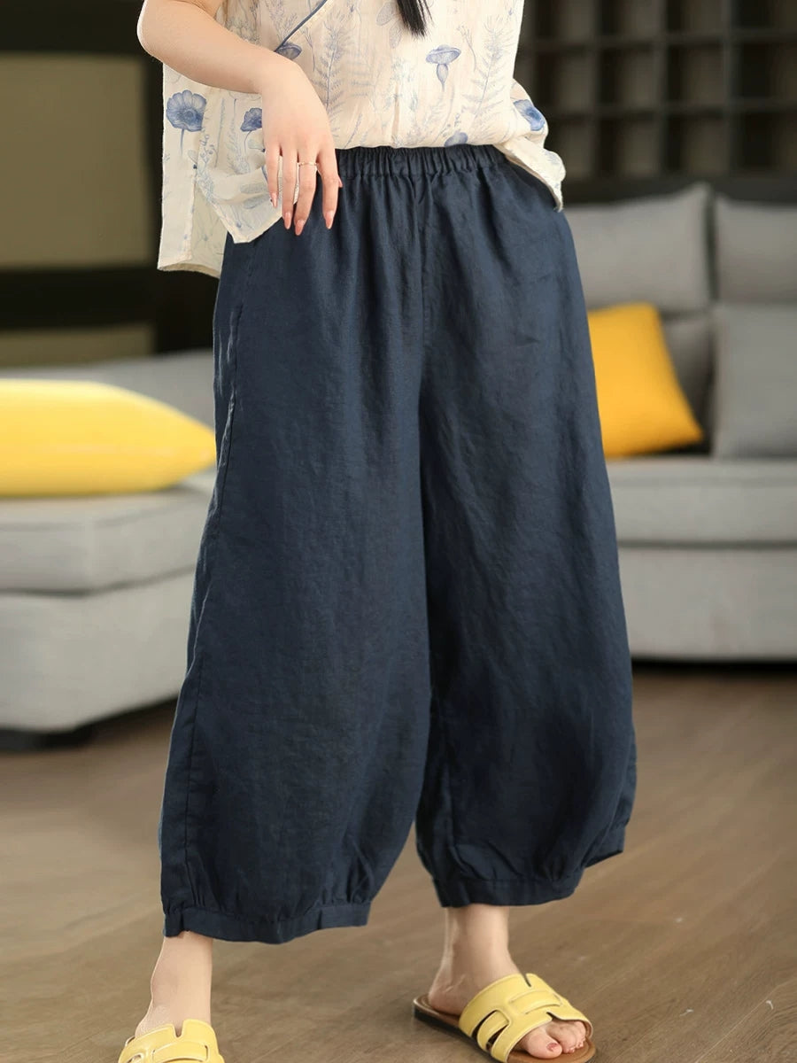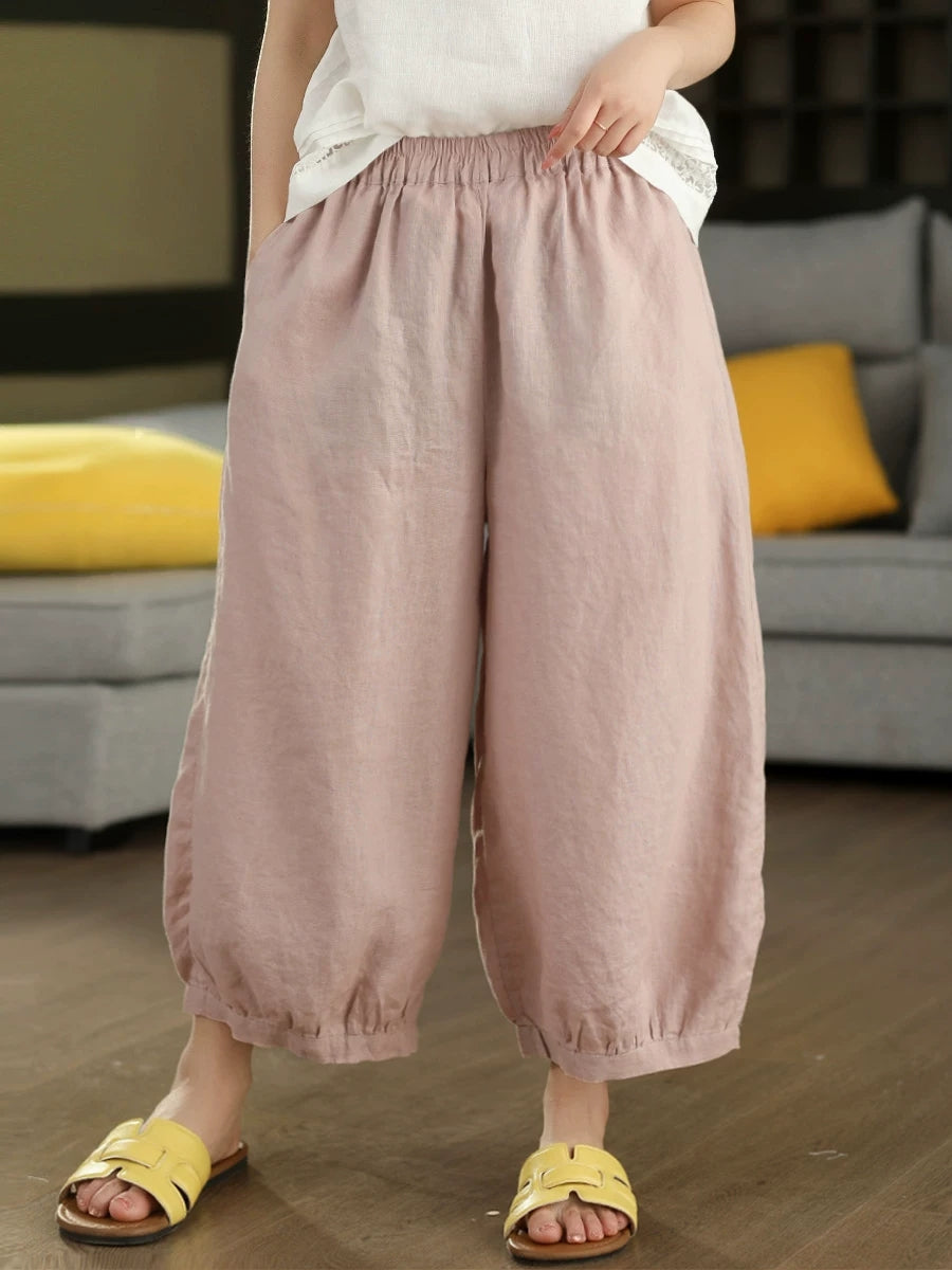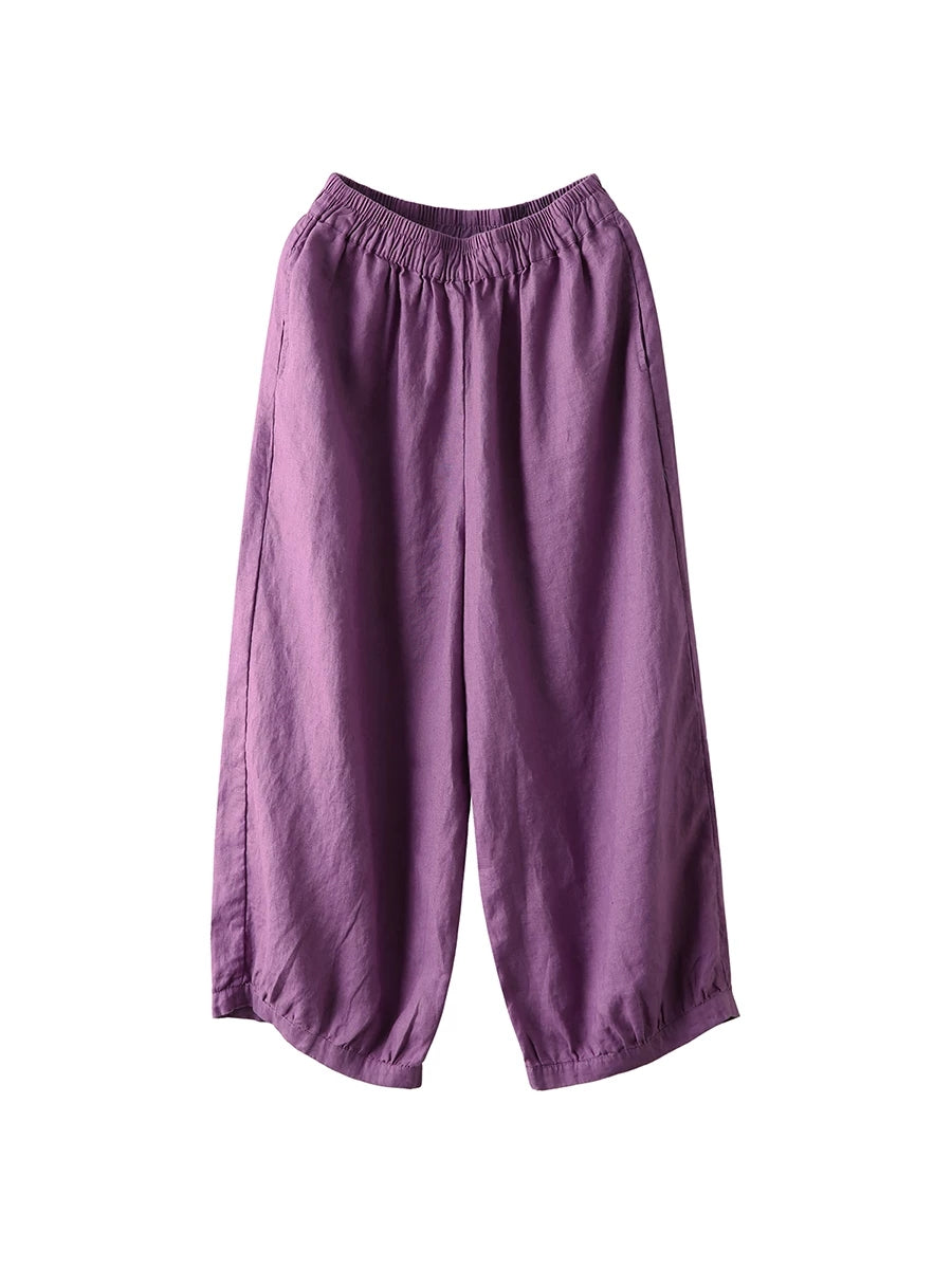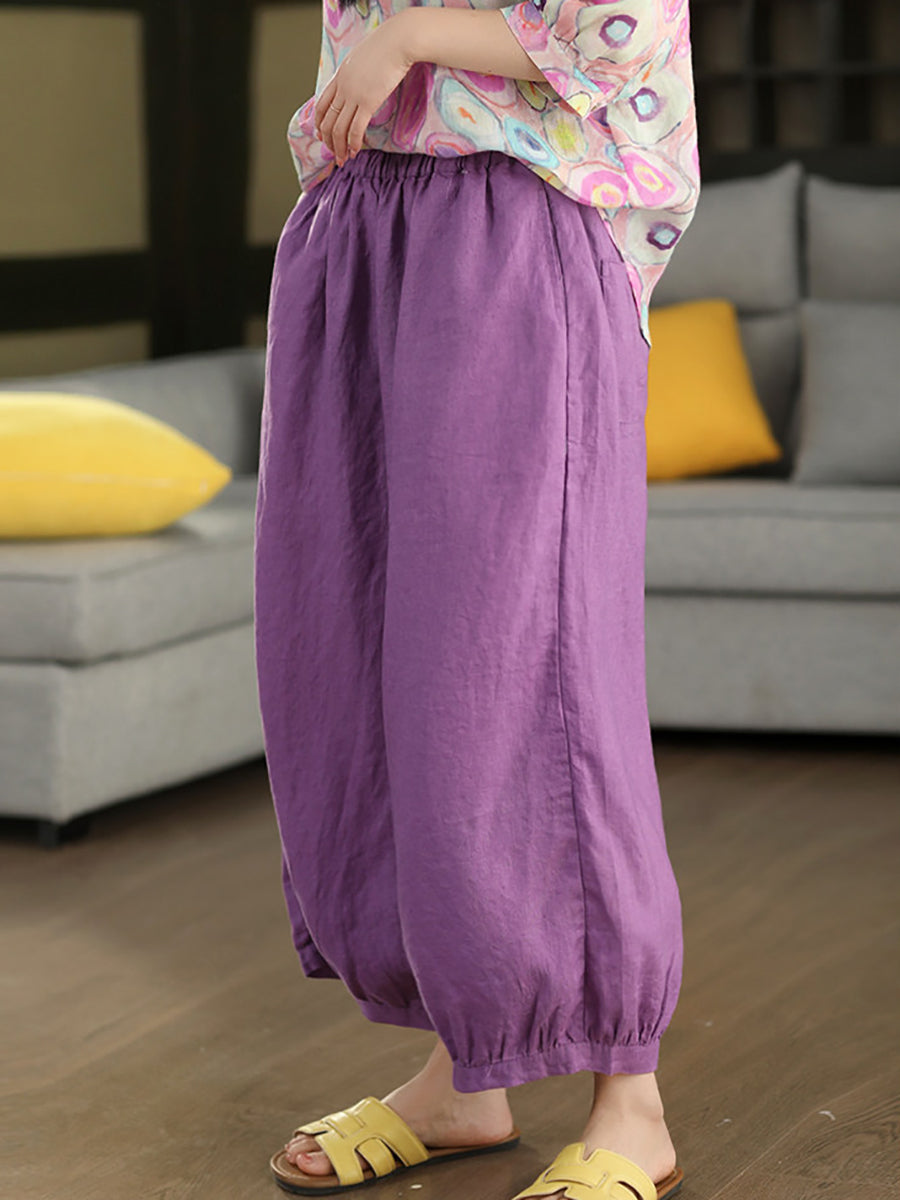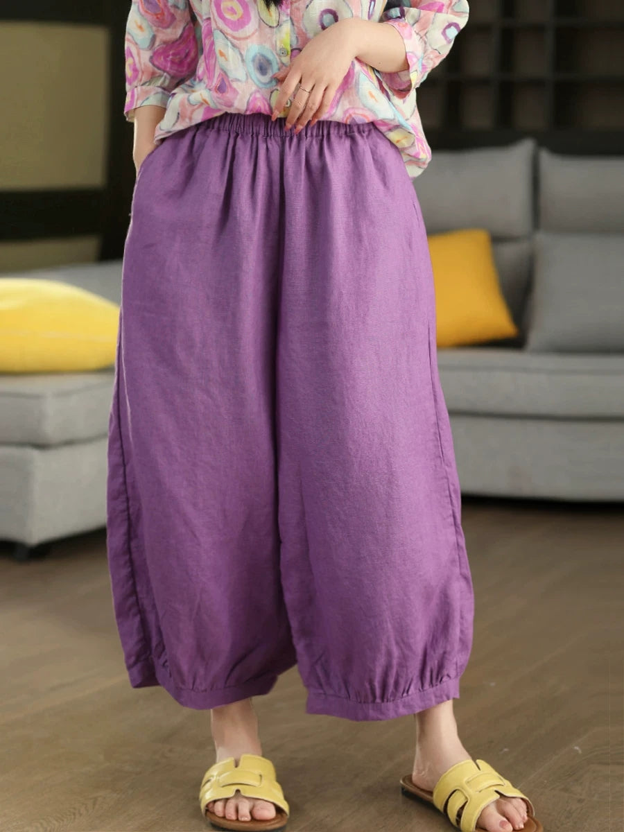 Women Summer Retro Pure Color 100%Linen Bloomers
