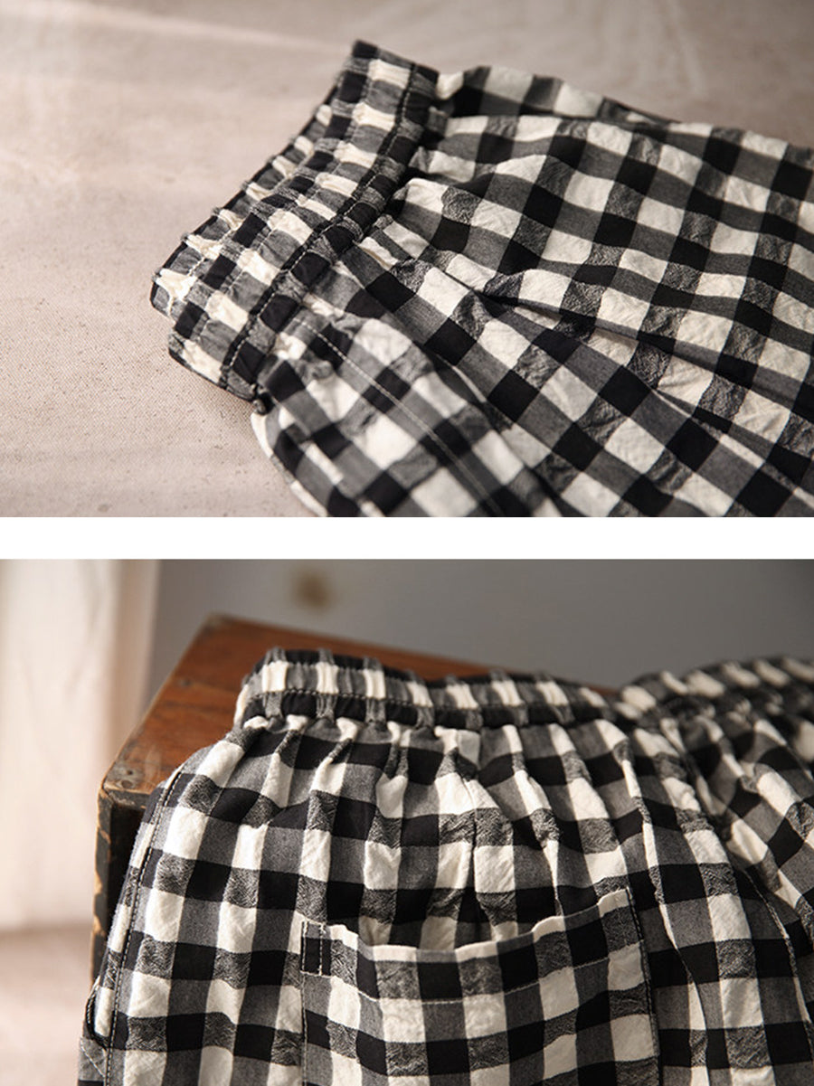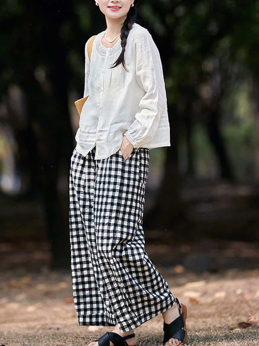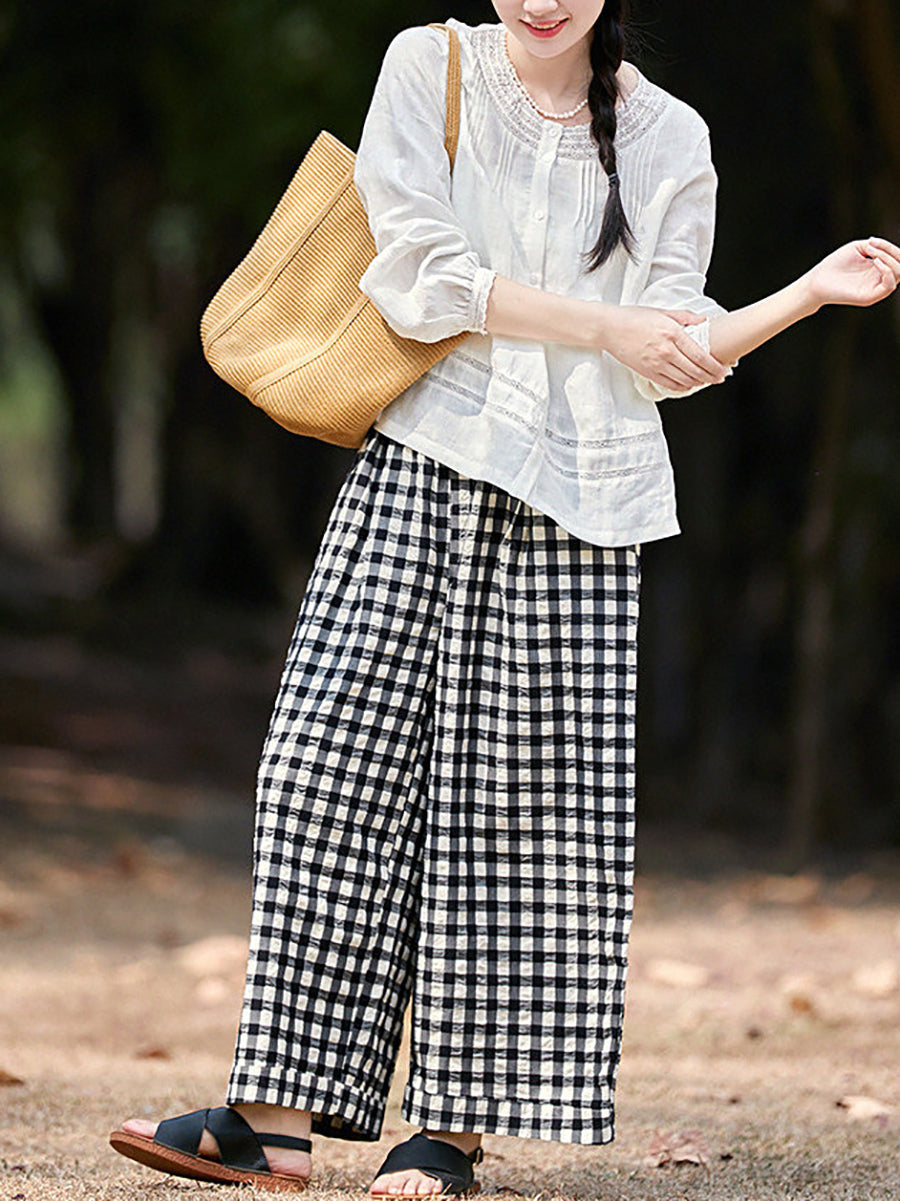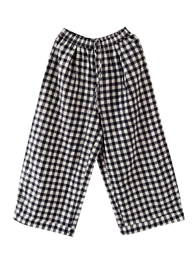Women Spring Plaid 100%Cotton Straight Pants