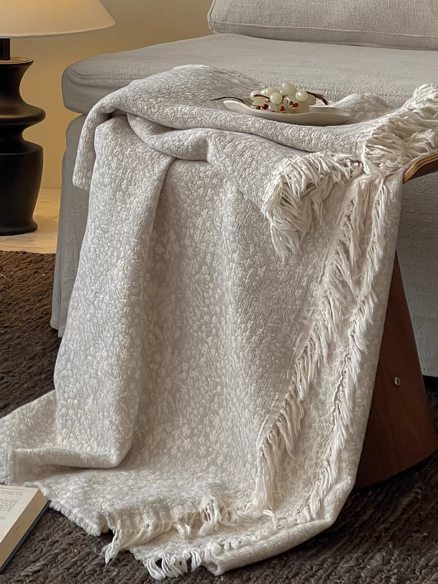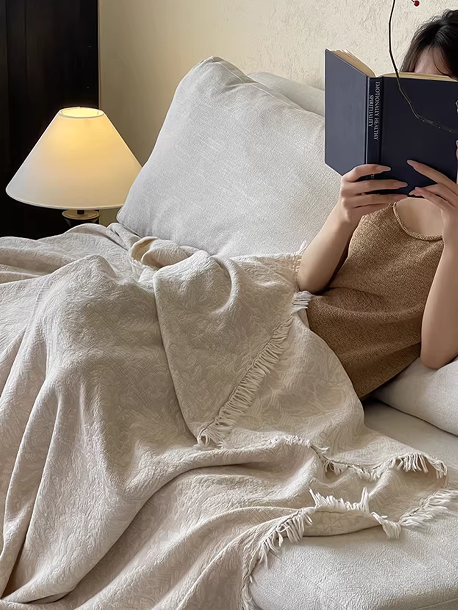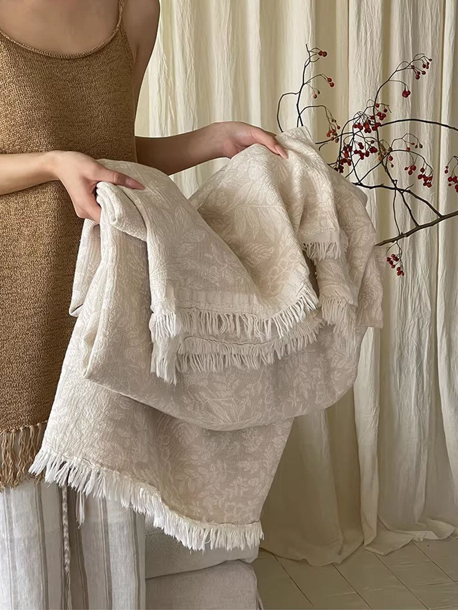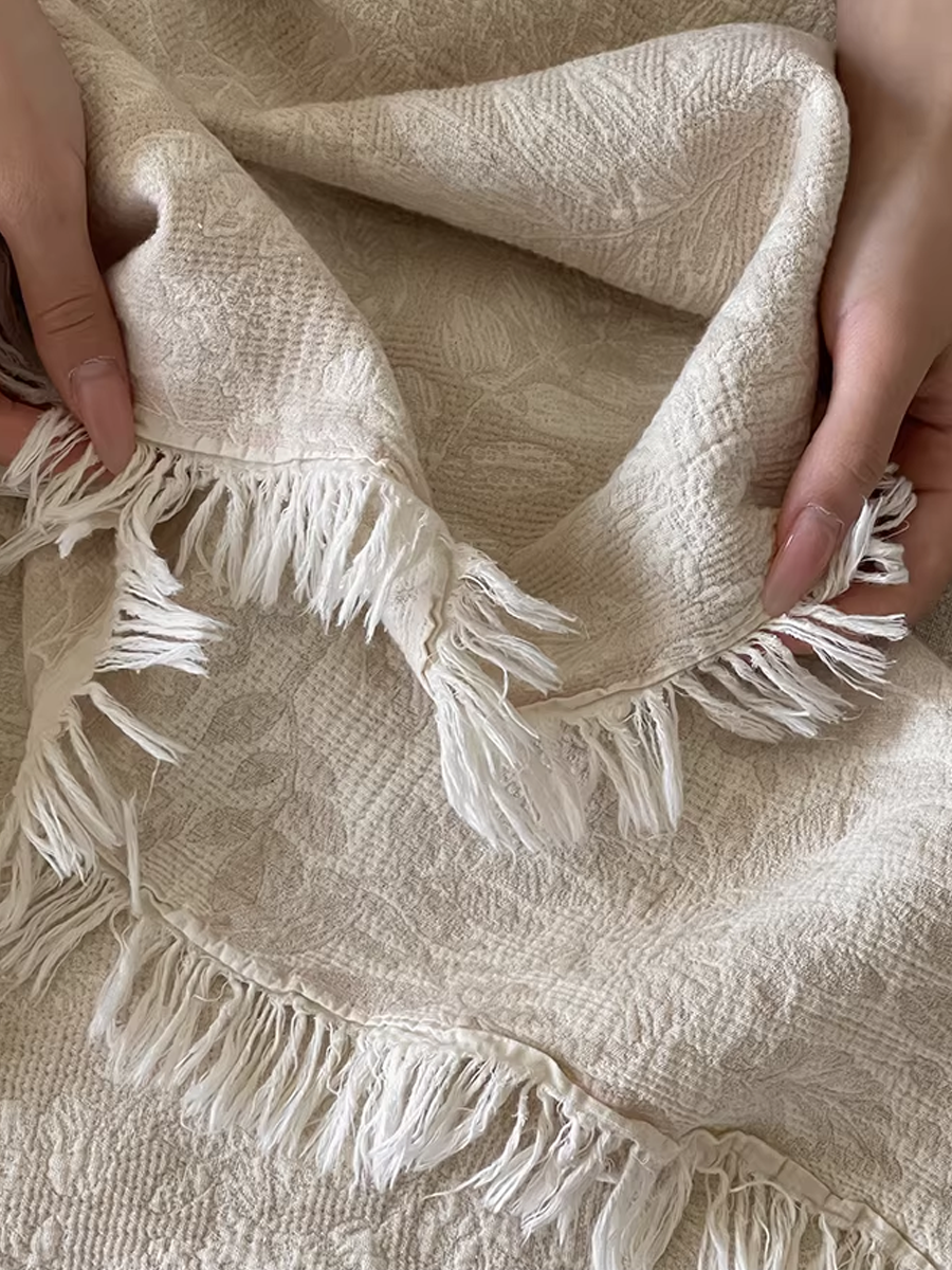 Vintage Yarn-dyed Cotton and Linen Tassel Blanket