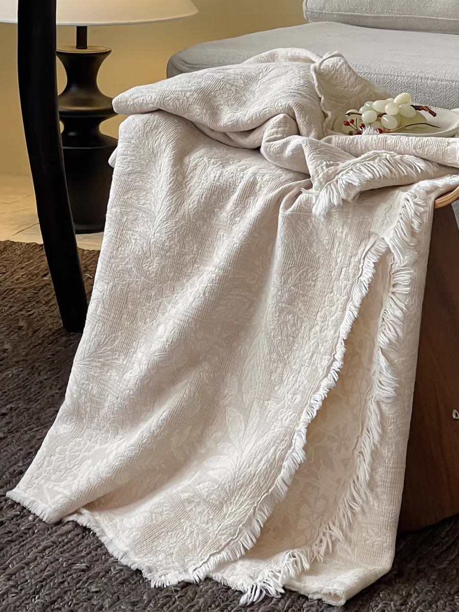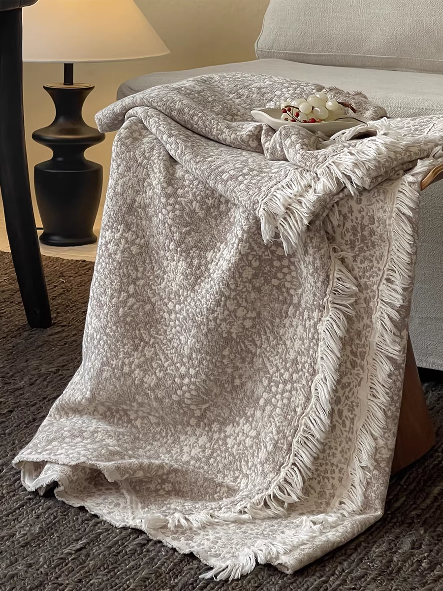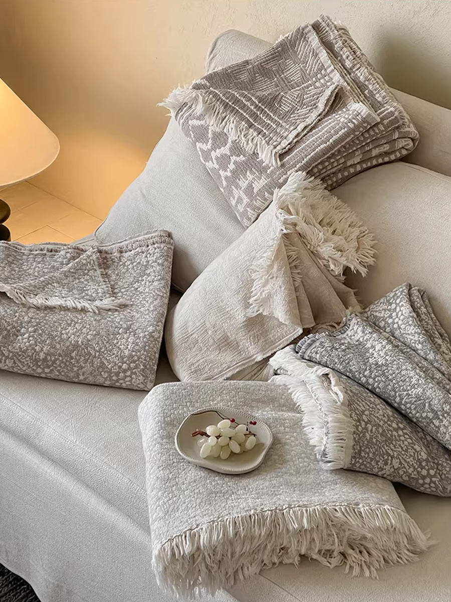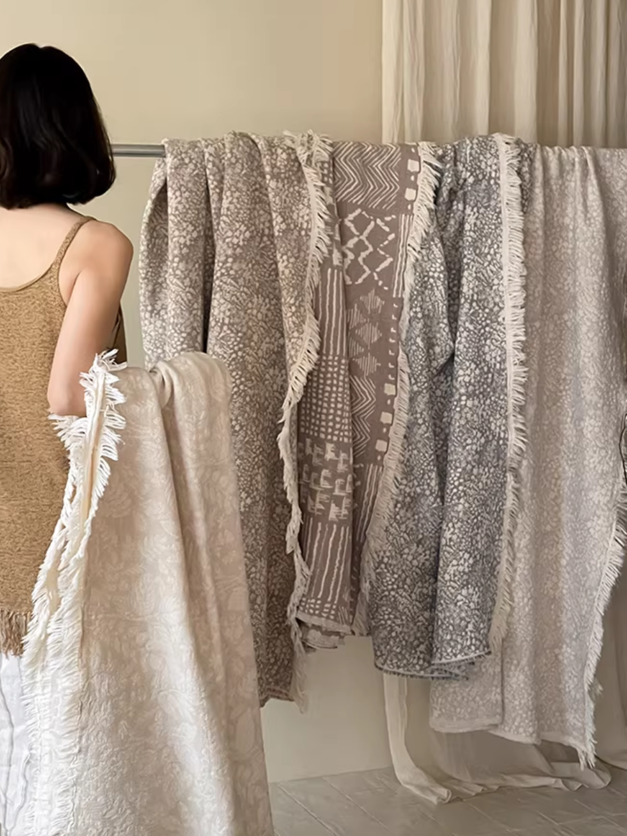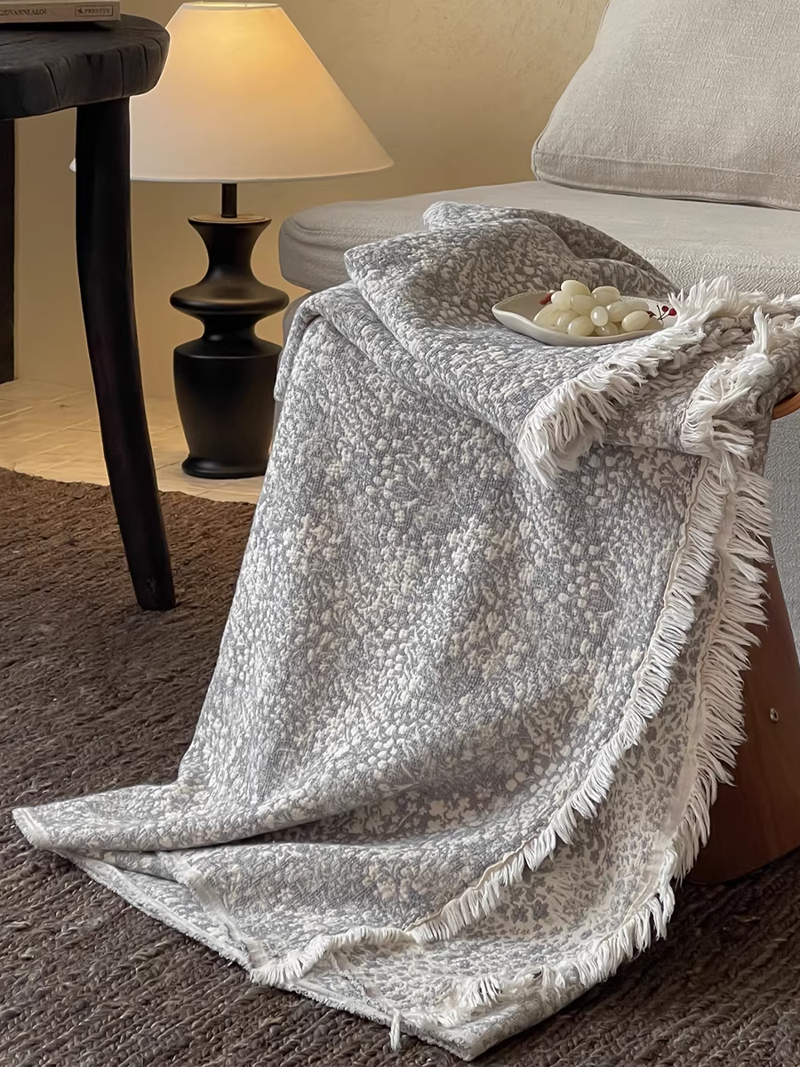 Vintage Yarn-dyed Cotton and Linen Tassel Blanket