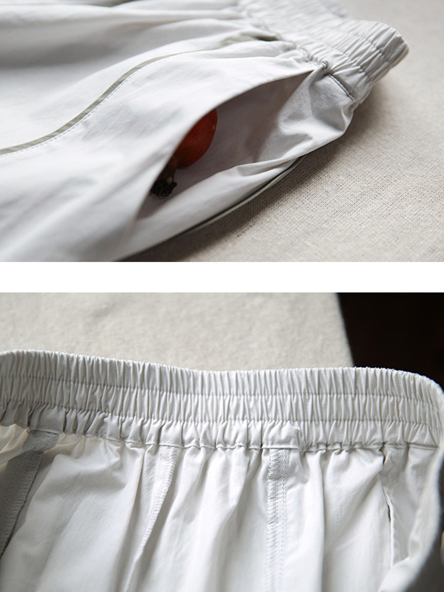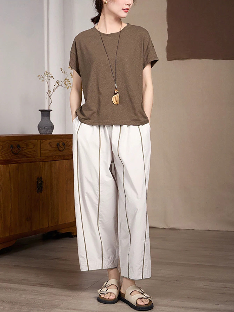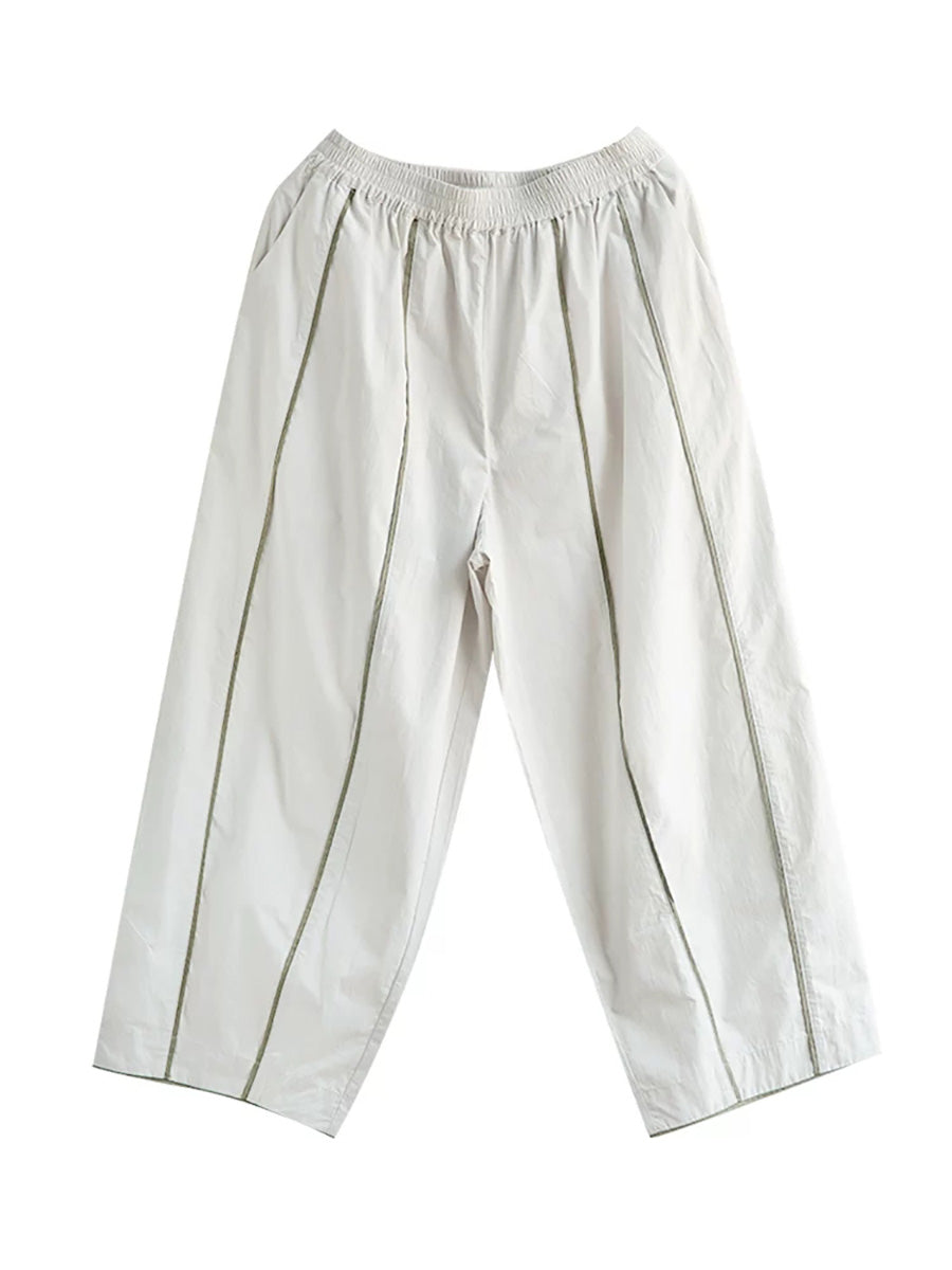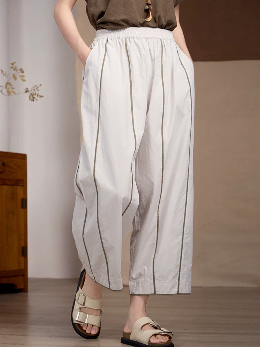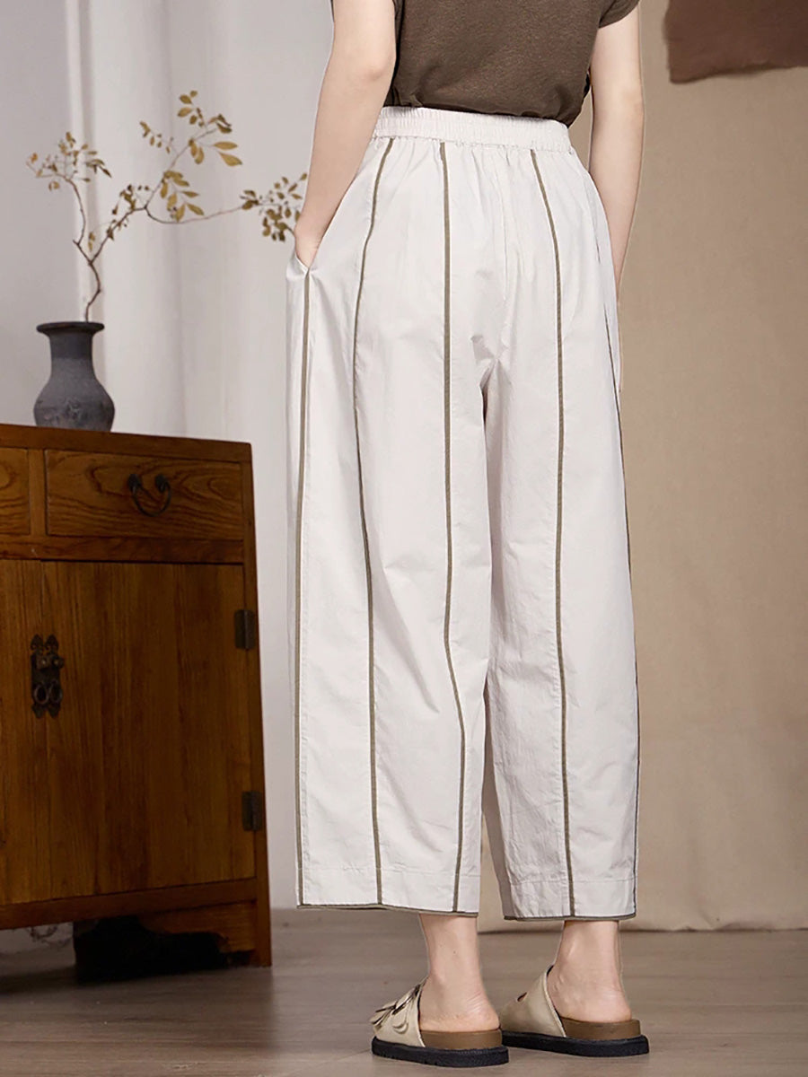 Women Spring Stripe Spliced Cotton Straight Pants