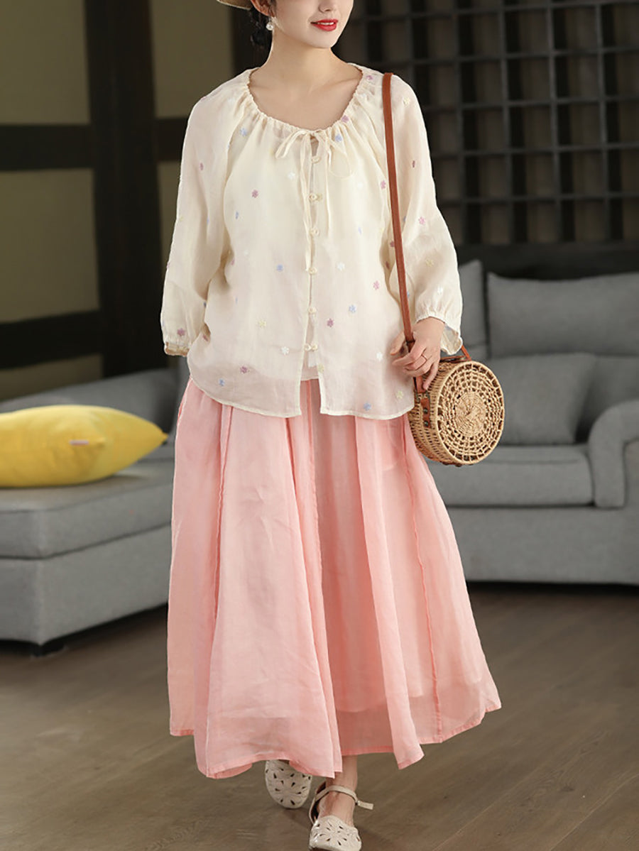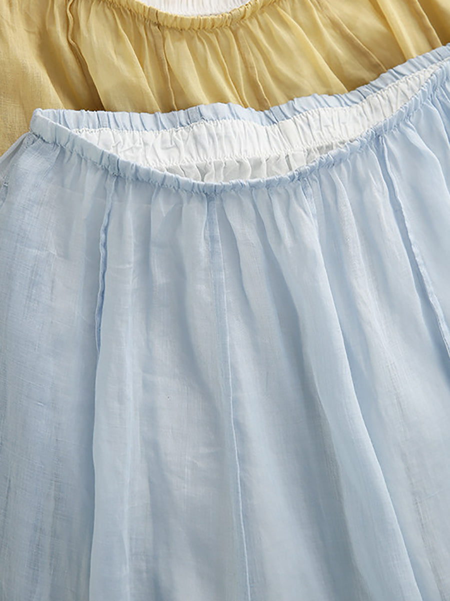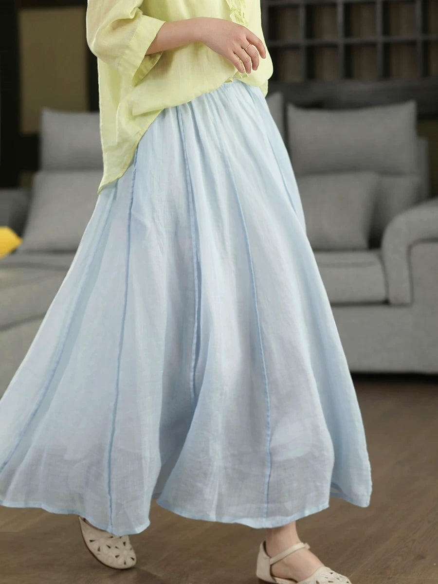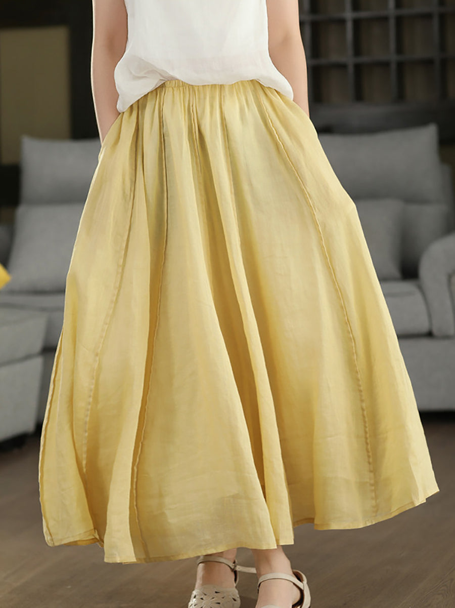 Women Summer Artsy Pure Color 100%Ramie Skirt