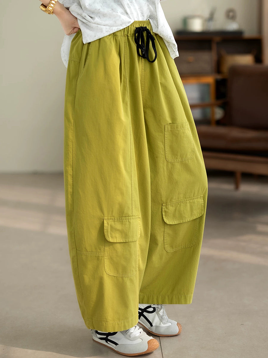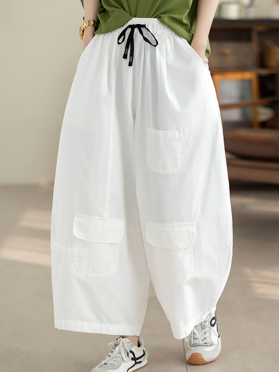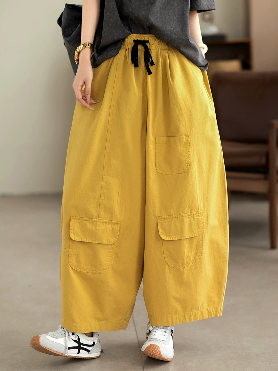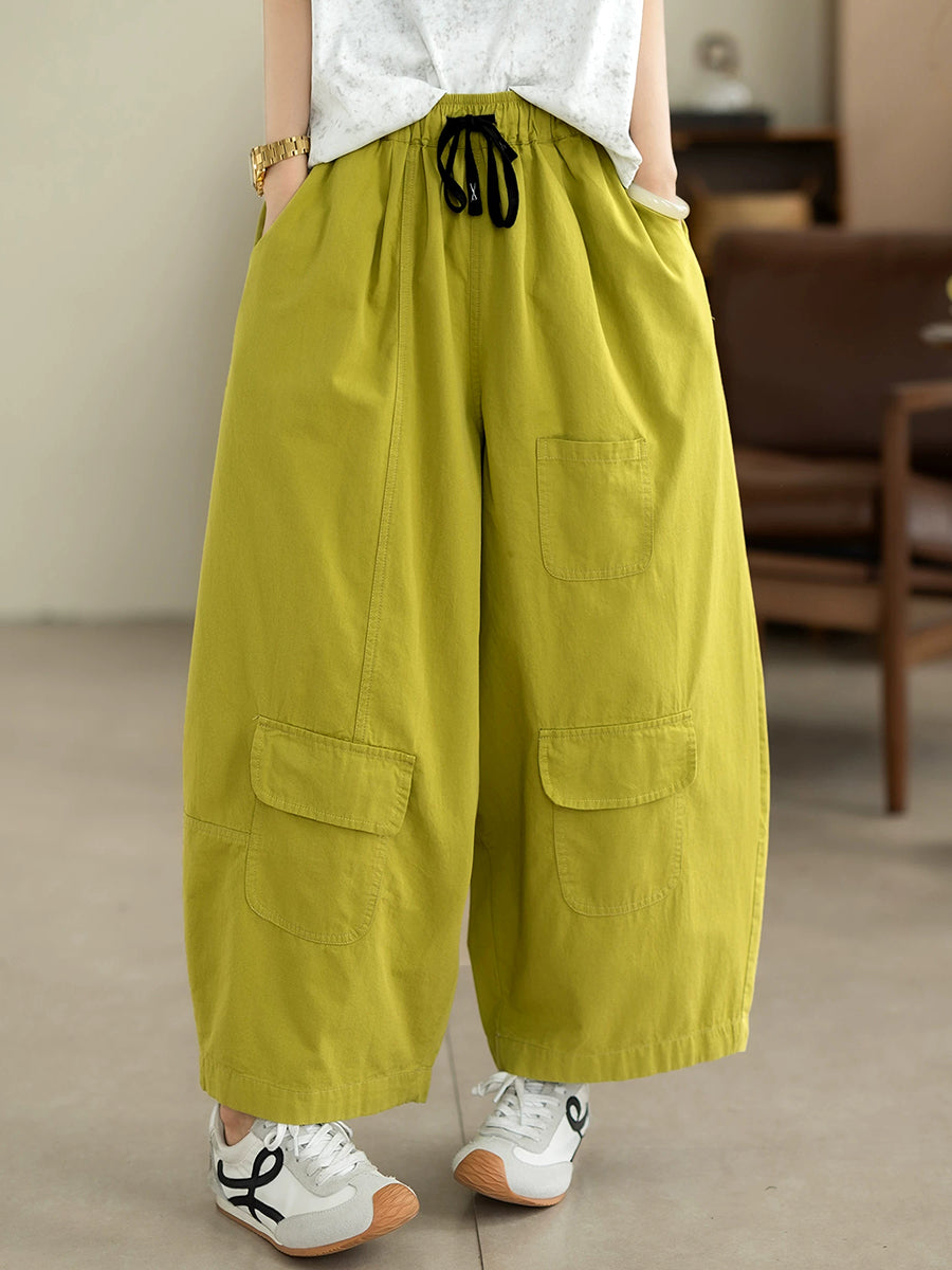 Women Summer Casual Pure Color 100%Cotton Wide-leg Pants