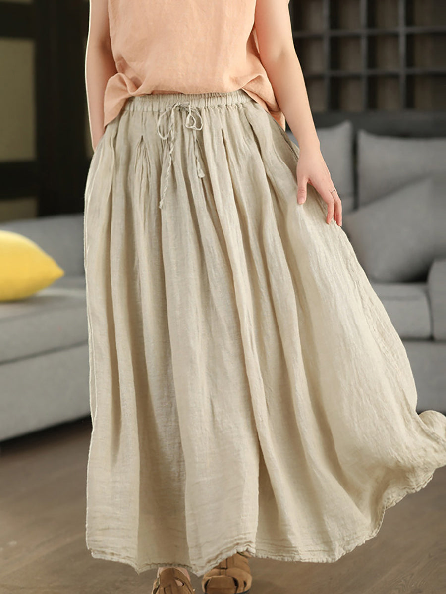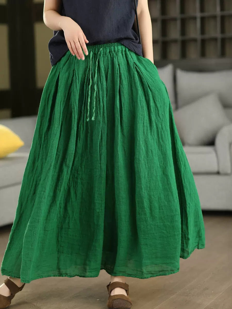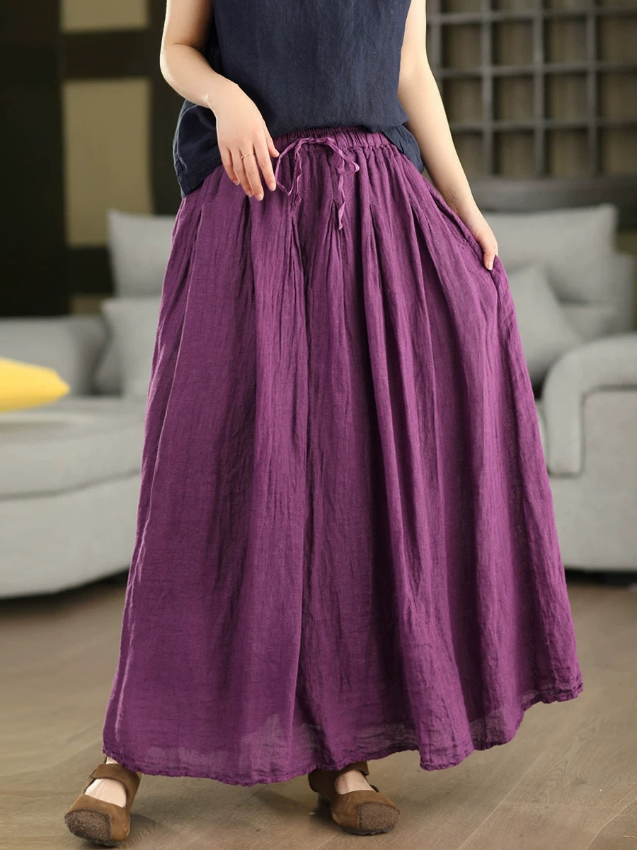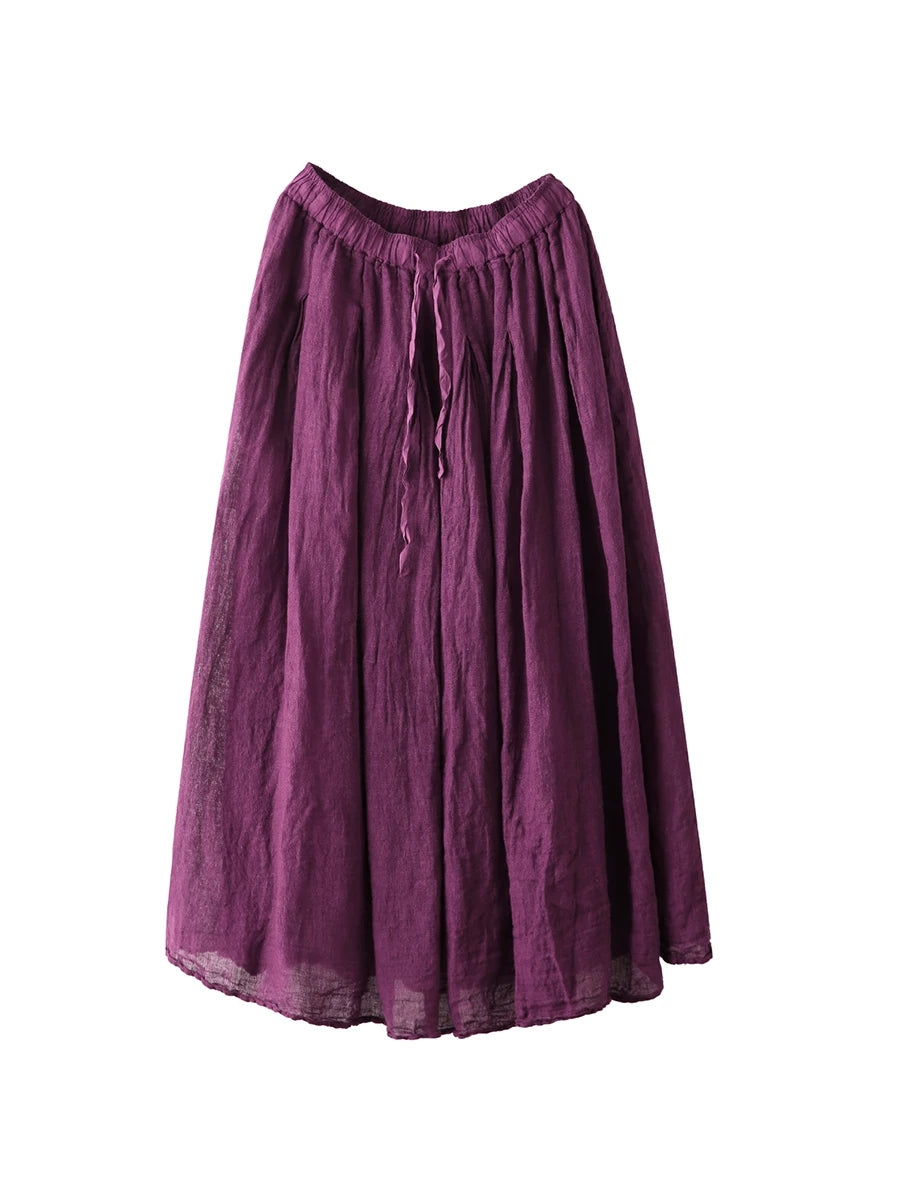 Women Summer Pure Color 100%Linen Skirt