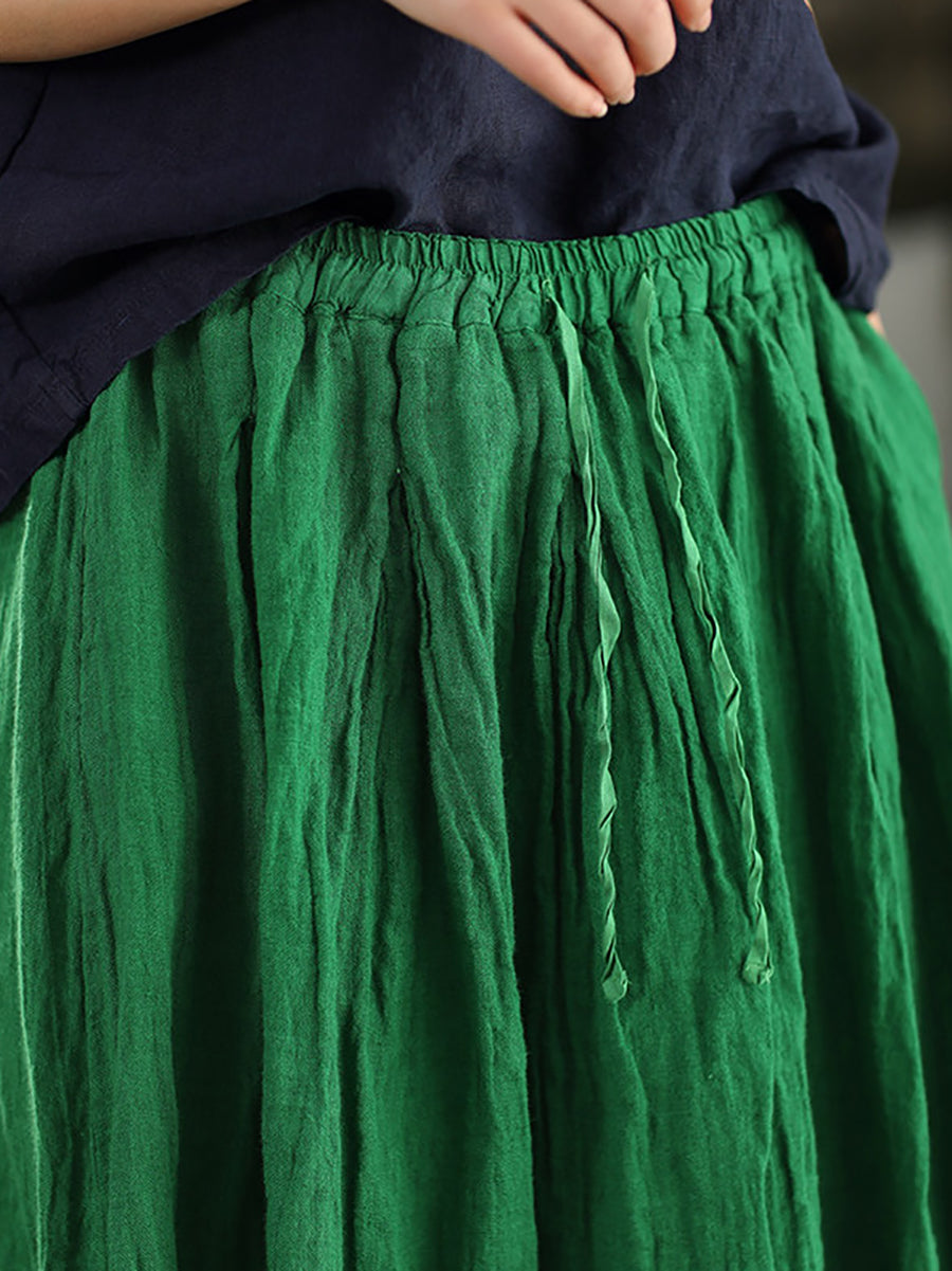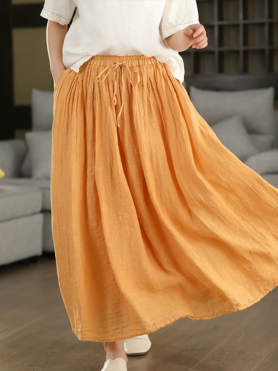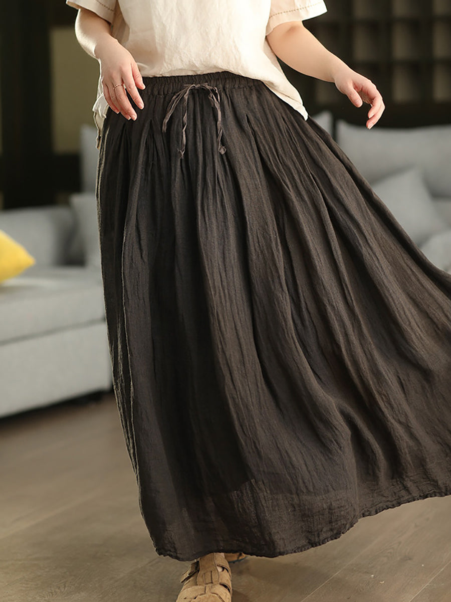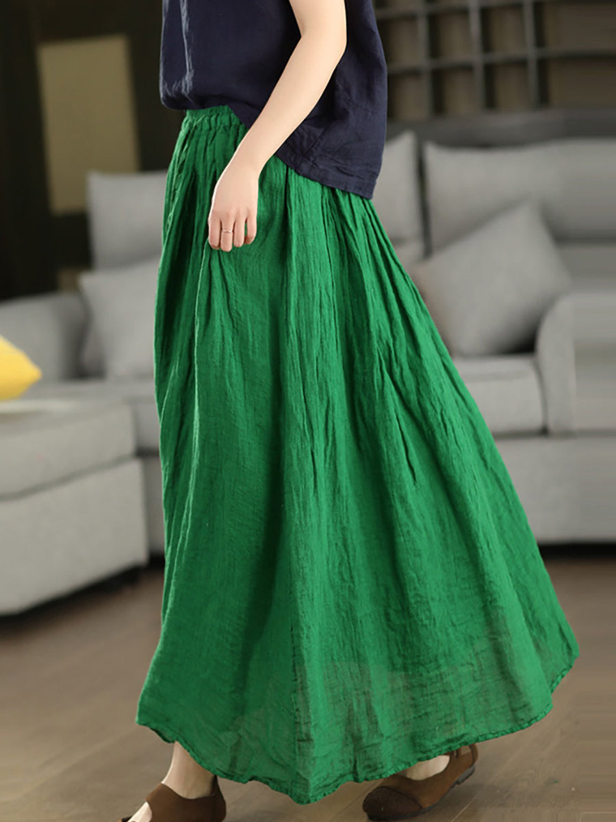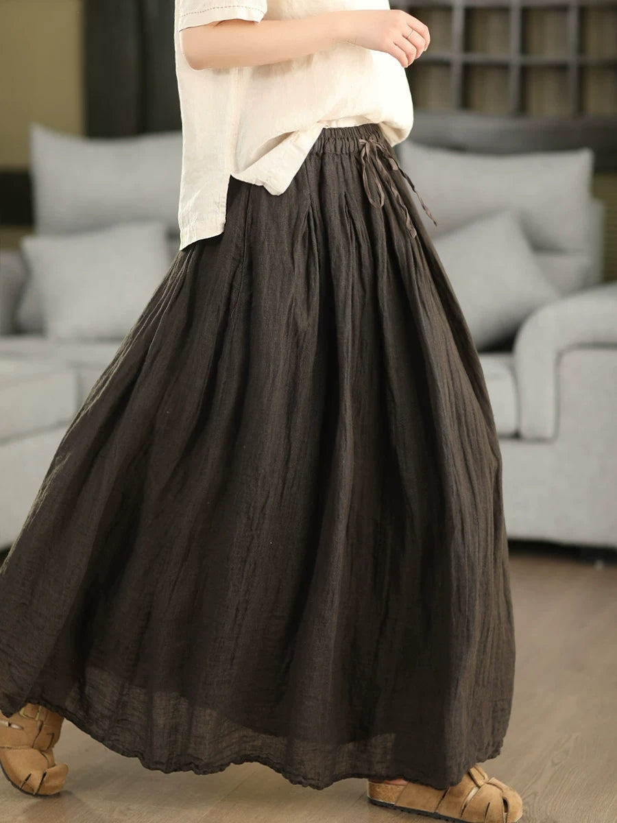 Women Summer Pure Color 100%Linen Skirt