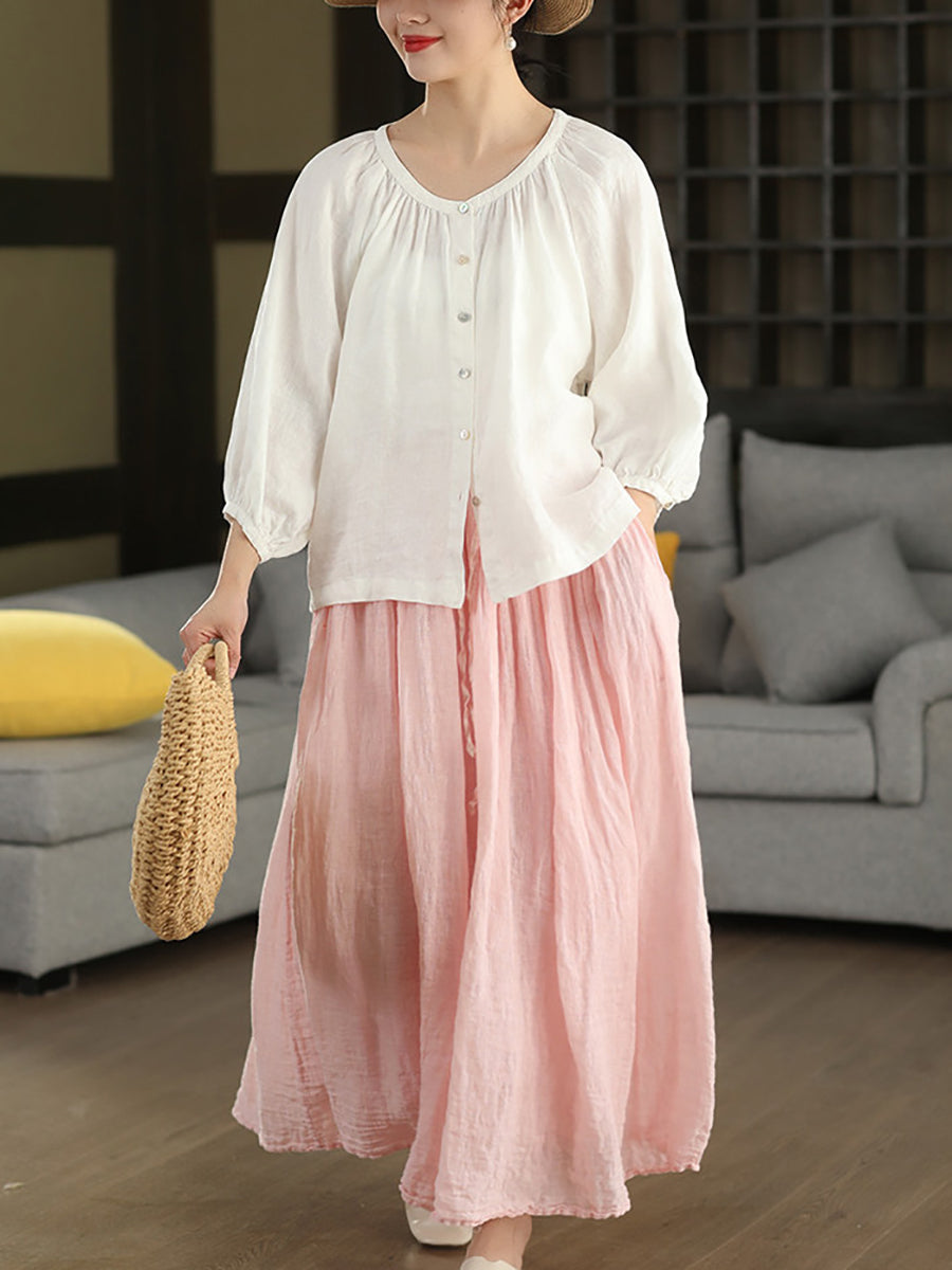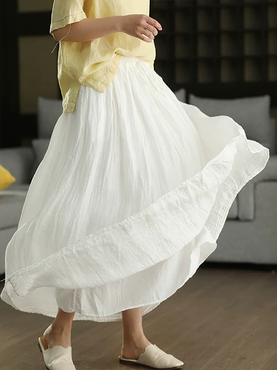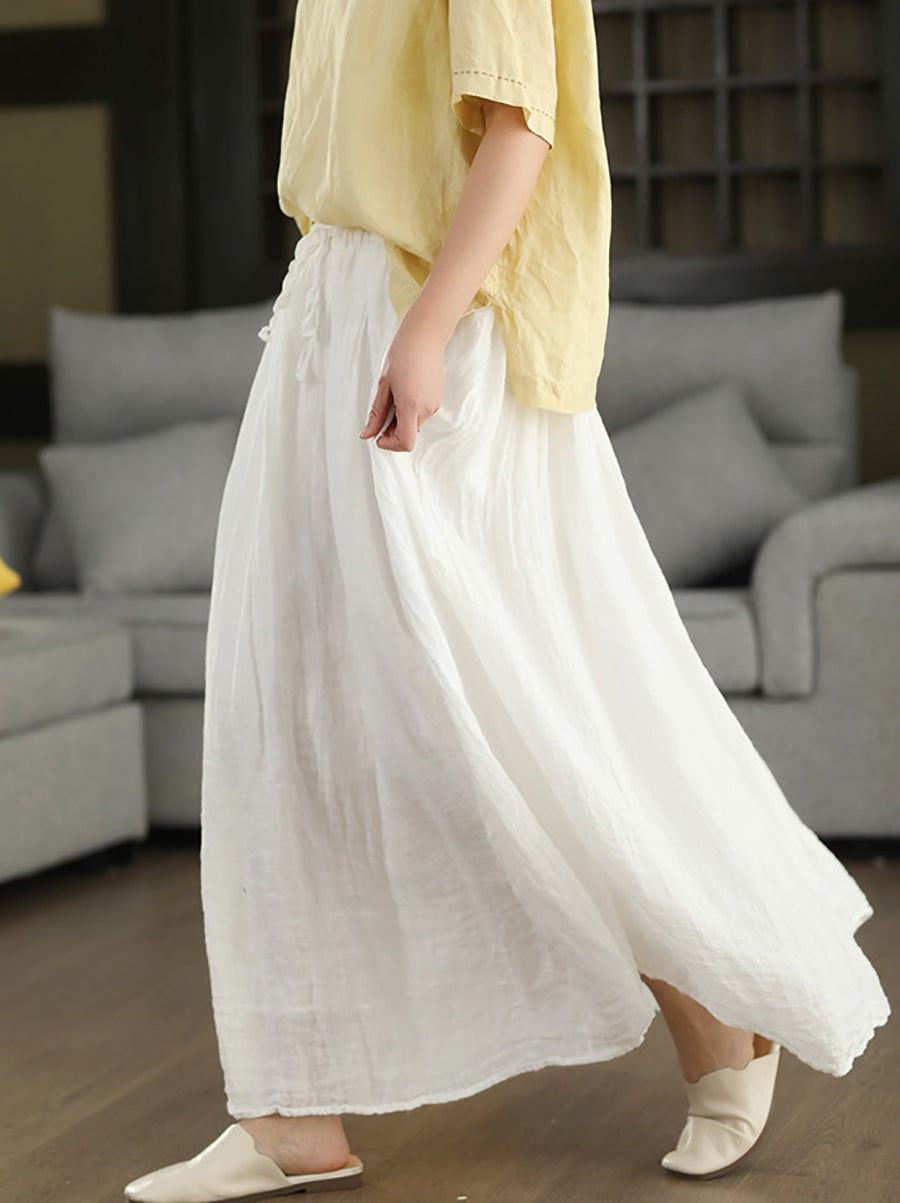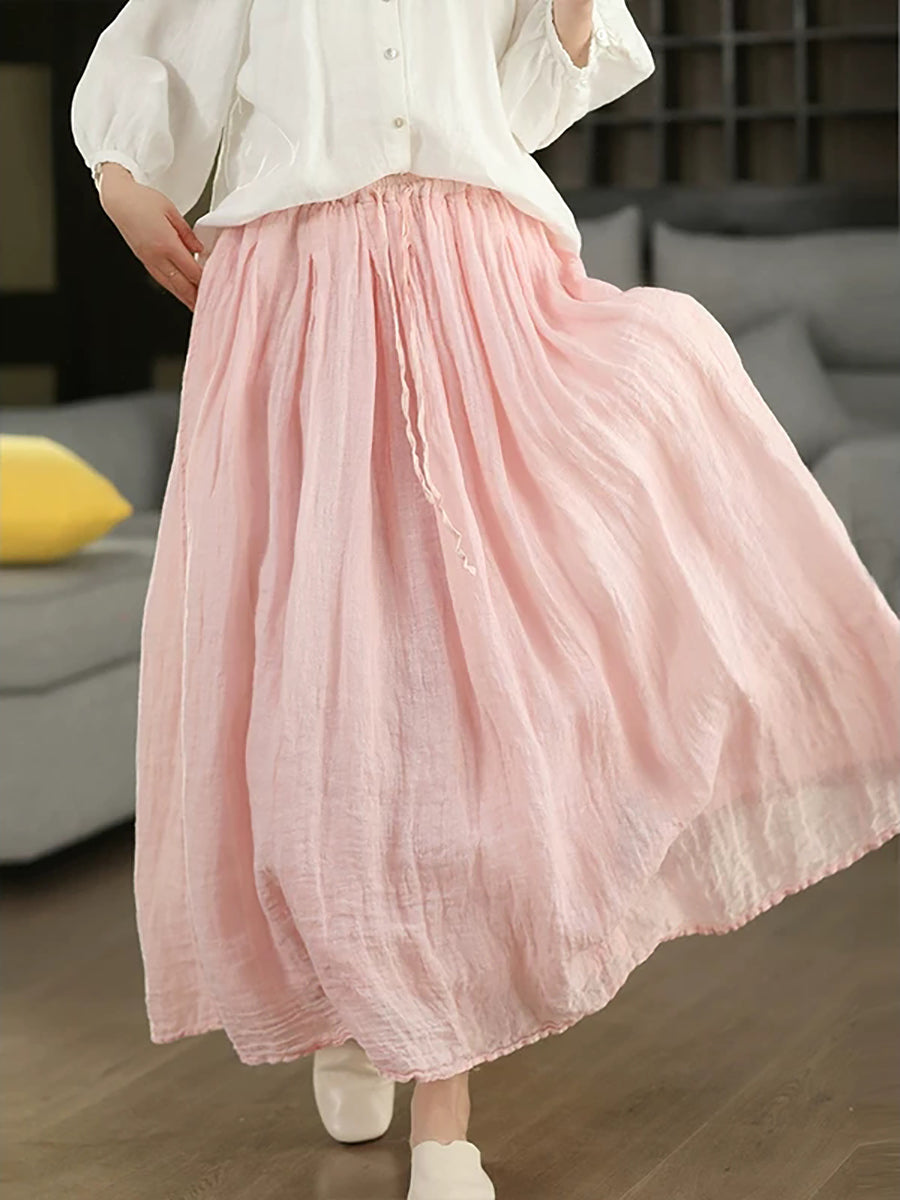 Women Summer Pure Color 100%Linen Skirt