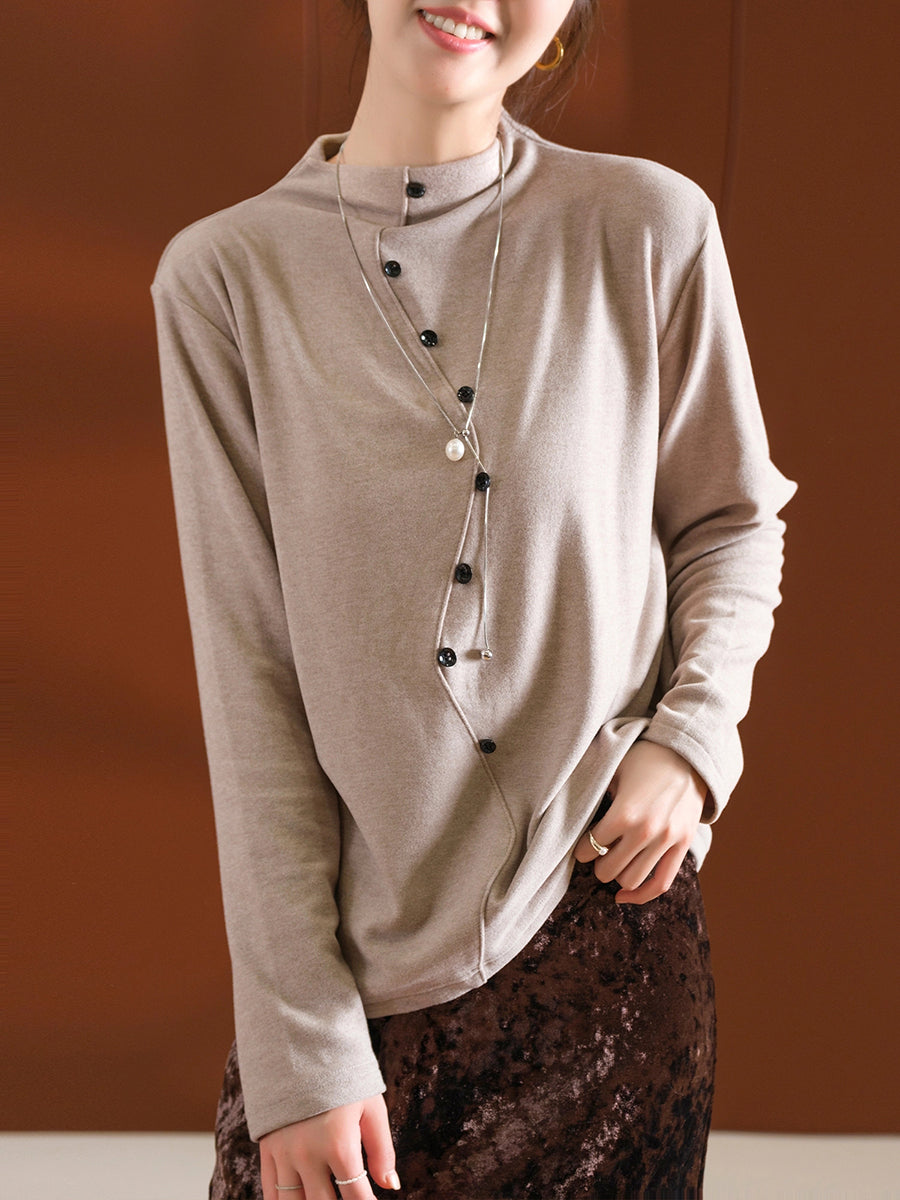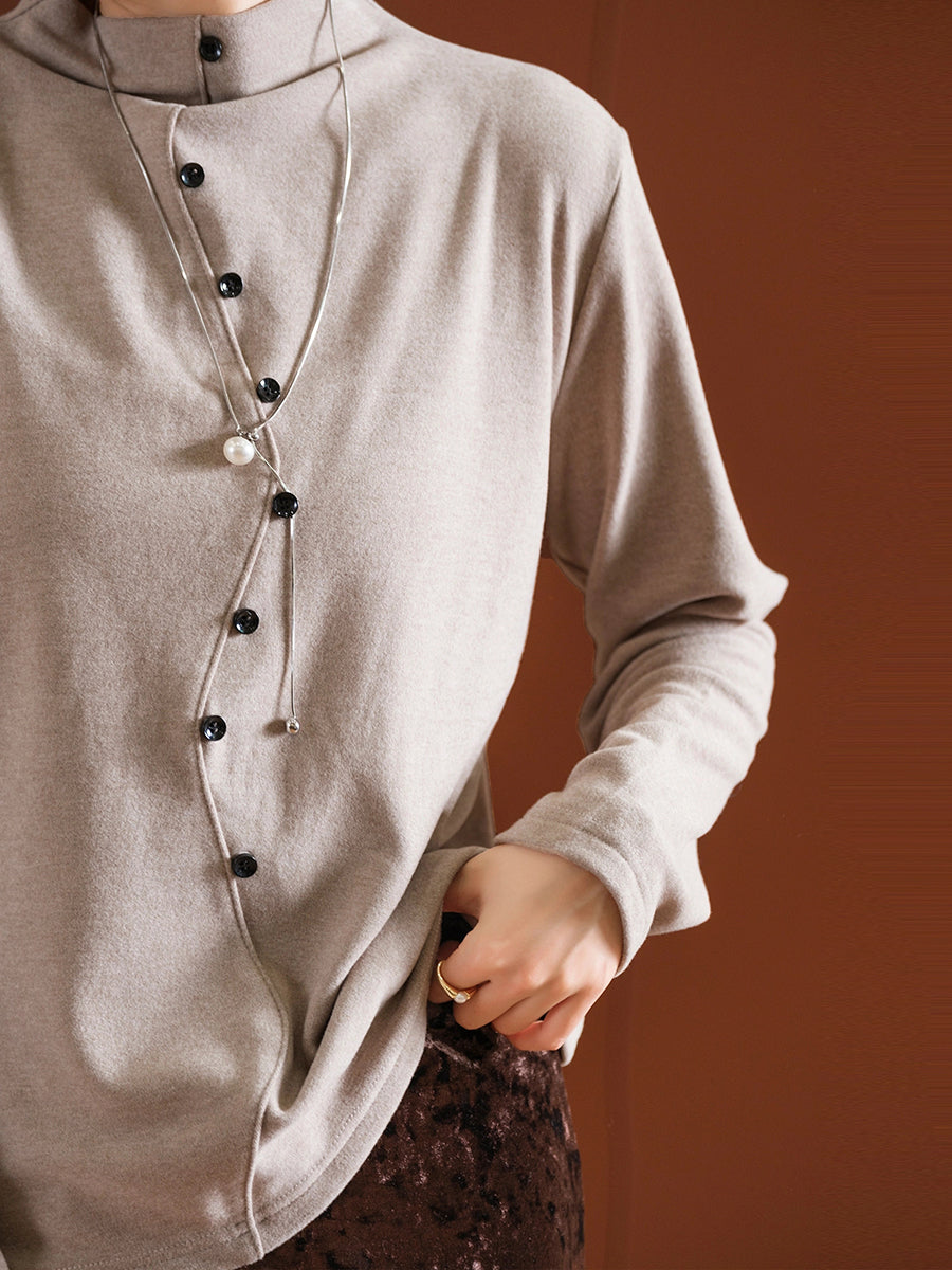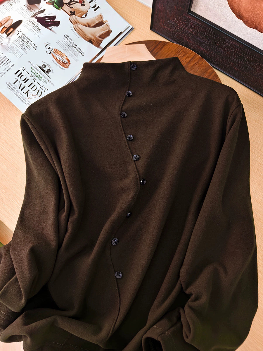Women Autumn Pure Color Half-Turtleneck Blouse