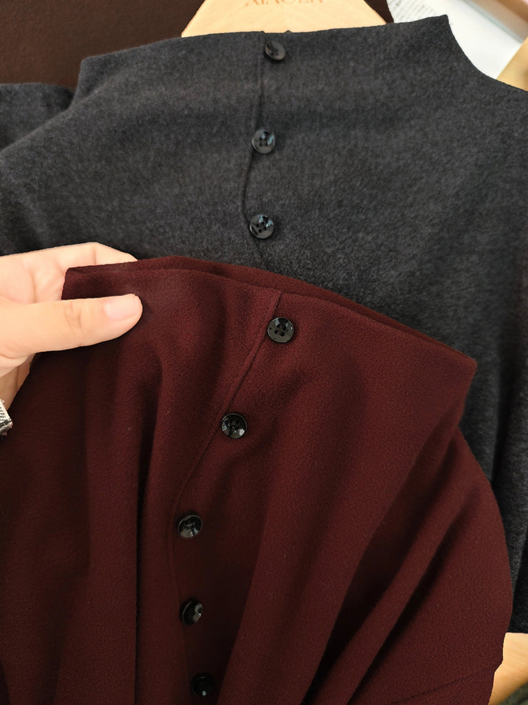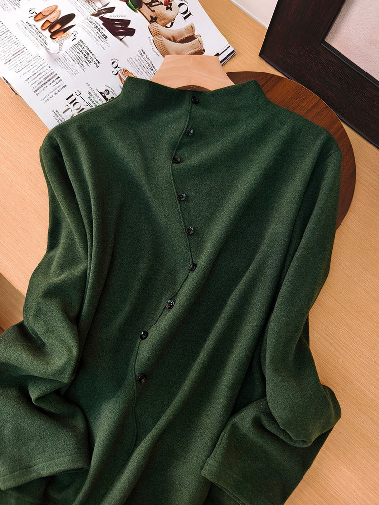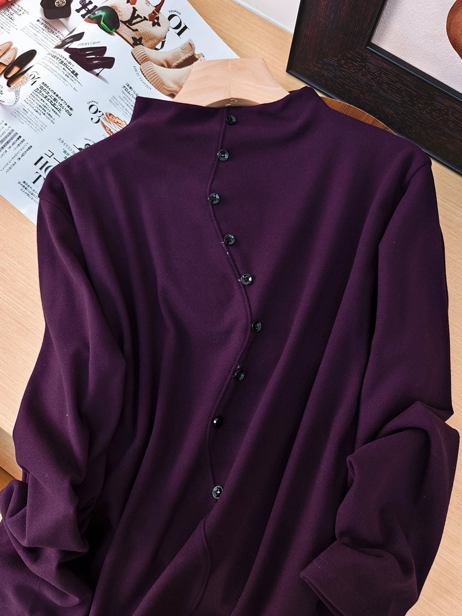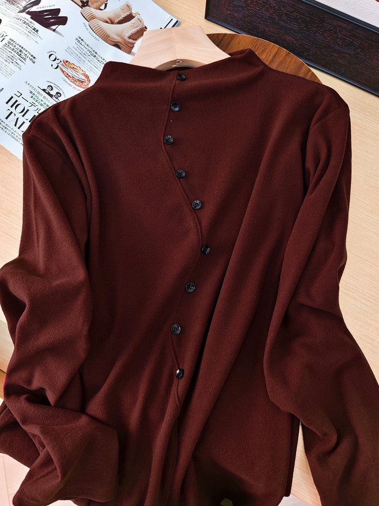 Women Autumn Pure Color Half-Turtleneck Blouse