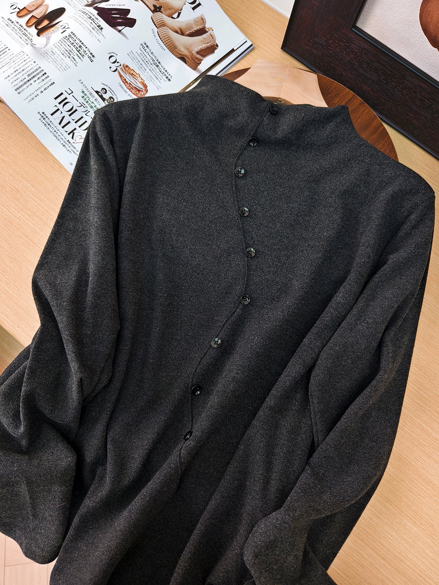 Crafted from a premium blend of 65% rayon, 27% polyester, and 8% spandex, this half-turtleneck blouse delivers exceptional comfort and subtle stretch. The fabric composition ensures breathability while maintaining shape throughout wear. Designed with full-length regular sleeves and a refined half-turtleneck collar, this versatile piece transitions seamlessly between autumn and winter seasons. The understated solid colorway pairs effortlessly with any wardrobe, making it an essential layering piece for cooler months.
