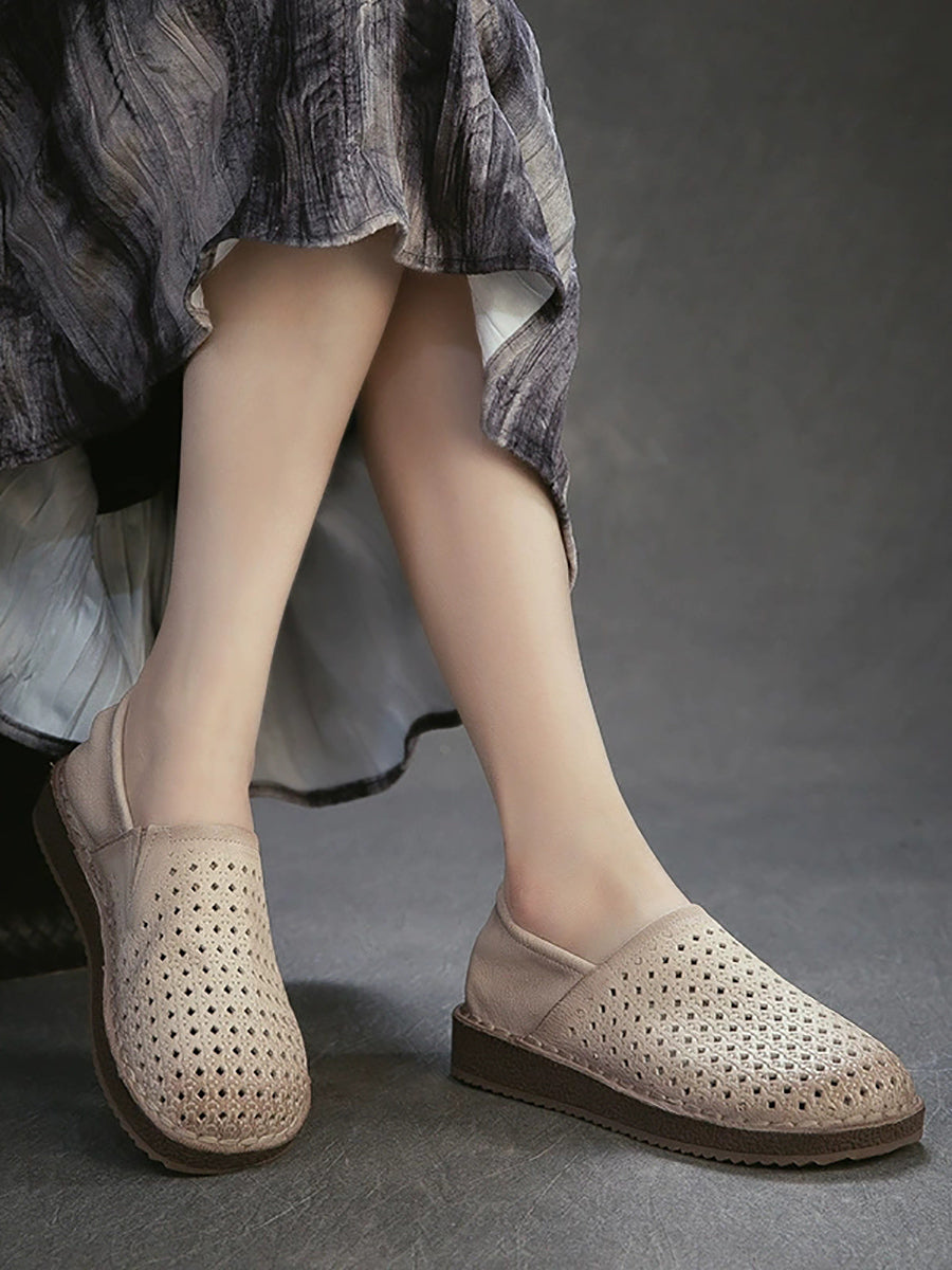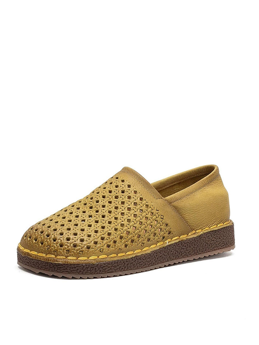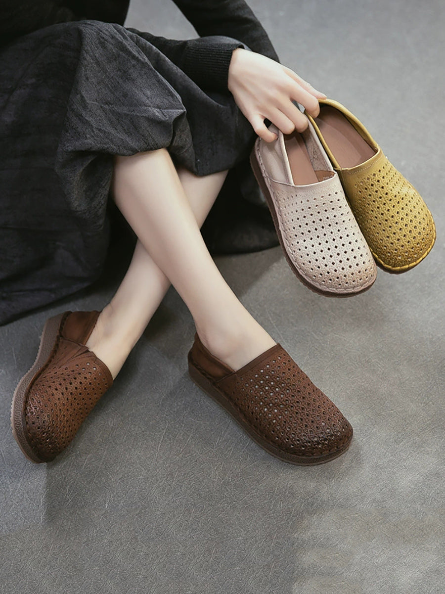 Women Summer Soft Leather Hollow Out Flat Shoes