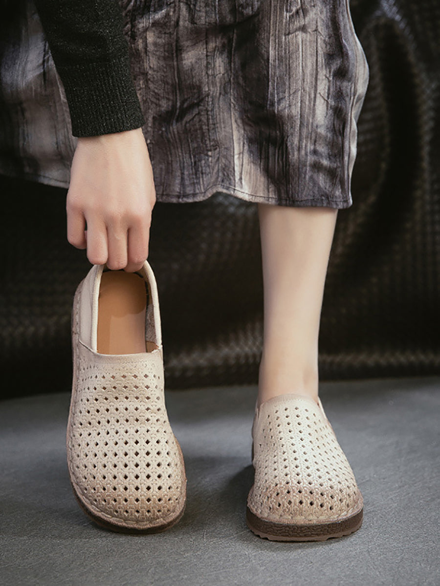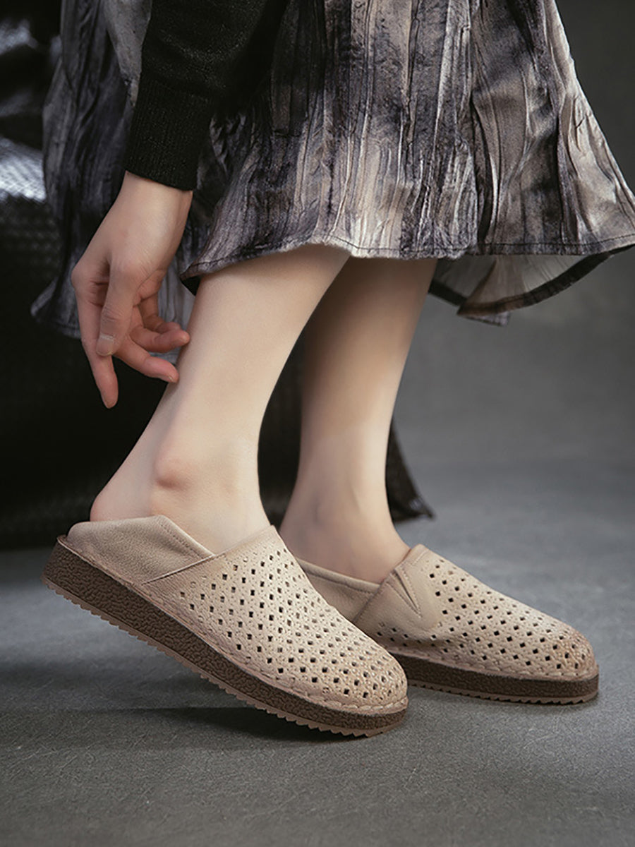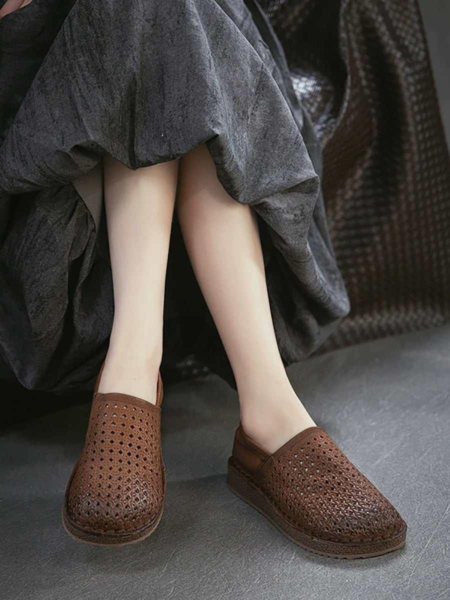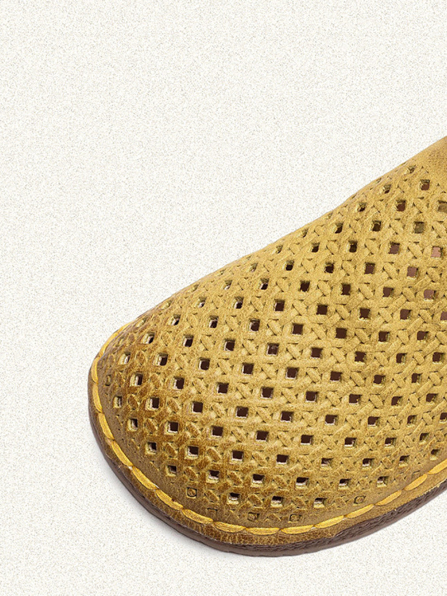 Women Summer Soft Leather Hollow Out Flat Shoes