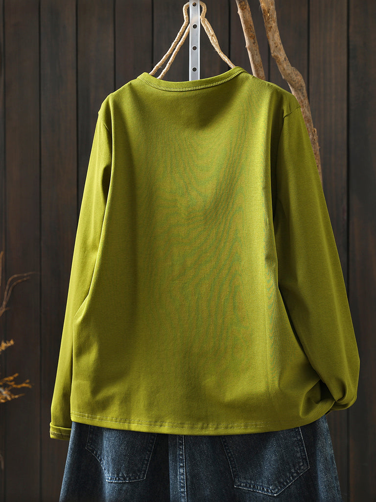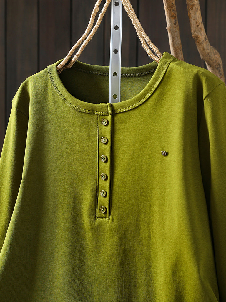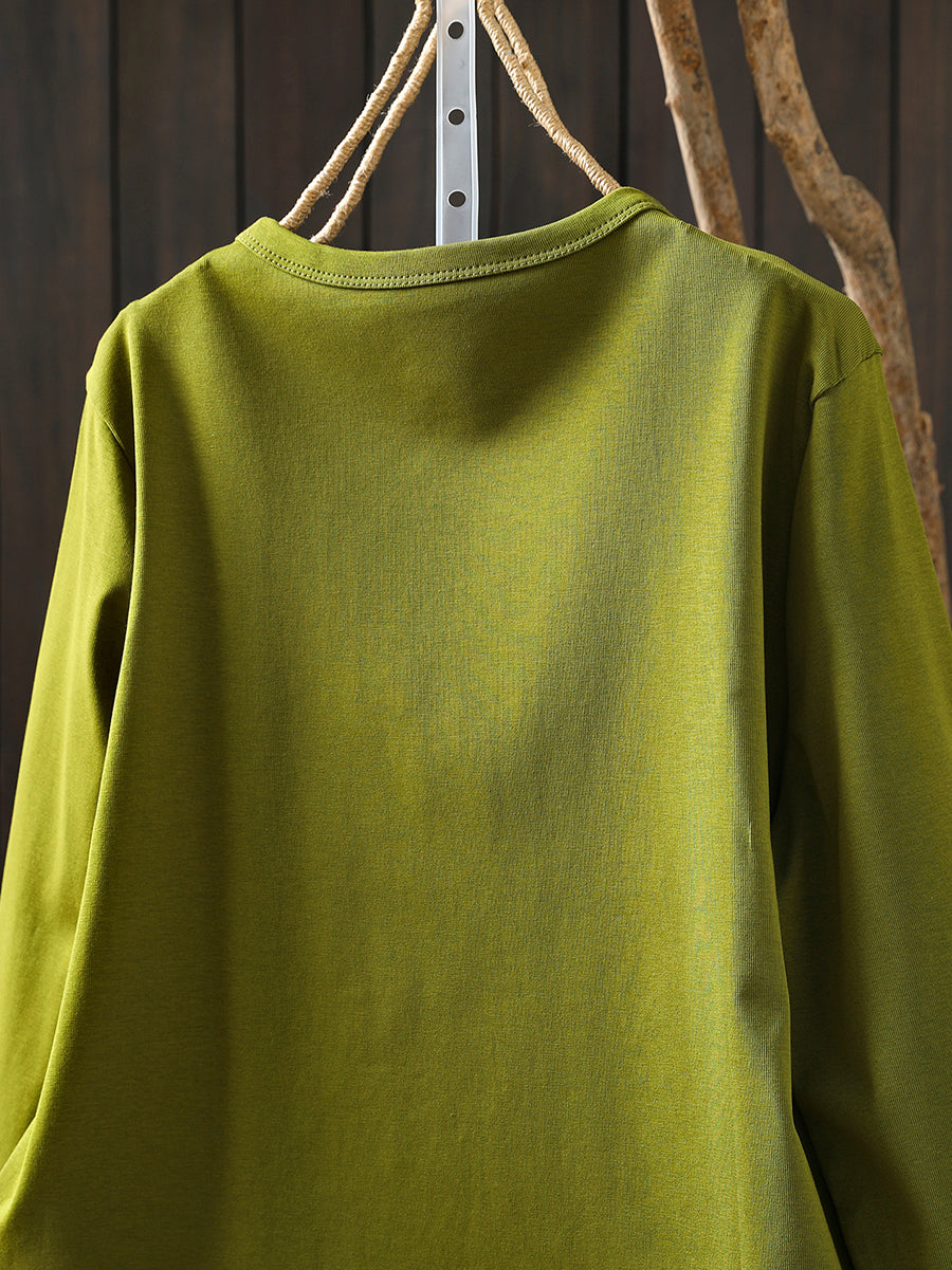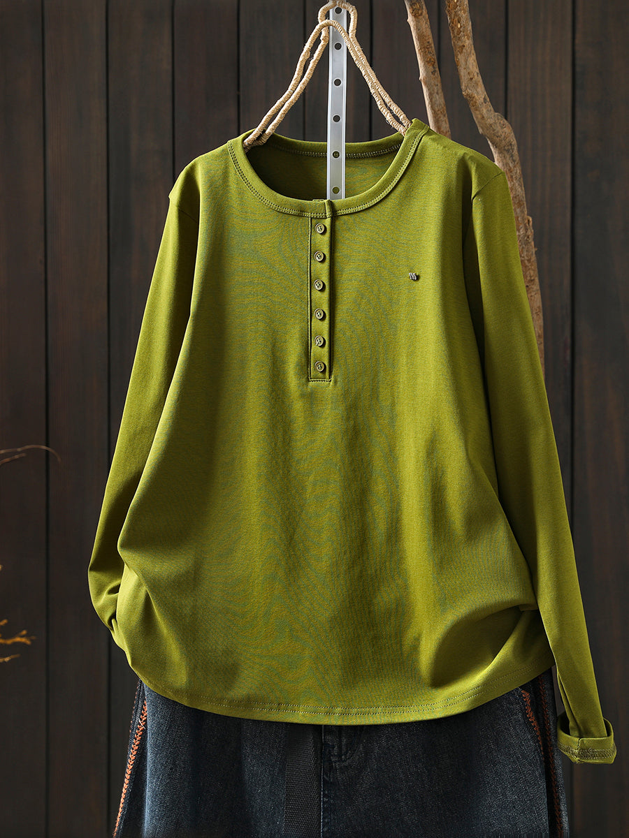 Women Winter Artsy Pure Color O-Neck Cotton Blouse