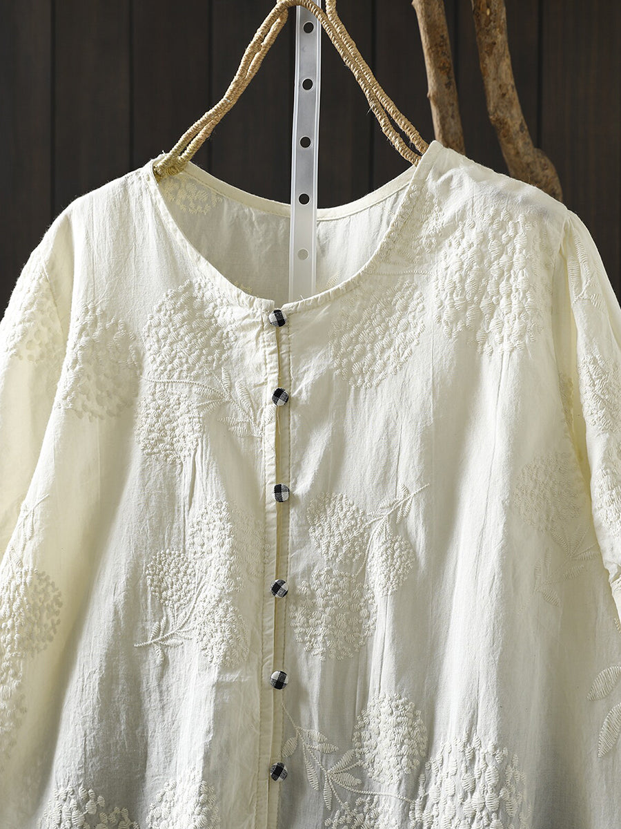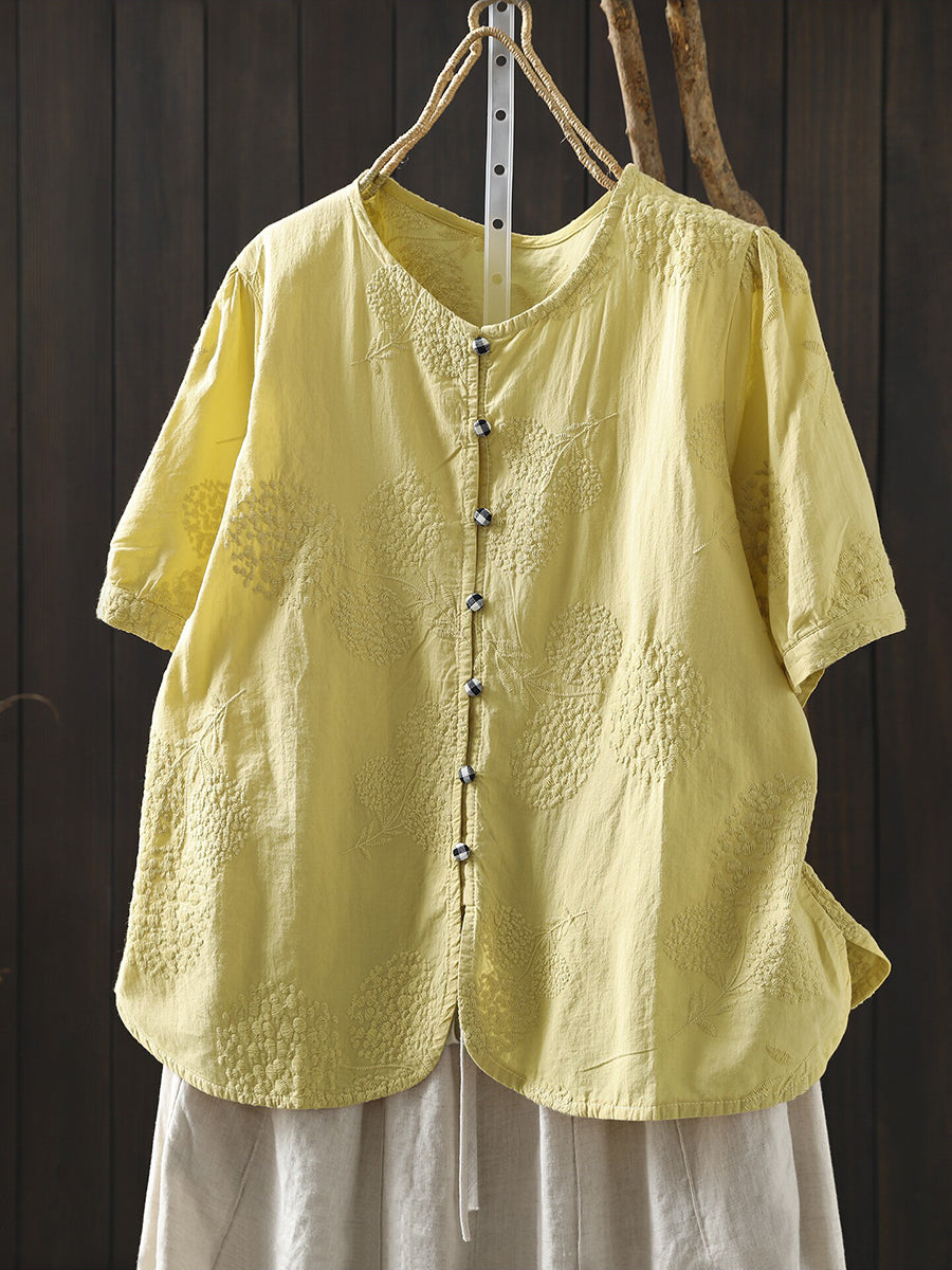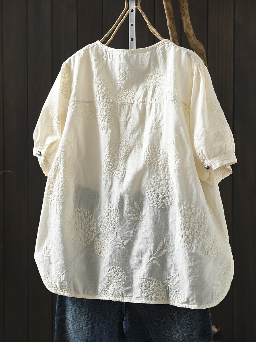 Women Summer Artsy Embroidery O-Neck 100%Cotton Blouse