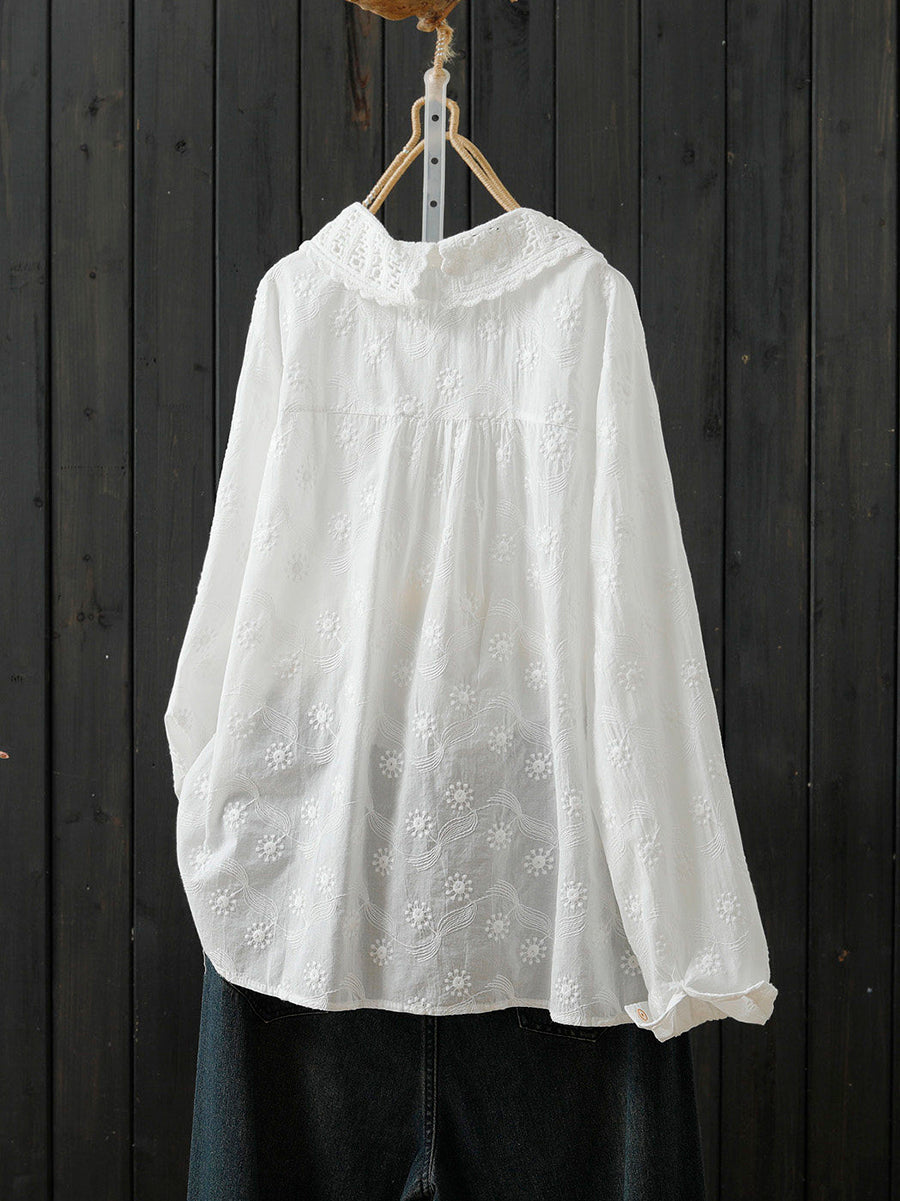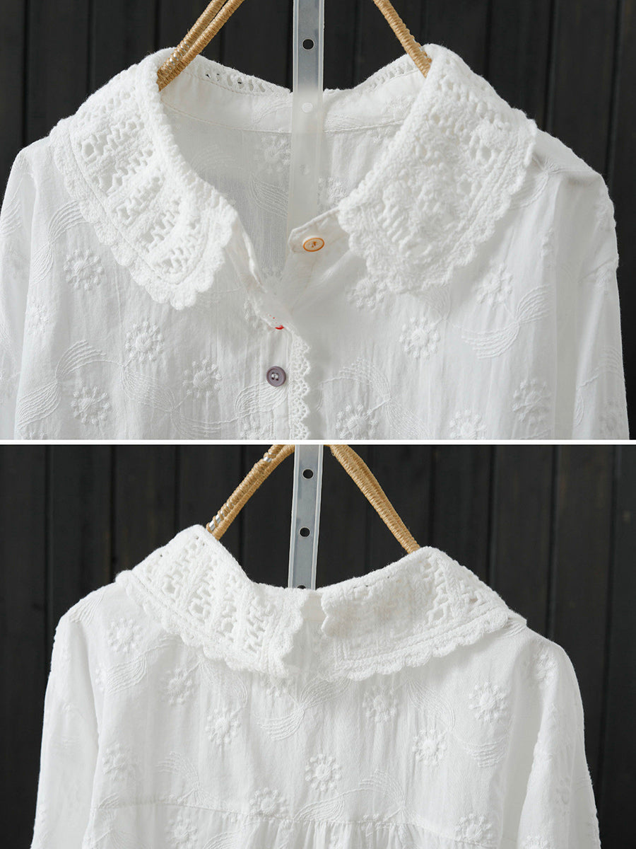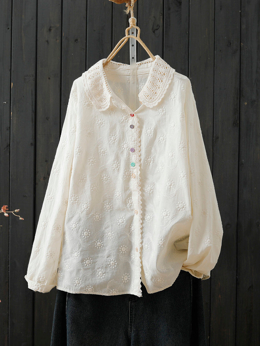 Women Spring Artsy Embroidery 100%Cotton Shirt