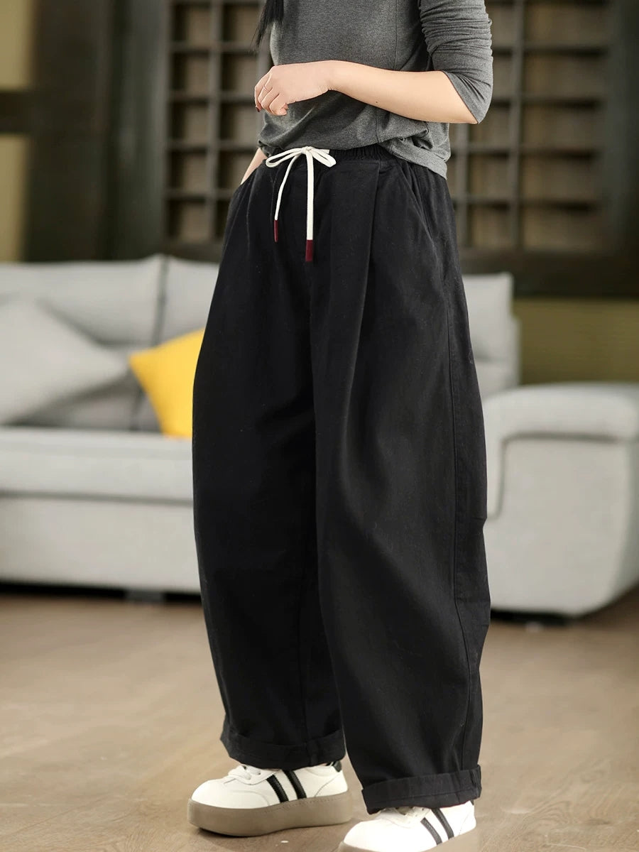 Women Spring Casual Pure Color 100%Cotton Harem Pants