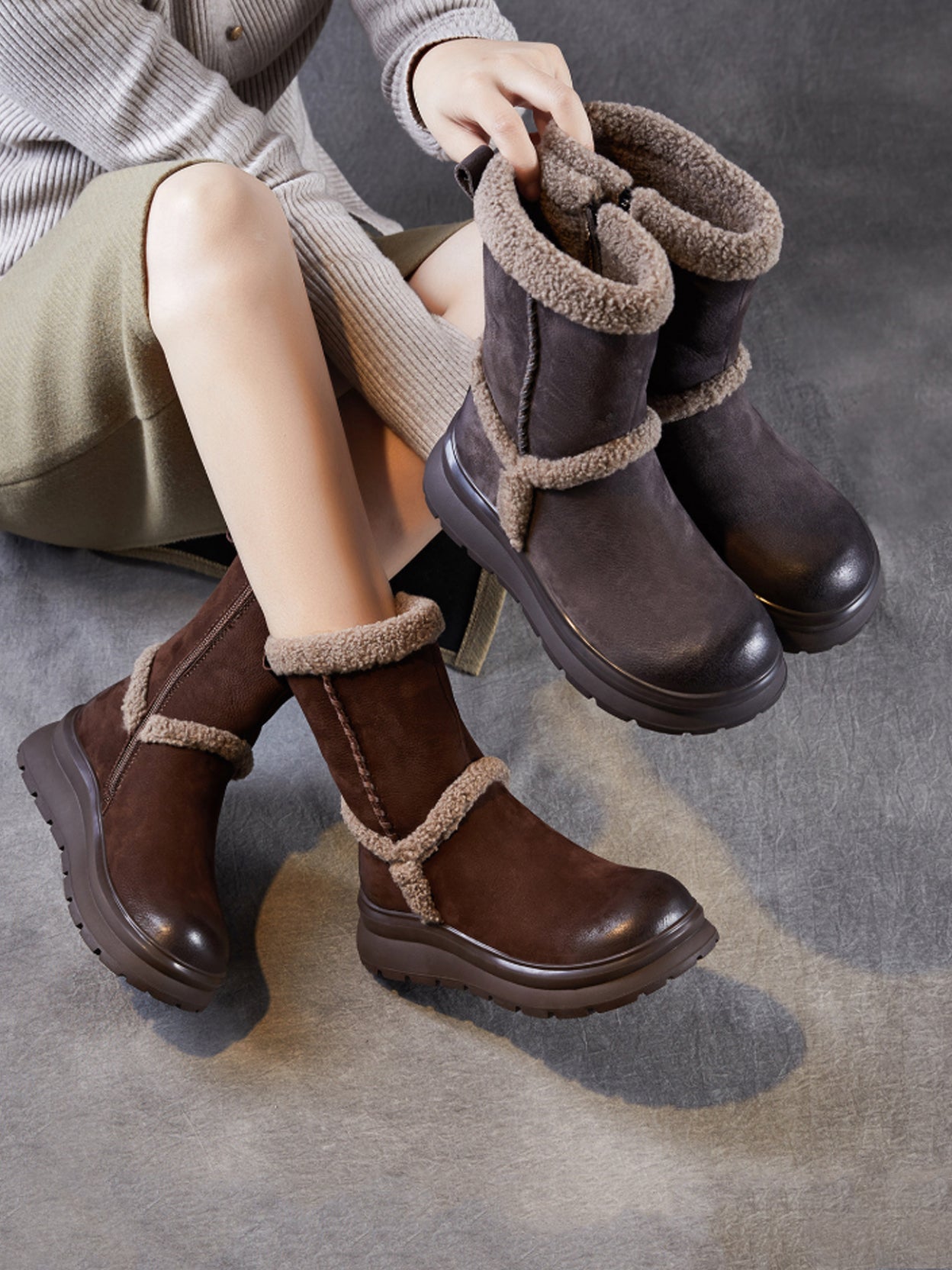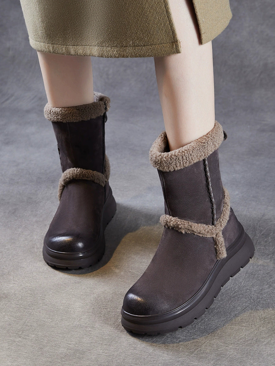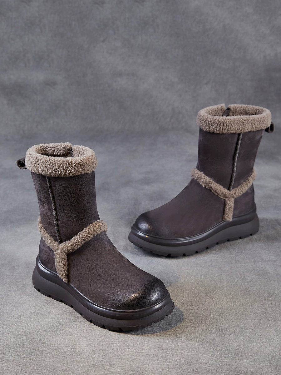 Women Winter Genuine Leather Spliced Fleece-lined Boots