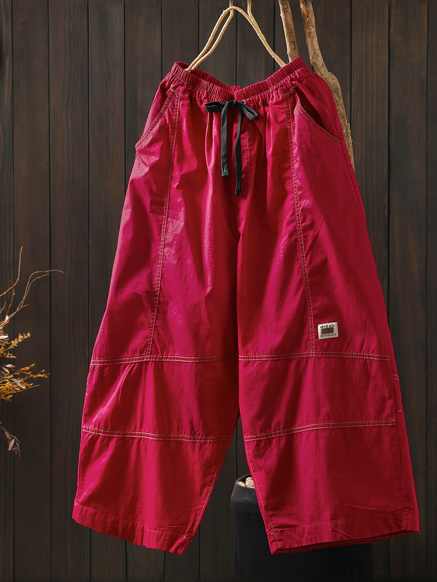 Women Summer Casual Pure Color Wide-leg Pants