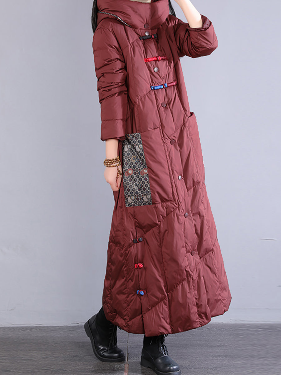 Women Winter Retro Emrboidery Padded Long Coat
