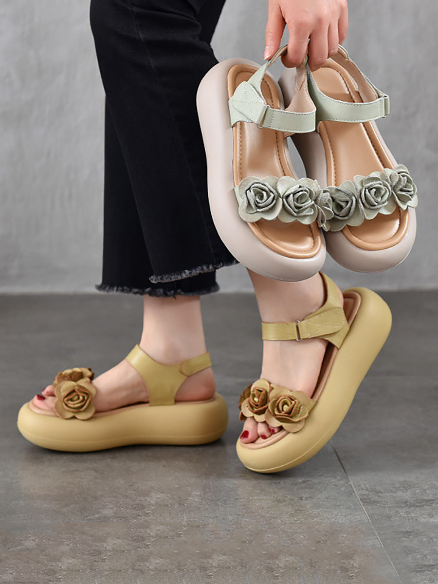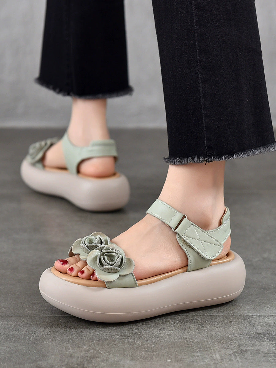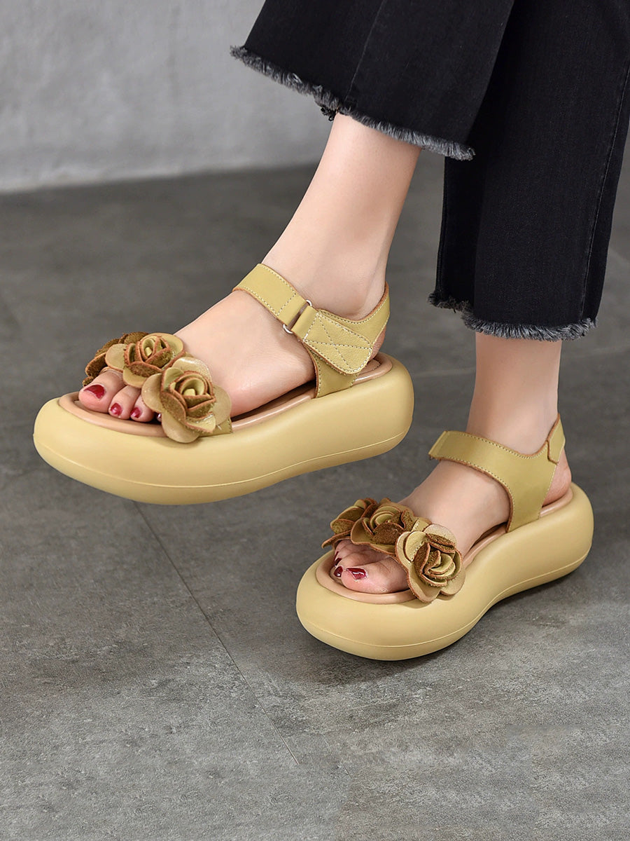 Women Summer Artsy Flower Leather Platform Sandals