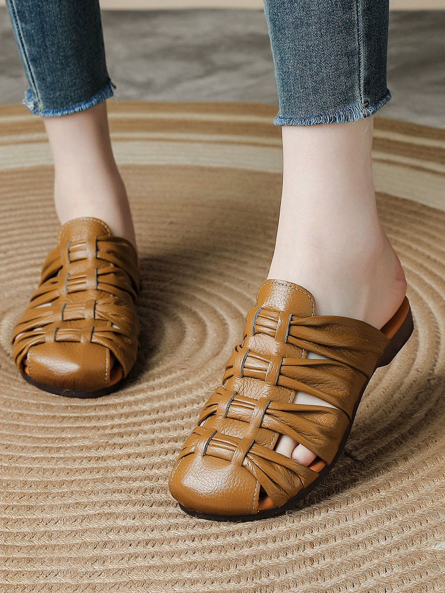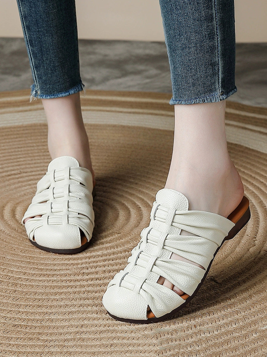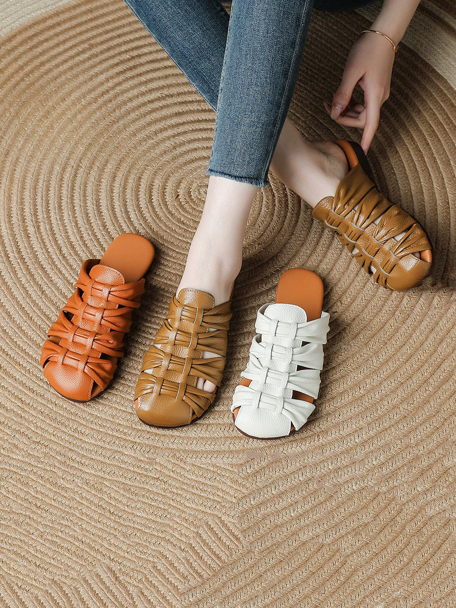 Women Summer Casual Genuine Leather Weave Slippers