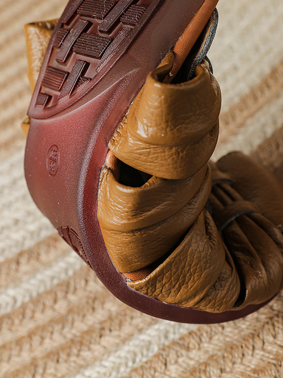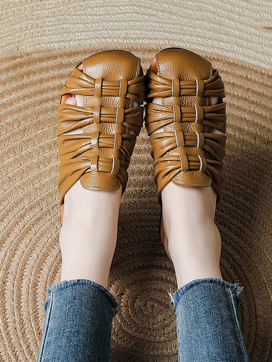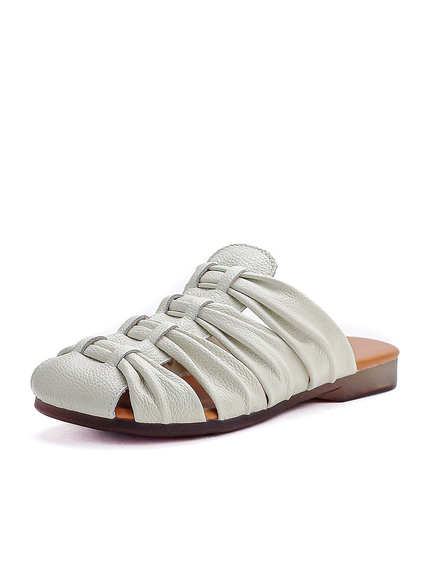 Women Summer Casual Genuine Leather Weave Slippers