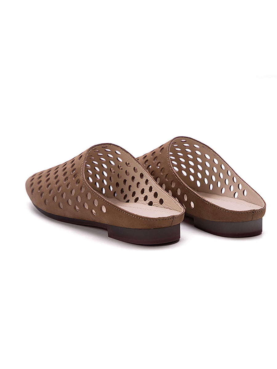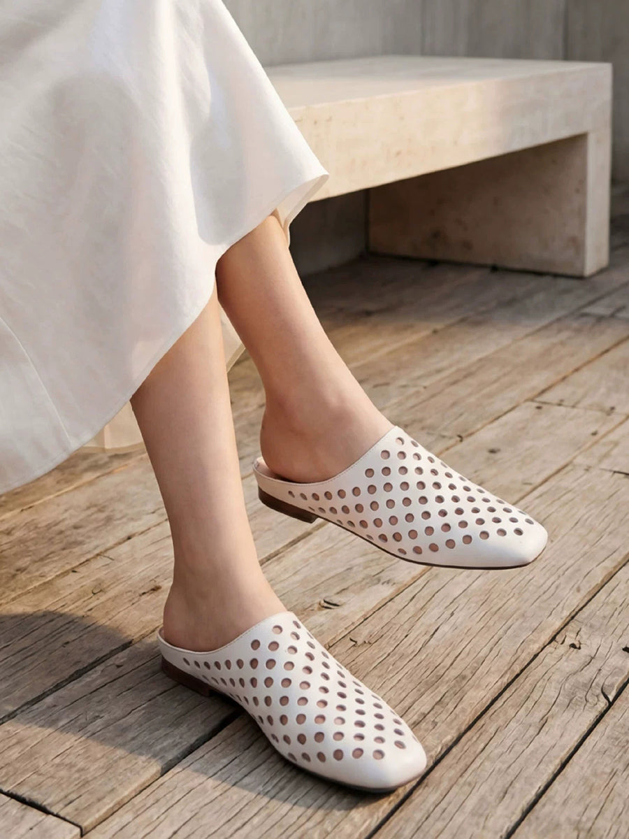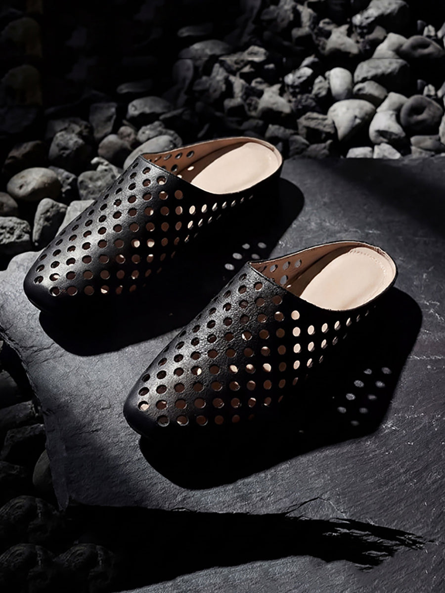 Women Summer Versatile Hole Genuine Leather Slippers