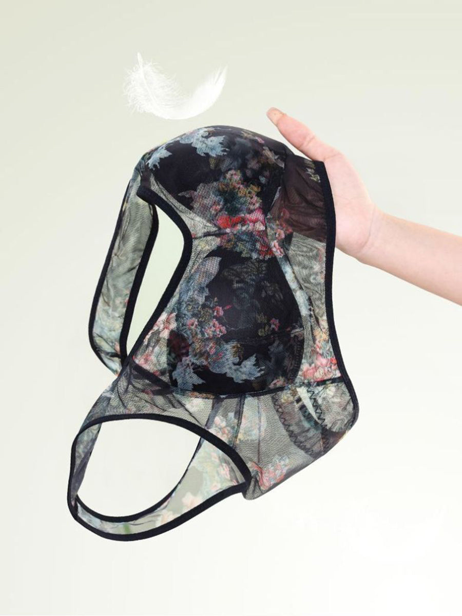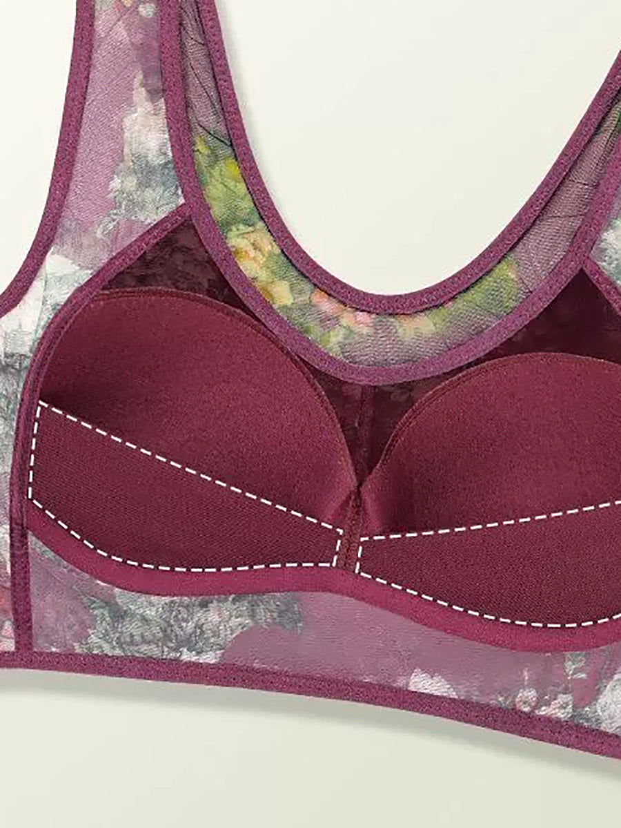 3 Pieces Women Artsy Flower One-piece Flower Bra