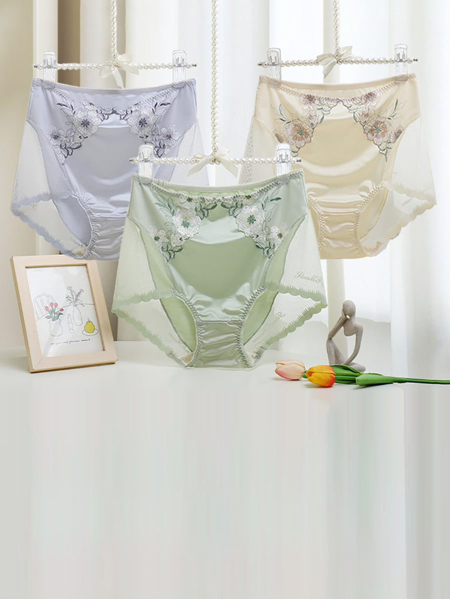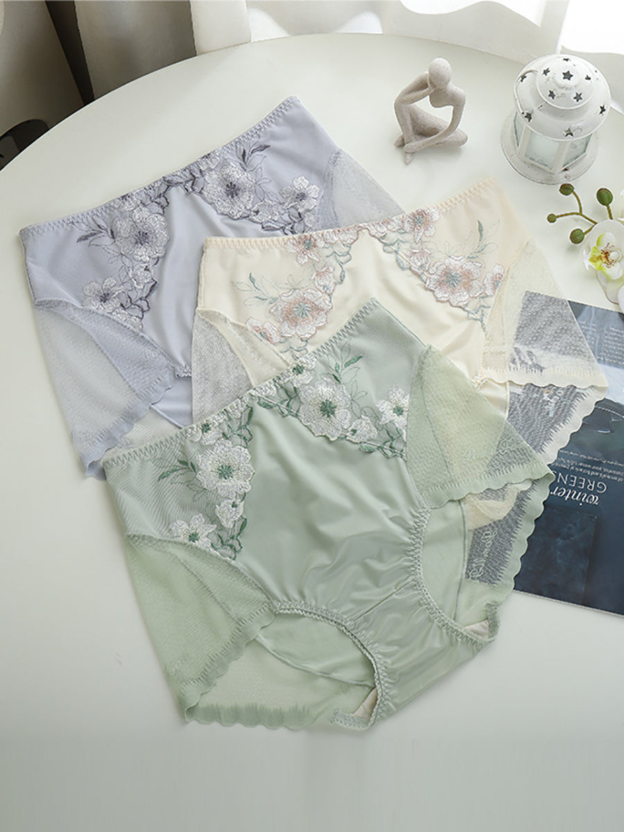 4 Pieces Women Artsy Flower Lace High Waist Underwear