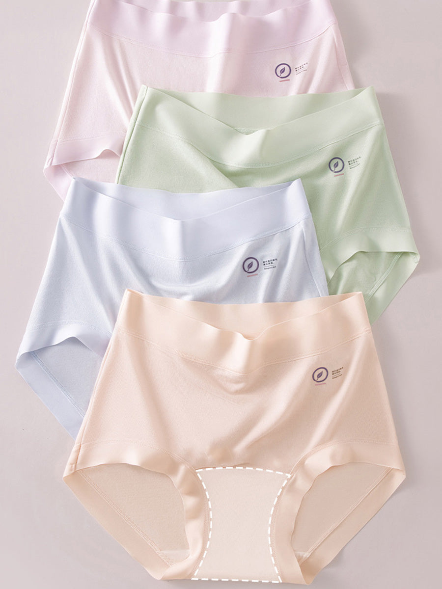 4 Pieces Women Casual Pure Color High Waist Underwear