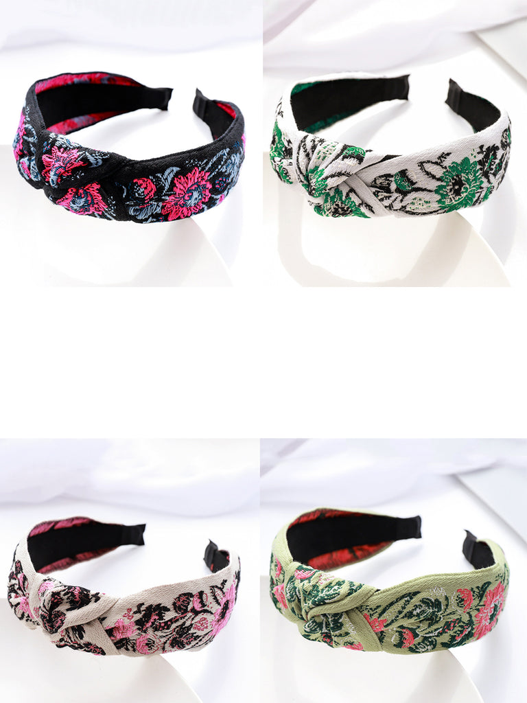 4 Pieces Women Ethnic Embroidery Knot Hair Brand